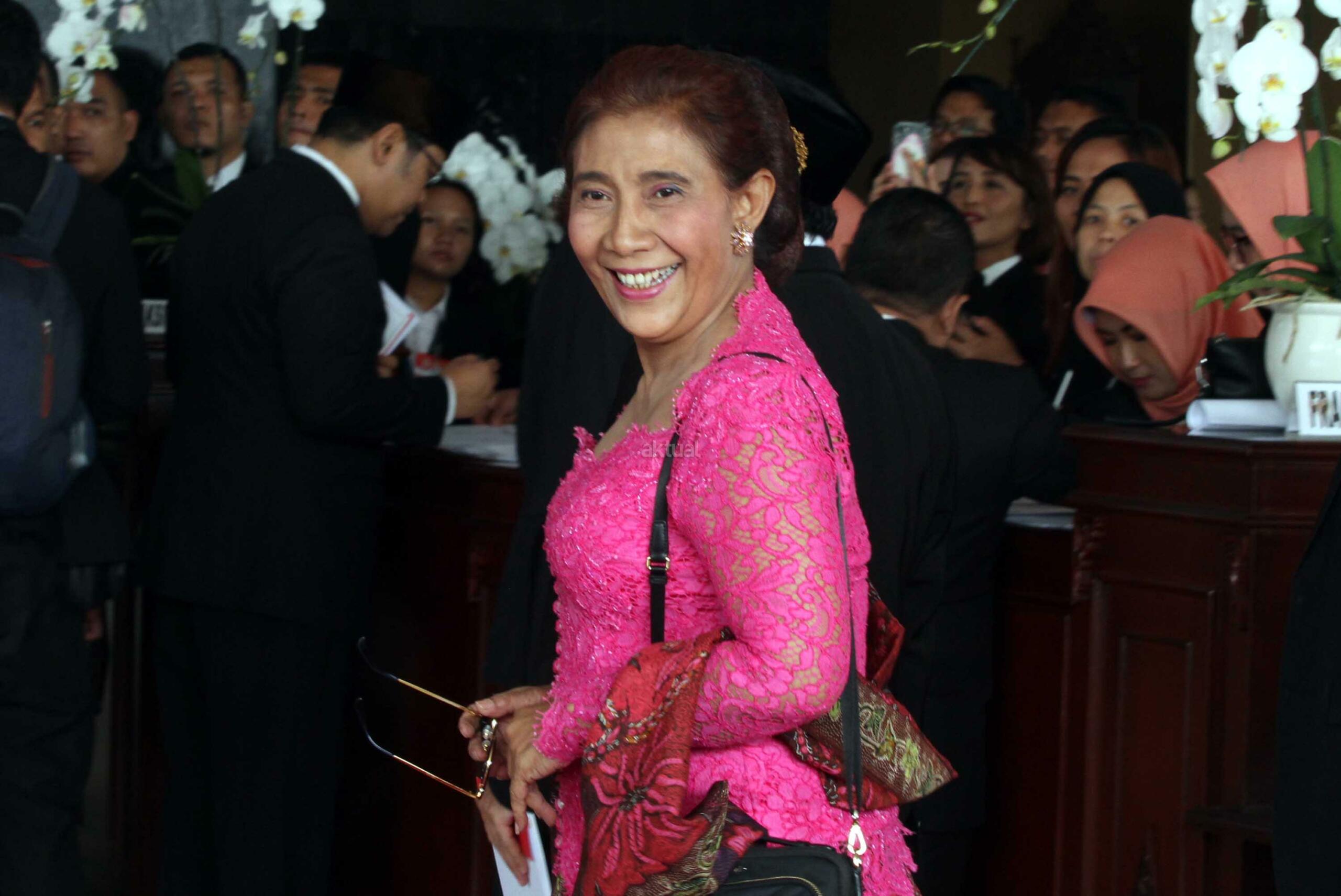 Menteri Keautan dan Perikanan Susi Pudjiastuti tiba di lokasi Sidang Tahunan MPR, Kompleks Parlemen, Senayan, Jakarta, Kamis (16/8). Sidang Tahunan MPR masih dalam satu rangkaian sidang bersama DPR-DPD, dan sidang DPR penyampaian nota keuangan RAPBN 2019. Sidang Tahunan MPR dilaksanakan pagi hari dilanjutkan sidang bersama DPR-DPD, dan sidang penyampaian nota keuangan. AKTUAL/Tino Oktaviano