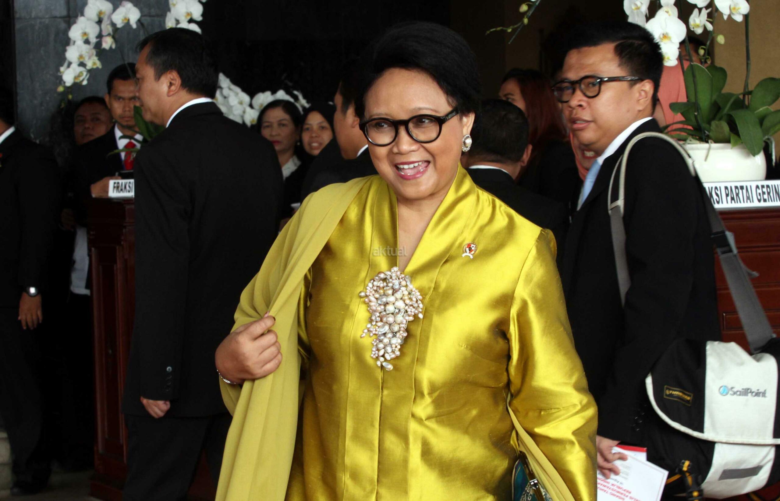 Menlu RI, Retno L.P Marsudi tiba di lokasi Sidang Tahunan MPR, Kompleks Parlemen, Senayan, Jakarta, Kamis (16/8). Sidang Tahunan MPR masih dalam satu rangkaian sidang bersama DPR-DPD, dan sidang DPR penyampaian nota keuangan RAPBN 2019. Sidang Tahunan MPR dilaksanakan pagi hari dilanjutkan sidang bersama DPR-DPD, dan sidang penyampaian nota keuangan. AKTUAL/Tino Oktaviano