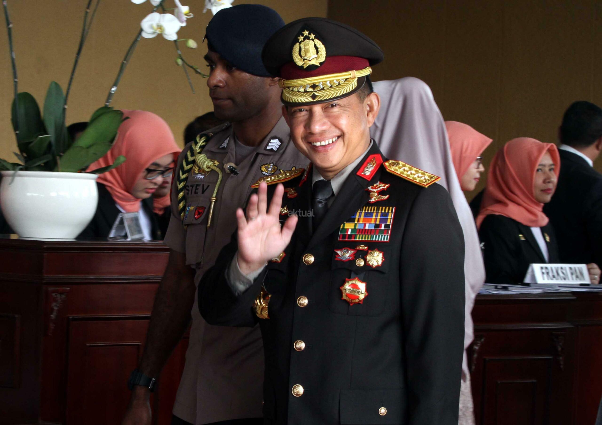Kapolri Jenderal Pol Tito Karnavian tiba di lokasi Sidang Tahunan MPR, Kompleks Parlemen, Senayan, Jakarta, Kamis (16/8). Sidang Tahunan MPR masih dalam satu rangkaian sidang bersama DPR-DPD, dan sidang DPR penyampaian nota keuangan RAPBN 2019. Sidang Tahunan MPR dilaksanakan pagi hari dilanjutkan sidang bersama DPR-DPD, dan sidang penyampaian nota keuangan. AKTUAL/Tino Oktaviano