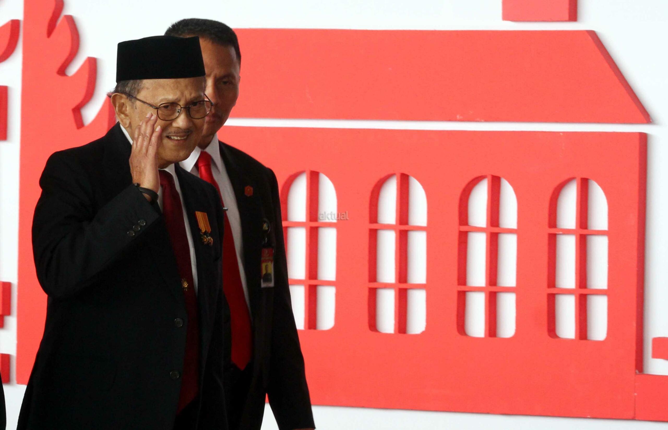 Presiden ketiga BJ Habibie saat tiba di lokasi Sidang Tahunan MPR, Kompleks Parlemen, Senayan, Jakarta, Kamis (16/8). Sidang Tahunan MPR masih dalam satu rangkaian sidang bersama DPR-DPD, dan sidang DPR penyampaian nota keuangan RAPBN 2019. Sidang Tahunan MPR dilaksanakan pagi hari dilanjutkan sidang bersama DPR-DPD, dan sidang penyampaian nota keuangan. AKTUAL/Tino Oktaviano