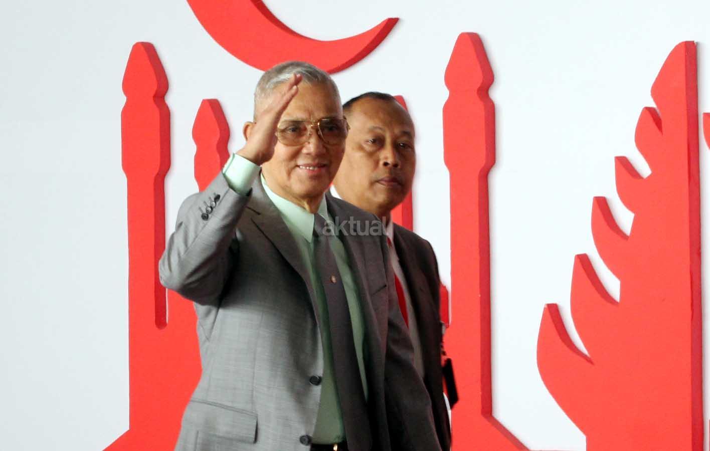 Wakil Presiden Indonesia ke-6 Try Sutrisno tiba di lokasi Sidang Tahunan MPR, Kompleks Parlemen, Senayan, Jakarta, Kamis (16/8). Sidang Tahunan MPR masih dalam satu rangkaian sidang bersama DPR-DPD, dan sidang DPR penyampaian nota keuangan RAPBN 2019. Sidang Tahunan MPR dilaksanakan pagi hari dilanjutkan sidang bersama DPR-DPD, dan sidang penyampaian nota keuangan. AKTUAL/Tino Oktaviano