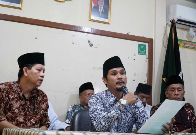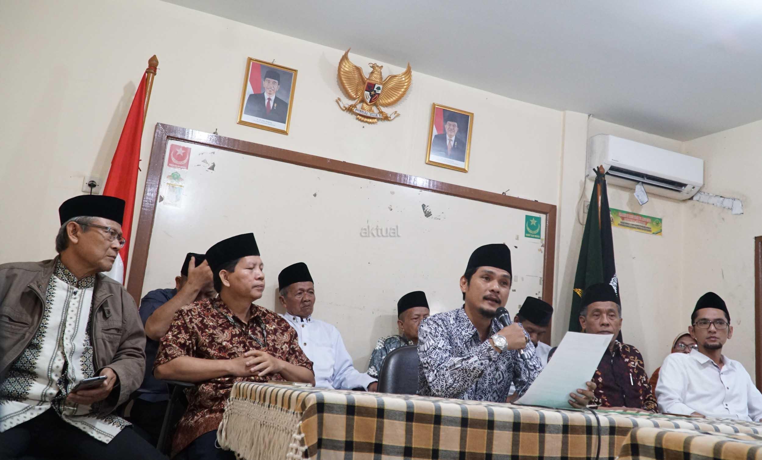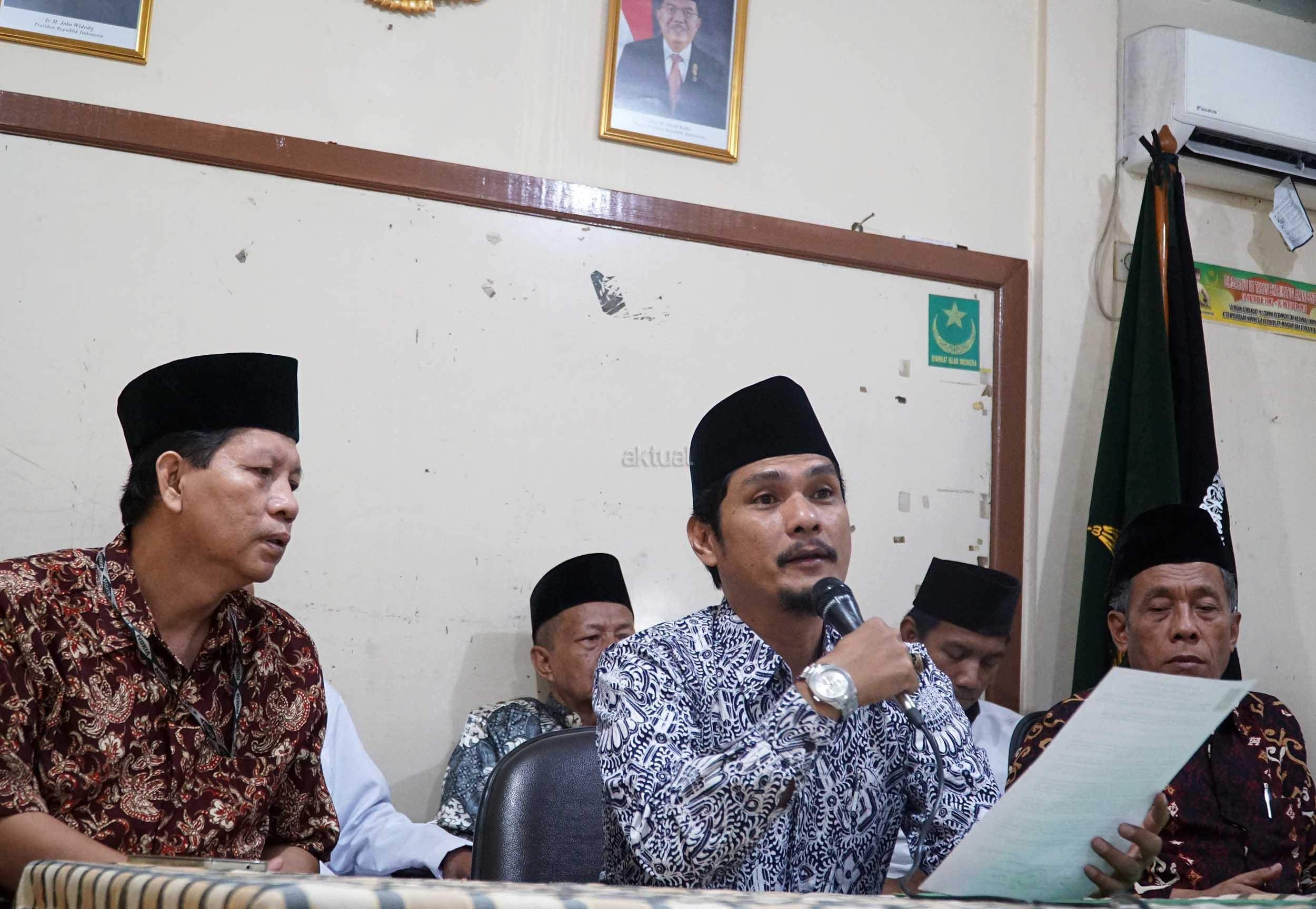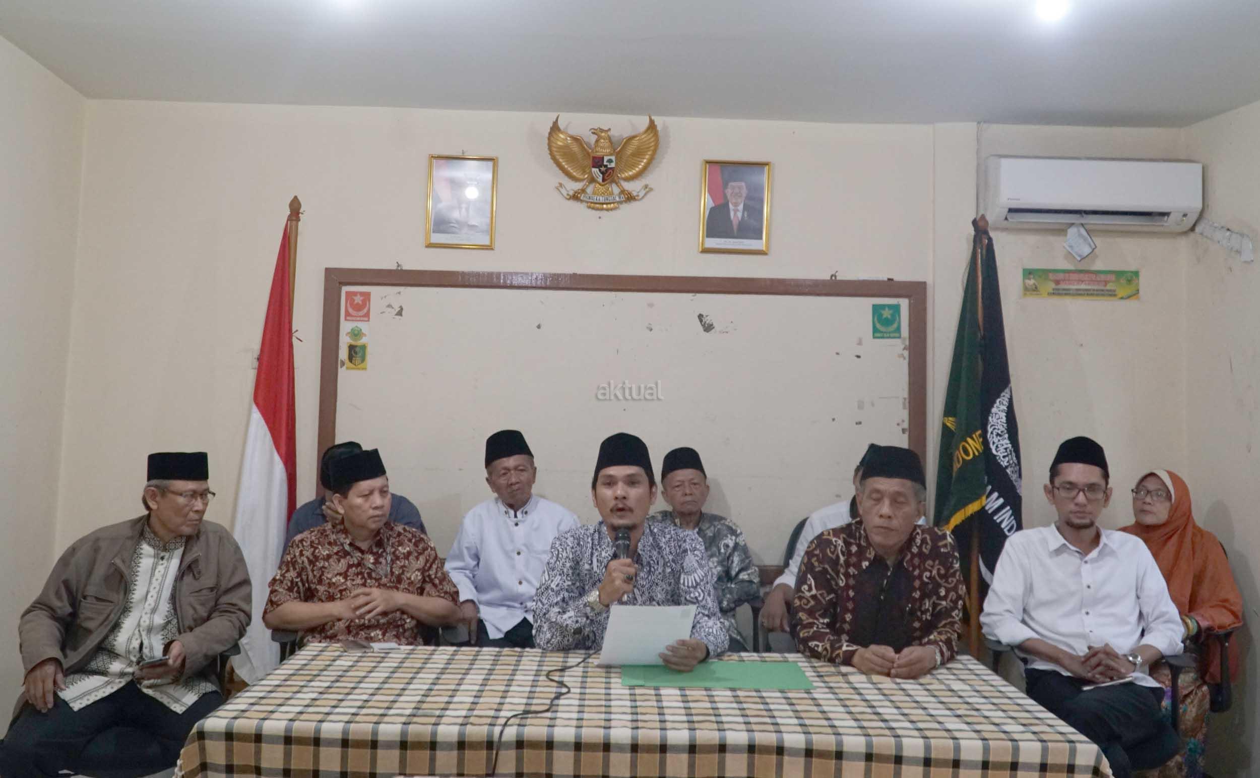 Presiden Lajnah Tanfidziah Syarikat Islam Indonesia H. Muflich Chalif Ibrahim (tengah) didampingi jajaran pengurus DPP lainnya saat membacakan dan manyampaikan pernyataan sikap dan keprihatinan atas serangkaian aksi penyerangan di Mako Brimob, Pengeboman Gereja-Gereja, Rusunawa Sidoarjo dan Polrestabes Surabaya saat jumpa pers di Kantor DPP Syarikat Islam Indonesia, Latumenten, Jakarta, Selasa (15/5). Rangkaian aksi teror dan serangan bom adalah merupakan tindakan terkutuk, biadab dan keji yang bertentangan dengan ajaran Islam juga yang sangat menjunjung tinggi nilai nilai kemanusiaan, melawan asas hukum ideologi negara dan budaya luhur bangsa Indonesia. AKTUAL/Eko S Hilman