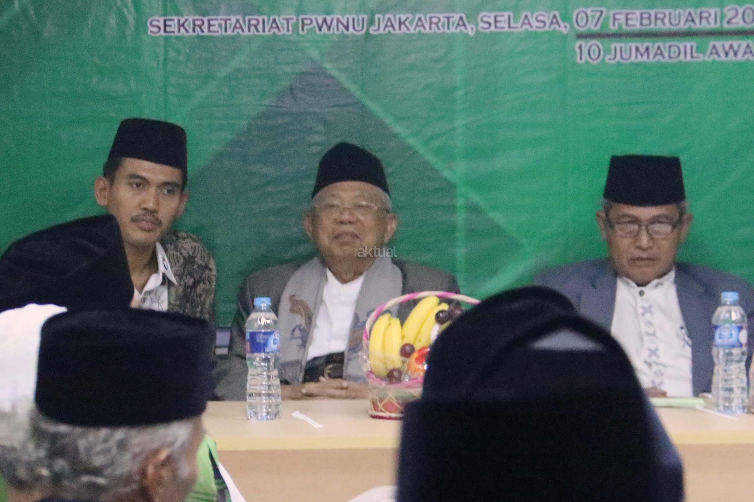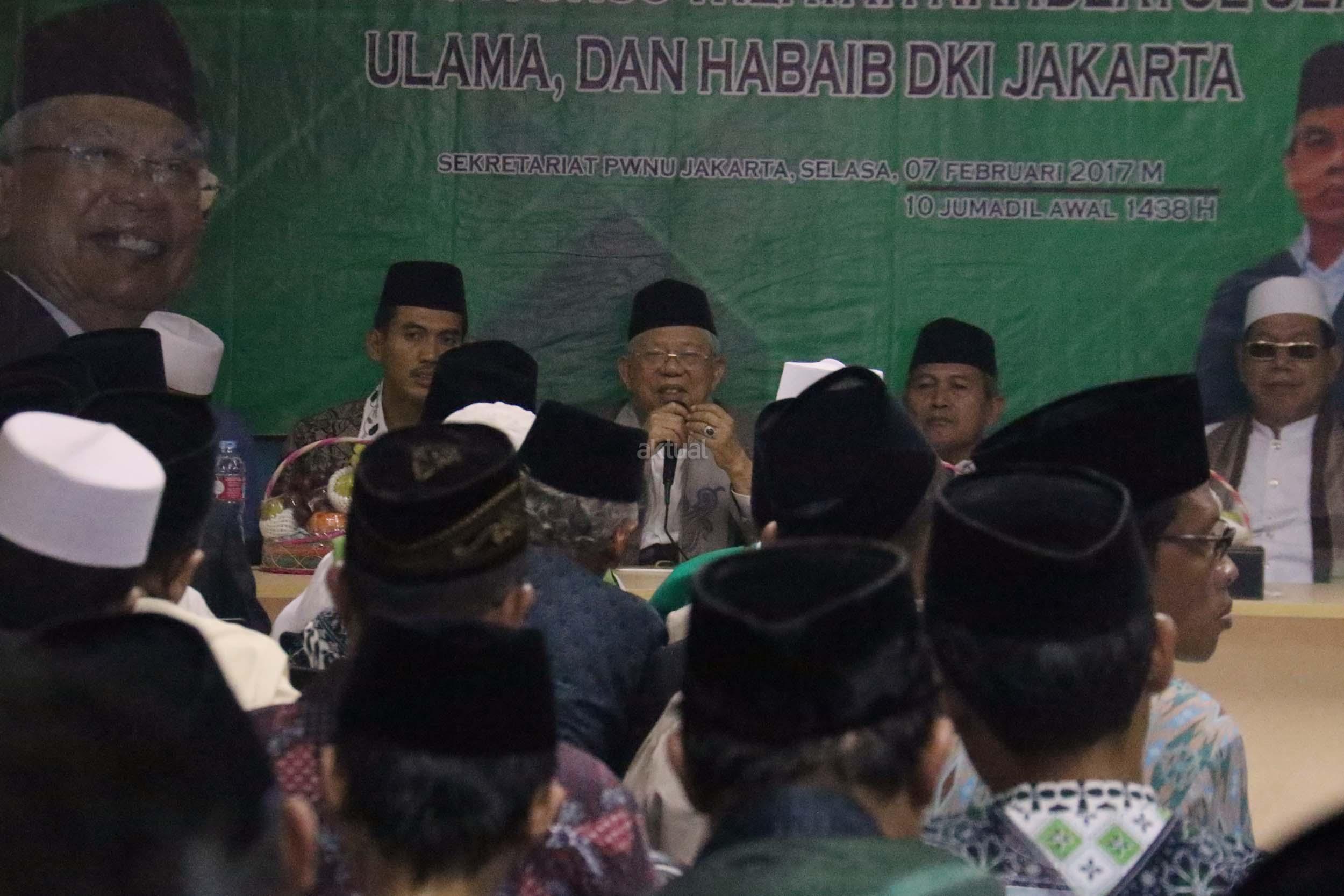 Rais Aam Pengurus Besar Nahdlatul Ulama (PBNU) Ma’ruf Amin menghadiri acara silaturahmi bersama Pengurus Wilayah Nahdlatul Ulama (PWNU) DKI Jakarta, Selasa (7/2/2017). Rois Syuriah Pengurus Wilayah Nahdlatul Ulama (PWNU) DKI Jakarta, Mahfudz Asirun, mengatakan silaturahmi dengan KH Ma’ruf Amin tidak ada kaitannya dengan tindakan pelecehan Basuki Tjahaja Purnama terhadap Ketua Umum MUI yang juga menjalankan amanah sebagai Rois Am PBNU itu. AKTUAL/Munzir