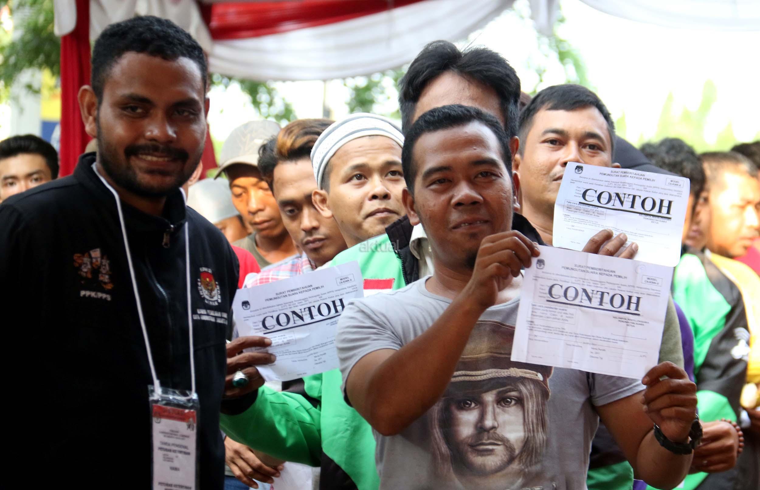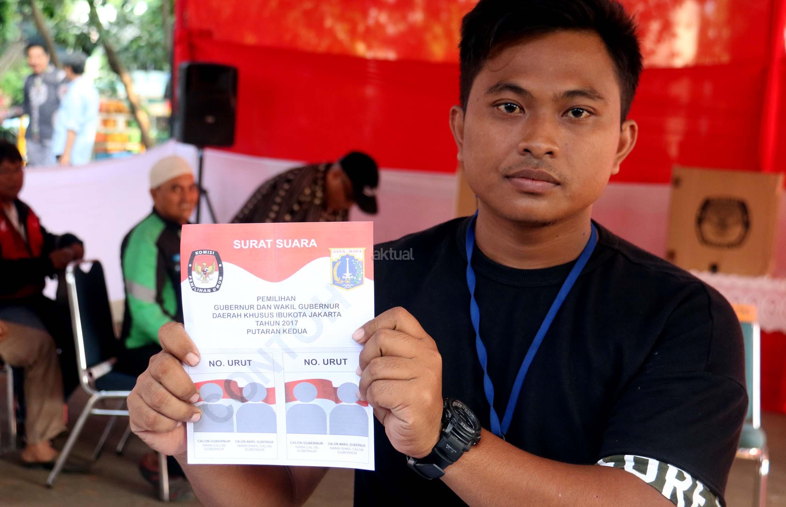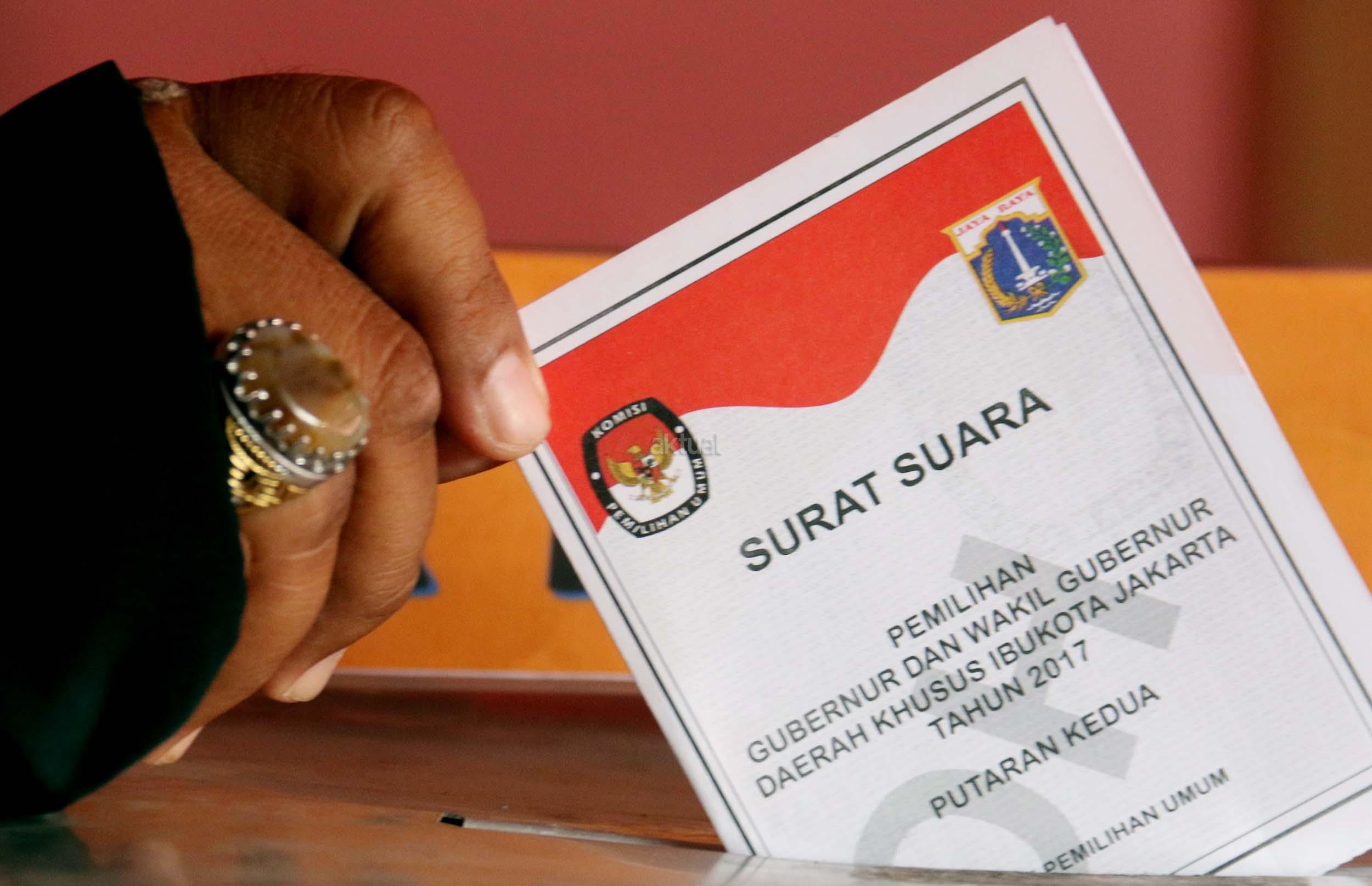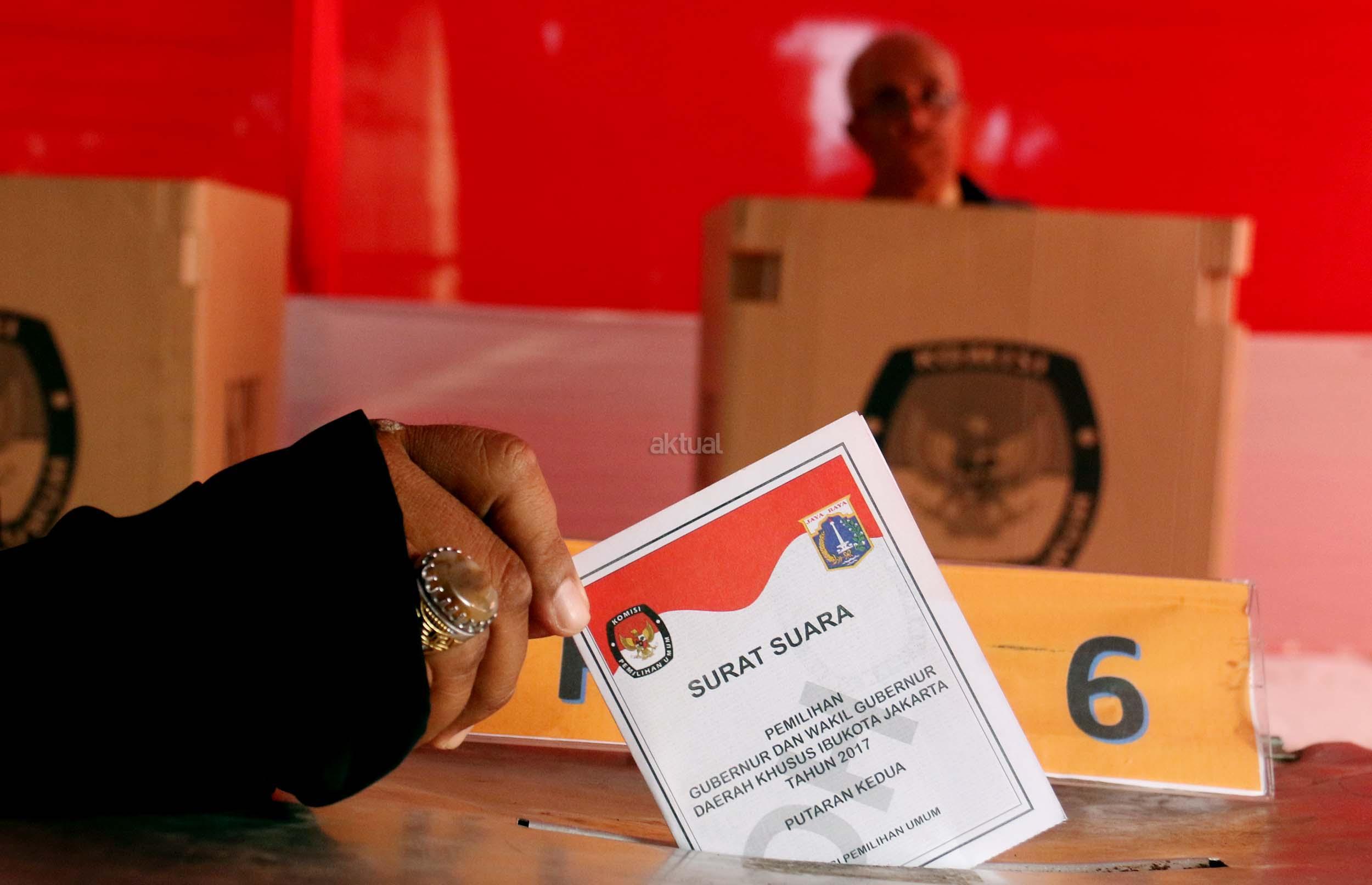 Sejumlah warga mengikuti simulasi Pilkada DKI Jakarta putaran kedua di Kelurahan Bukit Duri, Jakarta, Jumat (14/4/2017). Simulasi yang dilakukan KPU Kota Administrasi Jakarta Selatan tersebut bertujuan untuk memberikan informasi proses Pilkada putaran kedua secara langsung, sehingga warga tidak lagi kesulitan saat Pilkada putaran kedua dilaksanakan pada Rabu (19/4). AKTUAL/Munzir