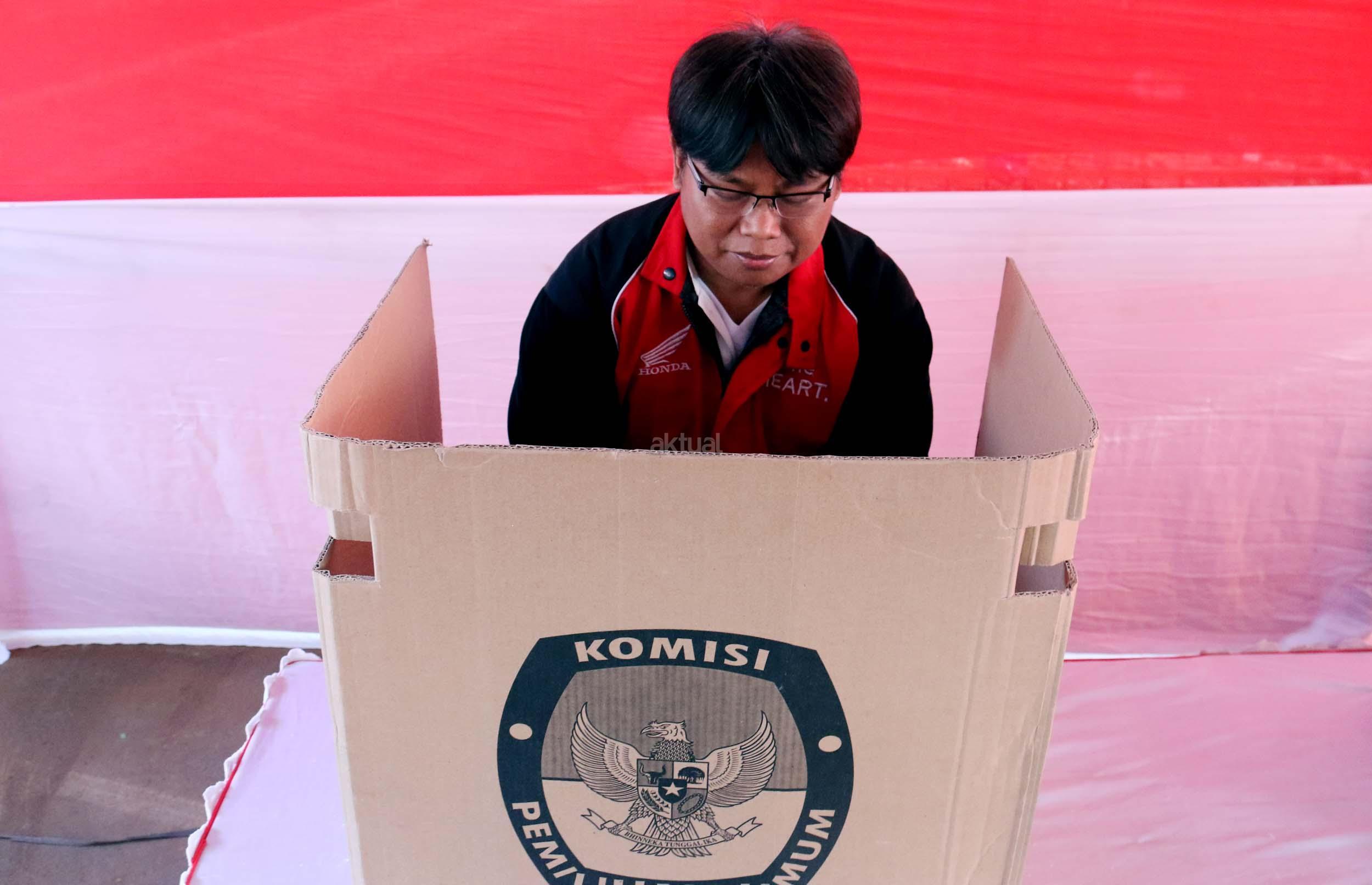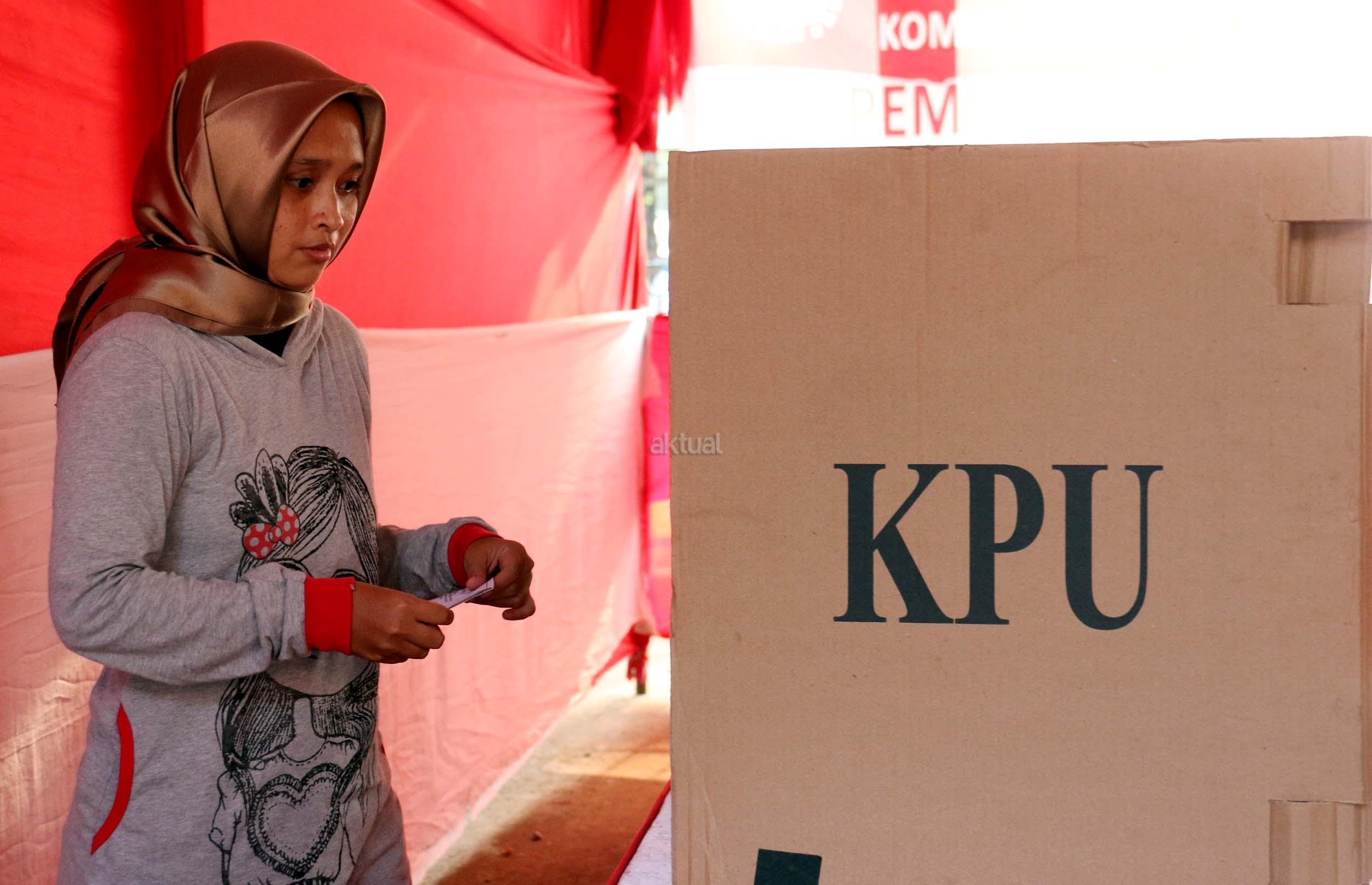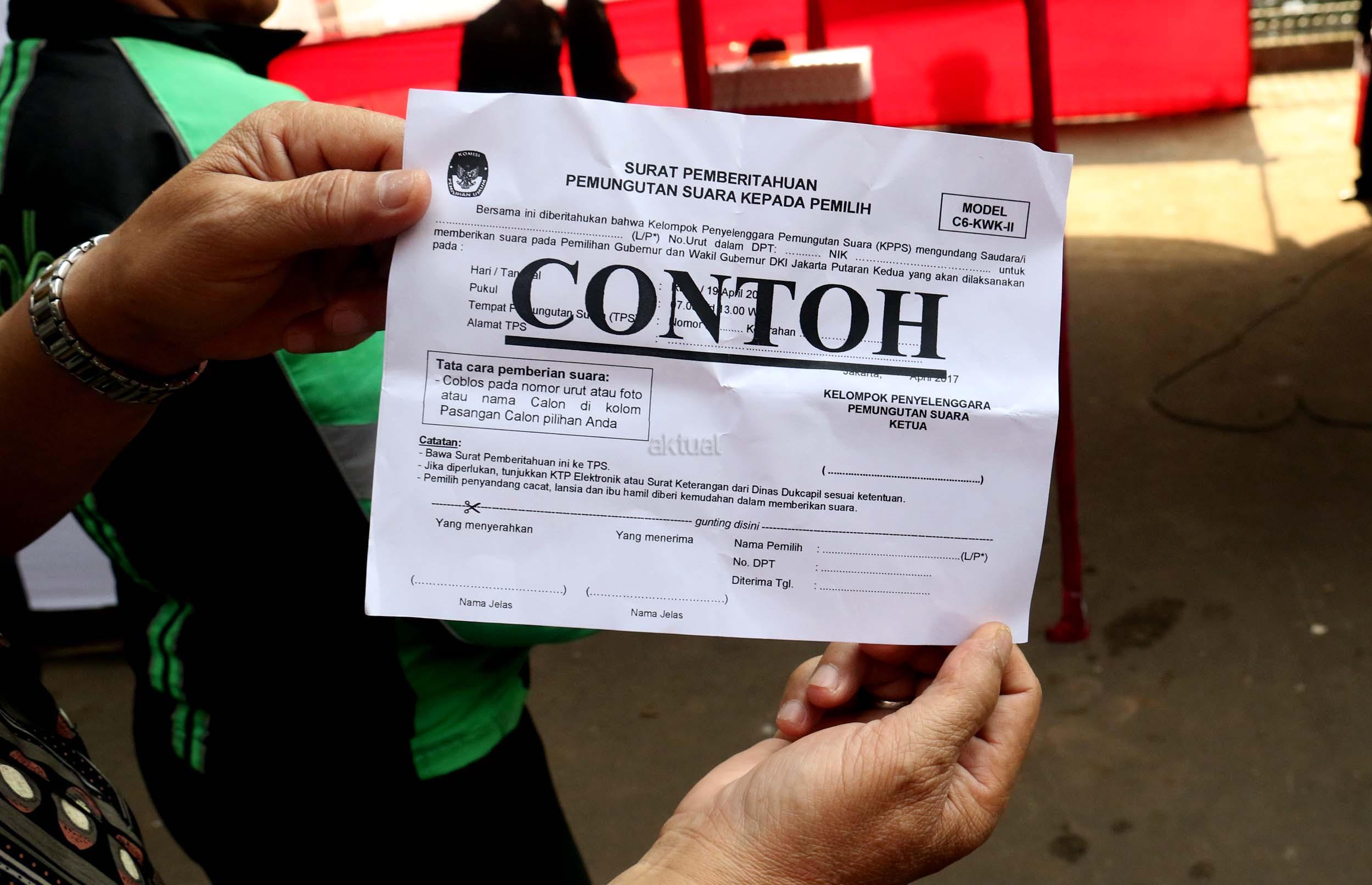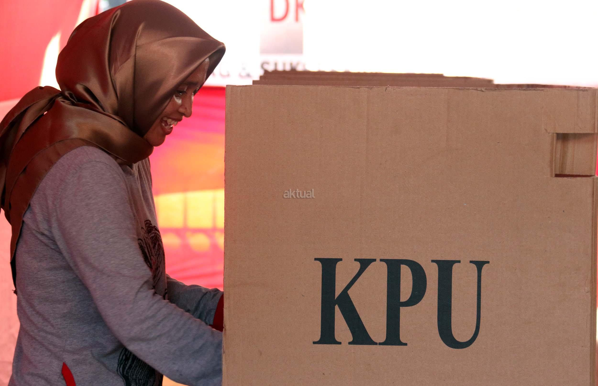 Sejumlah warga mengikuti simulasi Pilkada DKI Jakarta putaran kedua di Kelurahan Bukit Duri, Jakarta, Jumat (14/4/2017). Simulasi yang dilakukan KPU Kota Administrasi Jakarta Selatan tersebut bertujuan untuk memberikan informasi proses Pilkada putaran kedua secara langsung, sehingga warga tidak lagi kesulitan saat Pilkada putaran kedua dilaksanakan pada Rabu (19/4). AKTUAL/Munzir