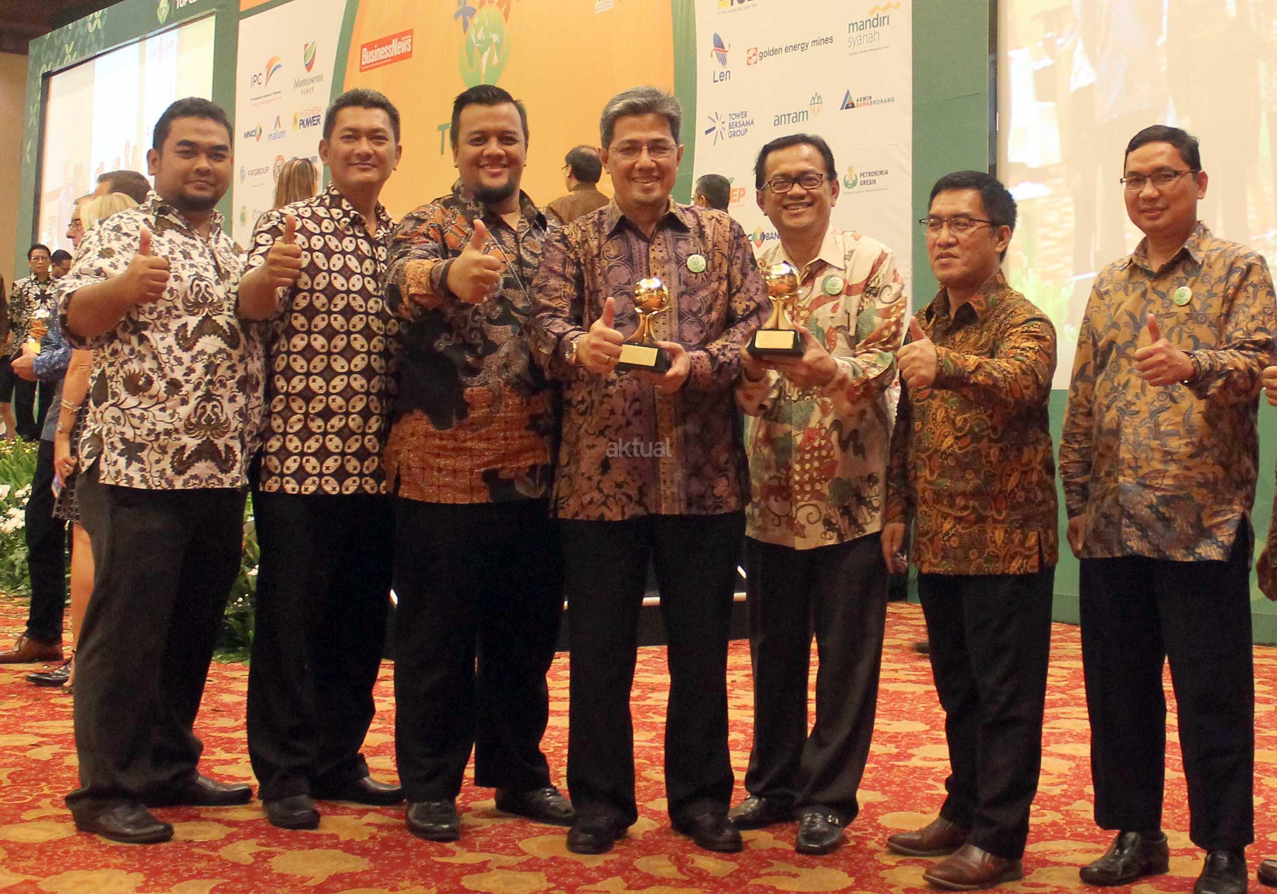Dhony Rahajoe, Managing Director President Office Sinar Mas Land (kiri) saat menerima penghargaan kategori “Top Leader on CSR Commitment” di Jakarta, Rabu (5/4). Sinar Mas Land berhasil meraih dua penghargaan bergengsi dalam ajang TOP CSR Award 2017, penghargaan pertama diberikan kepada Sinar Mas Land dalam kategori “TOP CSR on Property & Real Estate Sector” dan penghargaan kedua diberikan kepada Dhony Rahajoe sebagai Managing Director President Office Sinar Mas Land dalam kategori “Top Leader on CSR Commitment”. Pengakuan resmi ini dihasilkan lewat persidangan ketat yang melibatkan konsultan serta pakar CSR sebagai dewan juri TOP CSR 2017 pada tanggal 13 Januari 2017. AKTUAL/Eko S Hilman