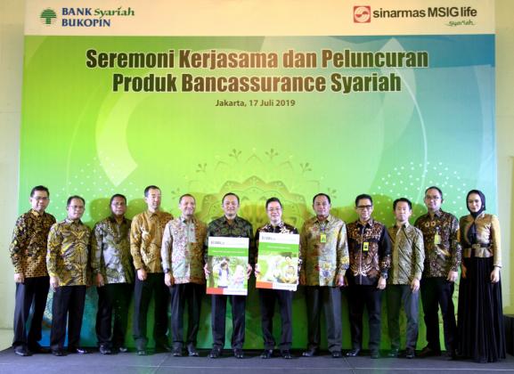 Jajaran Direksi Sinarmas MSIG Life dan Bank Syariah Bukopin meluncurkan produk bancassurance syariah di Jakarta, (17/7). Kerja sama strategis yang terjalin dengan Bank Syariah Bukopin ini semakin meningkatkan jangkauan layanan produk-produk perlindungan dan investasi unggulan Sinarmas MSIG Life melalui jaringan Bank Syariah Bukopin. AKTUAL/Dok Sinarmas MSIG Life