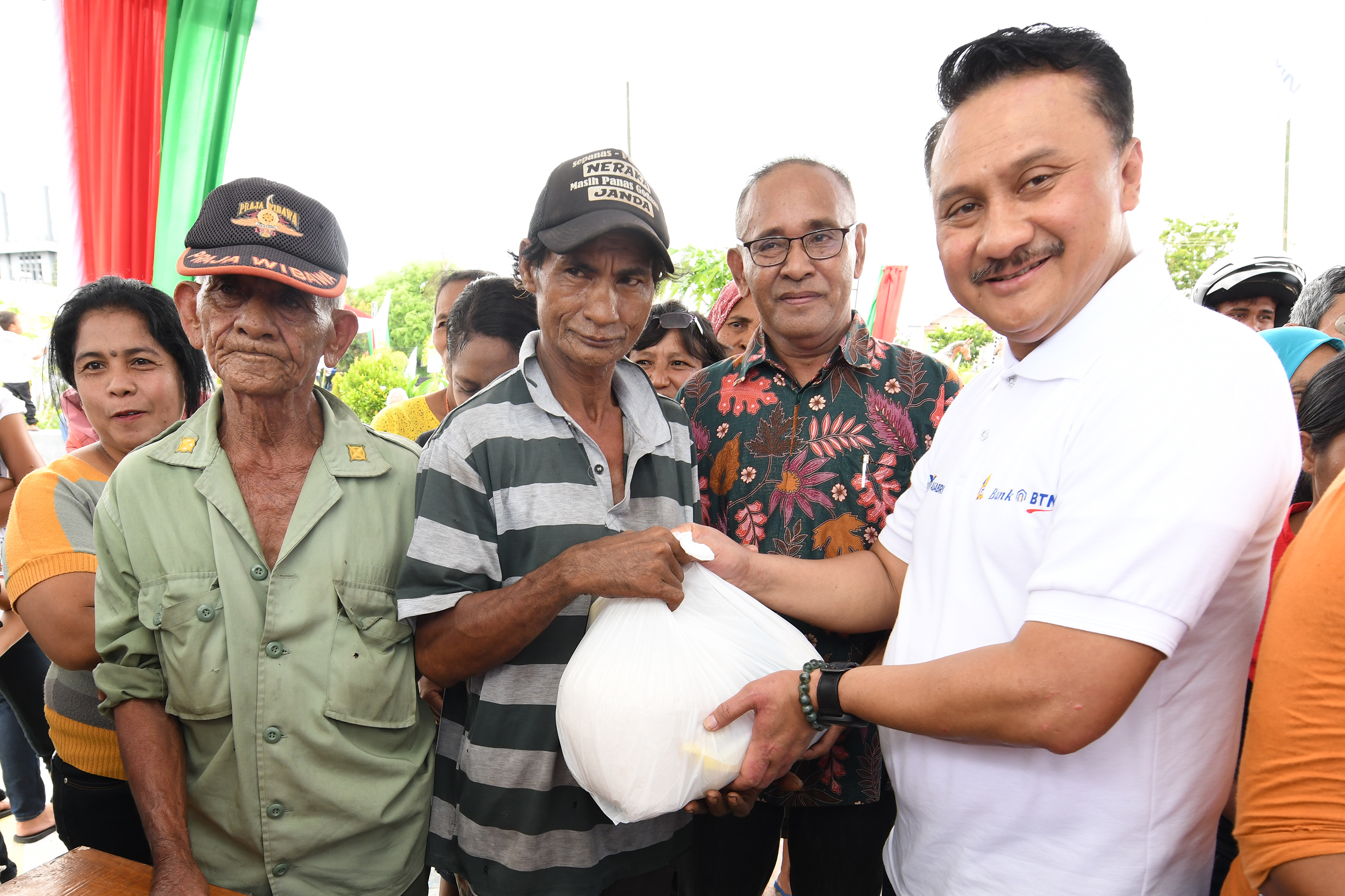 Kepala Kanwil III Bank BTN Frisaba Henky menyerahkan secara simbolis santunan kepada anak-anak panti asuhan dan bantuan rehabilitasi sarana ibadah yang tersebar di 3 (tiga) Kota di Kabupaten Sumba Timur dan Sumba Barat, yaitu Kota Waingapu, Kota Waitabulla dan Kota Waikabubak saat acara BUMN Hadir Untuk Negeri di Kota Waingapu, Kabupaten Sumba Timur, Provinsi Nusa Tenggara Timur, Sabtu (15/12). Menyambut Natal dan Tahun 2019 BUMN Berbagi memberikan santunan kepada Anak Panti Asuhan serentak di 15 ibukota propinsi yang memiliki mayoritas penduduk nasrani (kristen dan katholik). Bank BTN bersama dengan Pegadaian, Asabri dan PT. Garam ikut ambil bagian dalam kegiatan sosial tersebut yang termasuk bagian dari kegiatan. Adapun total bantuan yang diserahkan untuk Provinsi Nusa Tenggara Timur adalah sebesar Rp 1.155.000.000,- dengan peruntukan untuk 6 rumah ibadah (gereja), santunan bagi 500 orang anak, perbaikan sarana dan prasarana sekolah, taman bacaan sekolah, beasiswa bagi 15 orang siswa, 250 paket sembako untuk pasar murah dimana hasil penjualan akan kembali kepada masyarakat untuk membantu renovasi rumah ibadah dan bantuan untuk sarana prasarana umum. AKTUAL/Istimewa