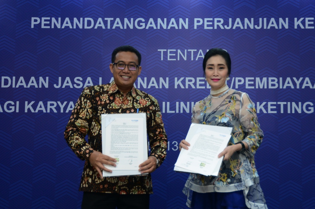 Managing Director PT Bank Tabungan Negara (Persero) Tbk Handayani (kanan) bersama Direktur Utama PT Railink Heru Kuswanto menandatangani Perjanjian Kerja Sama (PKS) di Menara BTN, Jakarta, Jumat (13/10). Melalui kemitraan ini, karyawan Railink dapat mengakses berbagai kemudahan dan fasilitas kredit konsumer dari Bank BTN dengan bunga serta promosi menarik. Nasabah perseroan pun dapat membeli tiket Kereta Api Bandara menggunakan kartu Bank BTN. Adapun, per Agustus 2017, BBTN telah menyalurkan kredit konsumer (anaudited) senilai Rp143,99 triliun atau naik 19% secara tahunan dari Rp121,05 triliun pada Agustus 2016. AKTUAL/Humas BTN