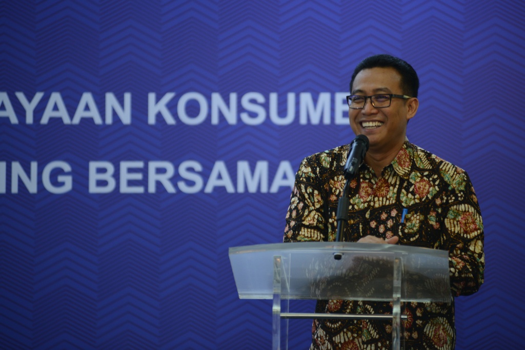 Direktur Utama PT Railink Heru Kuswanto memberikan sambutan saat acara penandatanganan Perjanjian Kerja Sama (PKS) di Menara BTN, Jakarta, Jumat (13/10). Melalui kemitraan ini, karyawan Railink dapat mengakses berbagai kemudahan dan fasilitas kredit konsumer dari Bank BTN dengan bunga serta promosi menarik. Nasabah perseroan pun dapat membeli tiket Kereta Api Bandara menggunakan kartu Bank BTN. Adapun, per Agustus 2017, BBTN telah menyalurkan kredit konsumer (anaudited) senilai Rp143,99 triliun atau naik 19% secara tahunan dari Rp121,05 triliun pada Agustus 2016. AKTUAL/Humas BTN