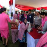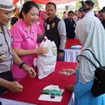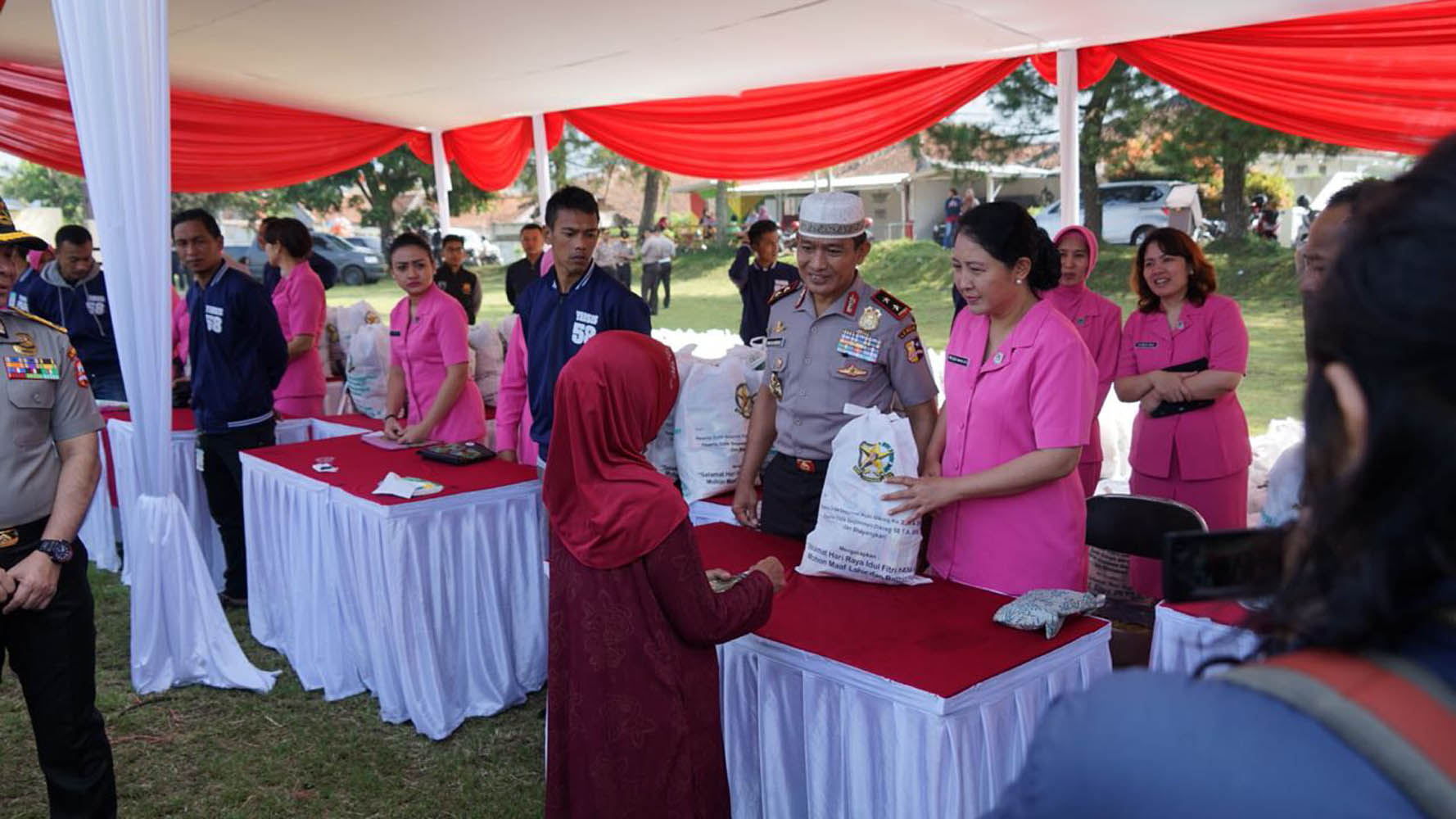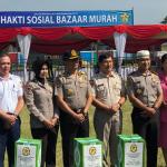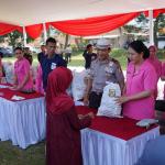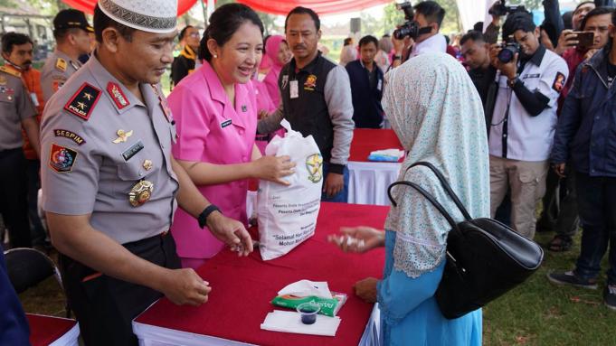 Kasespim Irjen Pol Wahyu Indra Pramugari didampingi Istri memberikan paket lebaran saat digelarnya bazar murah di Asrama Unit Barat, Jawa Barat, Senin (4/6/2018). Dalam mengisi bulan suci Ramadhan, Sekolah Staf dan Pemimpin Tinggi Polri (Sespimti) menggelar bakti sosial, bazar murah dan paket lebaran yang diharapkan dapat membantu masyarakat, dan kegiatan ini bertujuan melatih peserta Sespimti angkatan 27 dan Sespimmen angkatan 48 untuk membangkitkan rasa kepedulian kepada masyarakat sekitar. AKTUAL/Tino Oktaviano