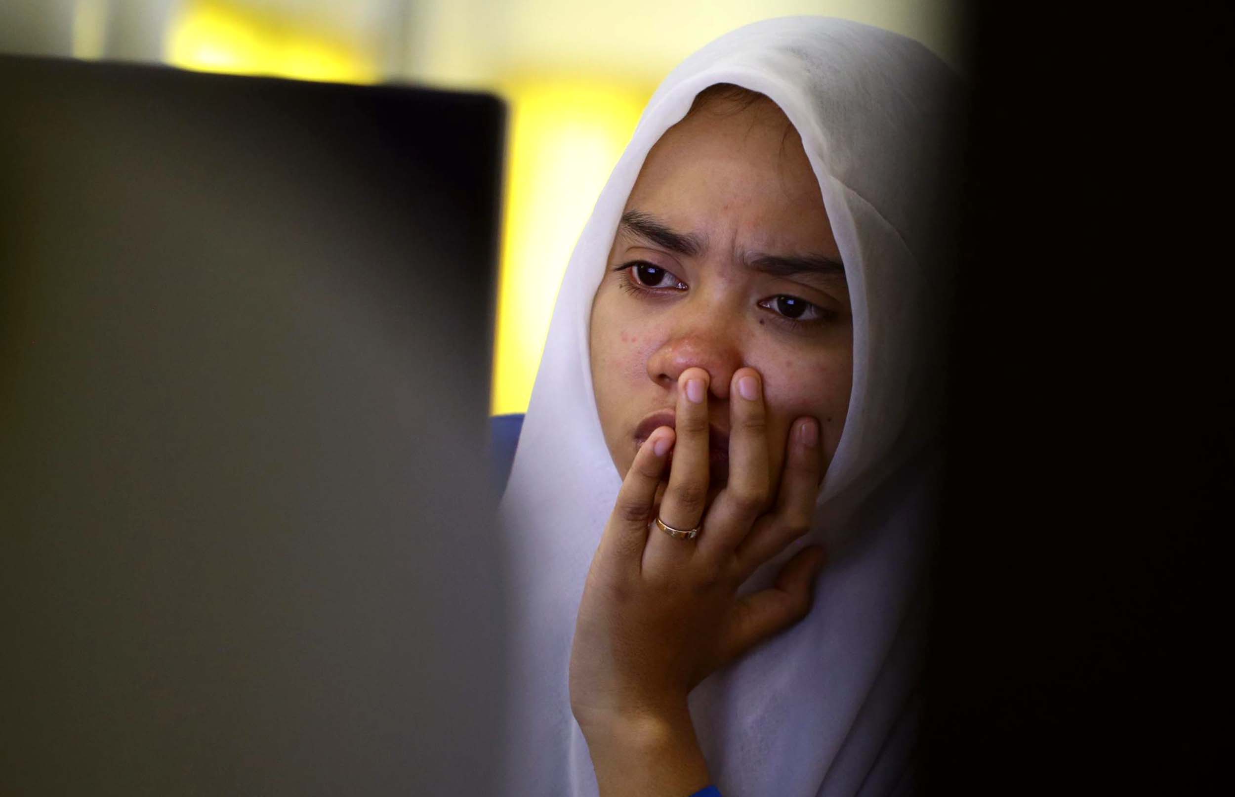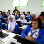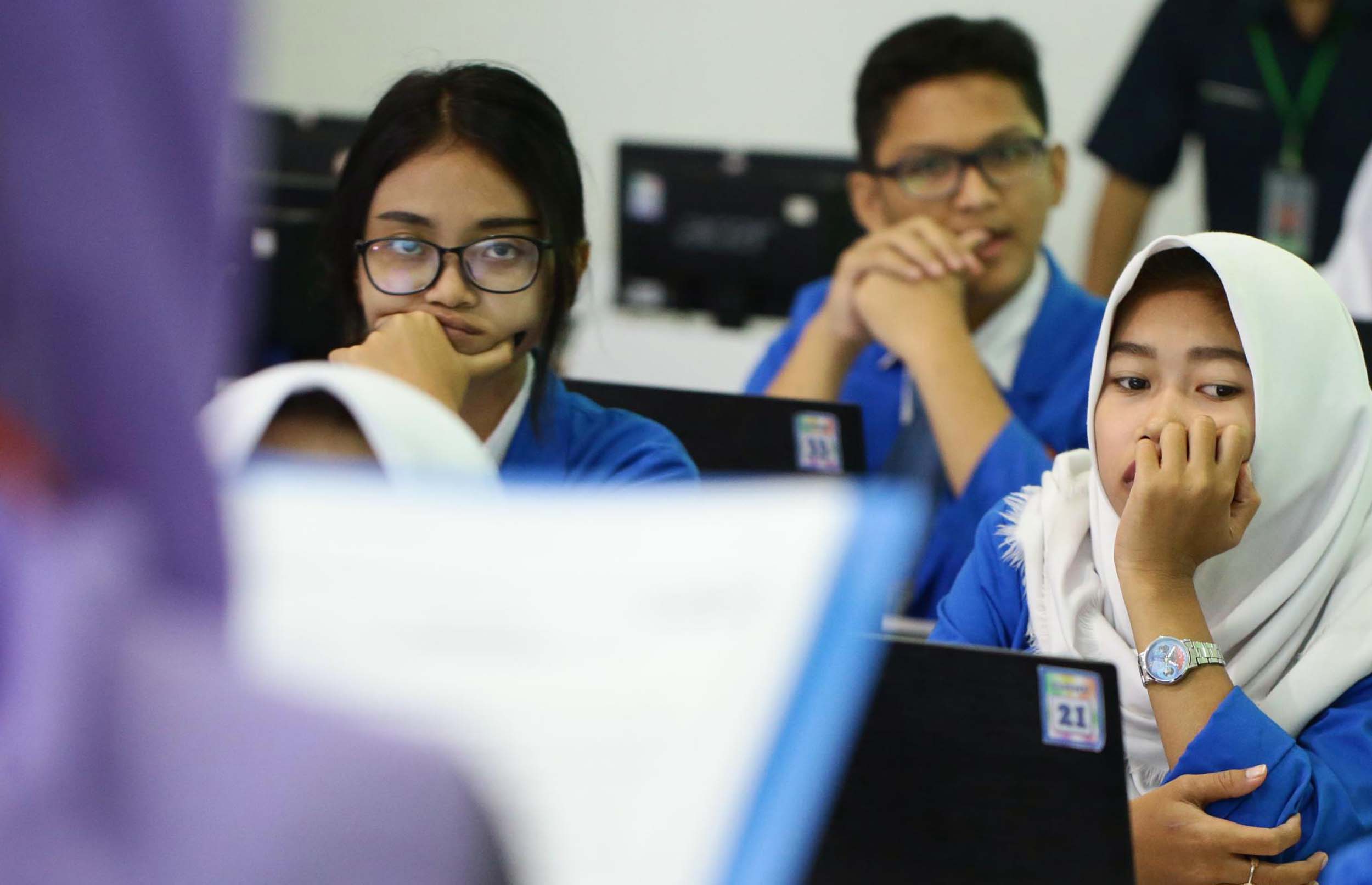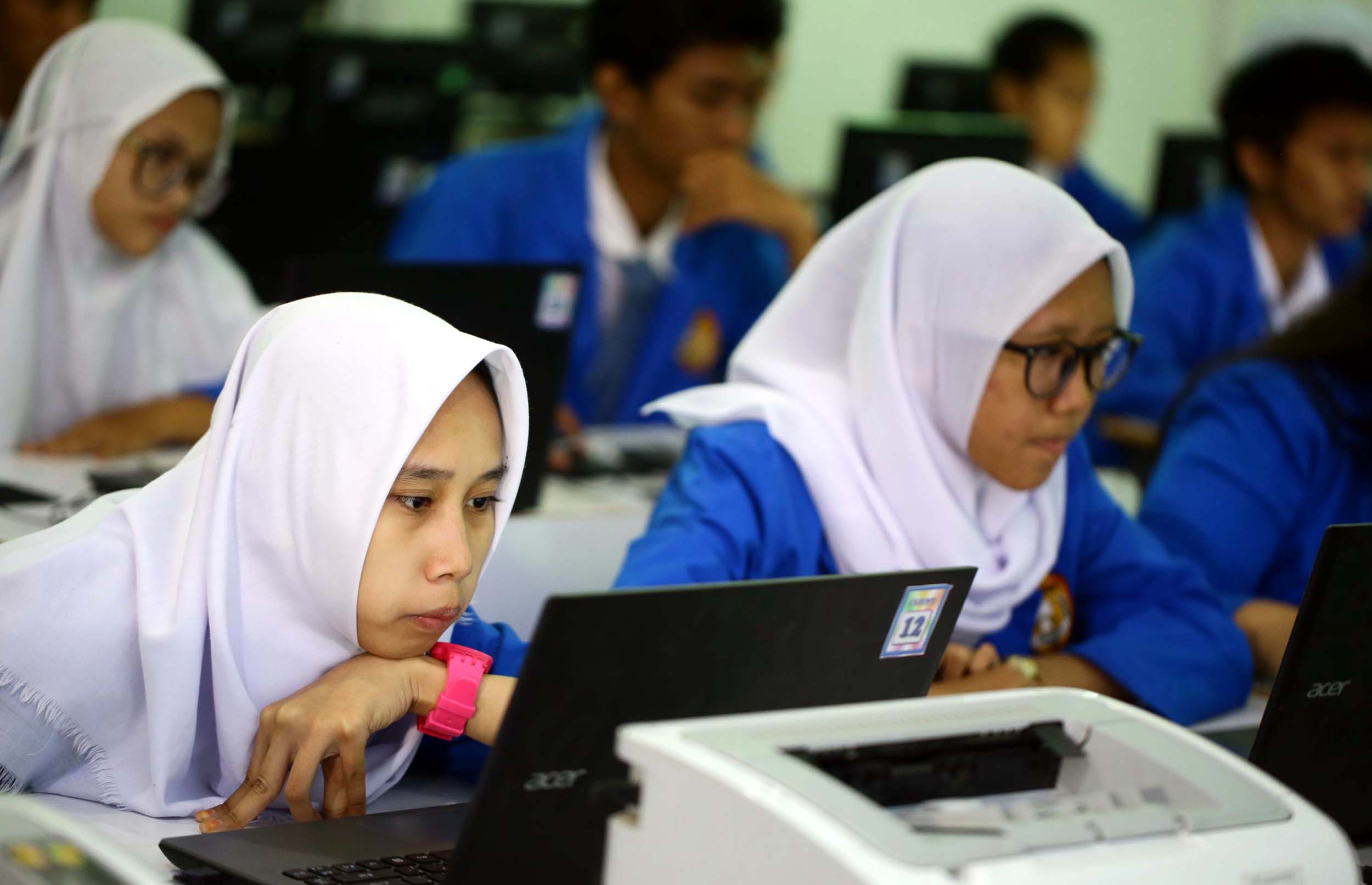 Sejumlah siswa di Sekolah Menengah Kejuruan (SMK) Jakarta Timur, nampak mengikuti Ujian Nasional Berbasis Komputer (UNBK), Senin (3/4/2017). Siswa SMK Jakarta Timur 1, mengikuti Ujian Nasional Berbasis Komputer (UNBK). UN tingkat SMA sederajat dilaksanakan hari ini hingga 6 April 2017. AKTUAL/Munzir