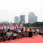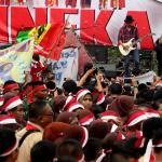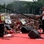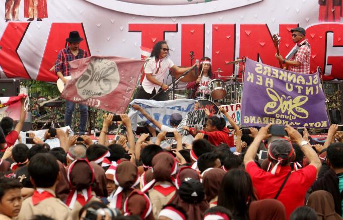 Grup Band Slank tampil saat berlangsungnya Apel Nasional Nusantara Bersatu di Silang Monas, Jakarta, Rabu (30/11/2016). Apel Nasional Nusantara Bersatu bertujuan untuk memperkokoh rasa persatuan dan kesatuan bangsa yang diikuti oleh pelajar dari tingkat SMP sampai universitas, tokoh lintas agama, budayawan, pejabat publik, musisi, artis, dan lain sebagainya. AKTUAL/Munzir