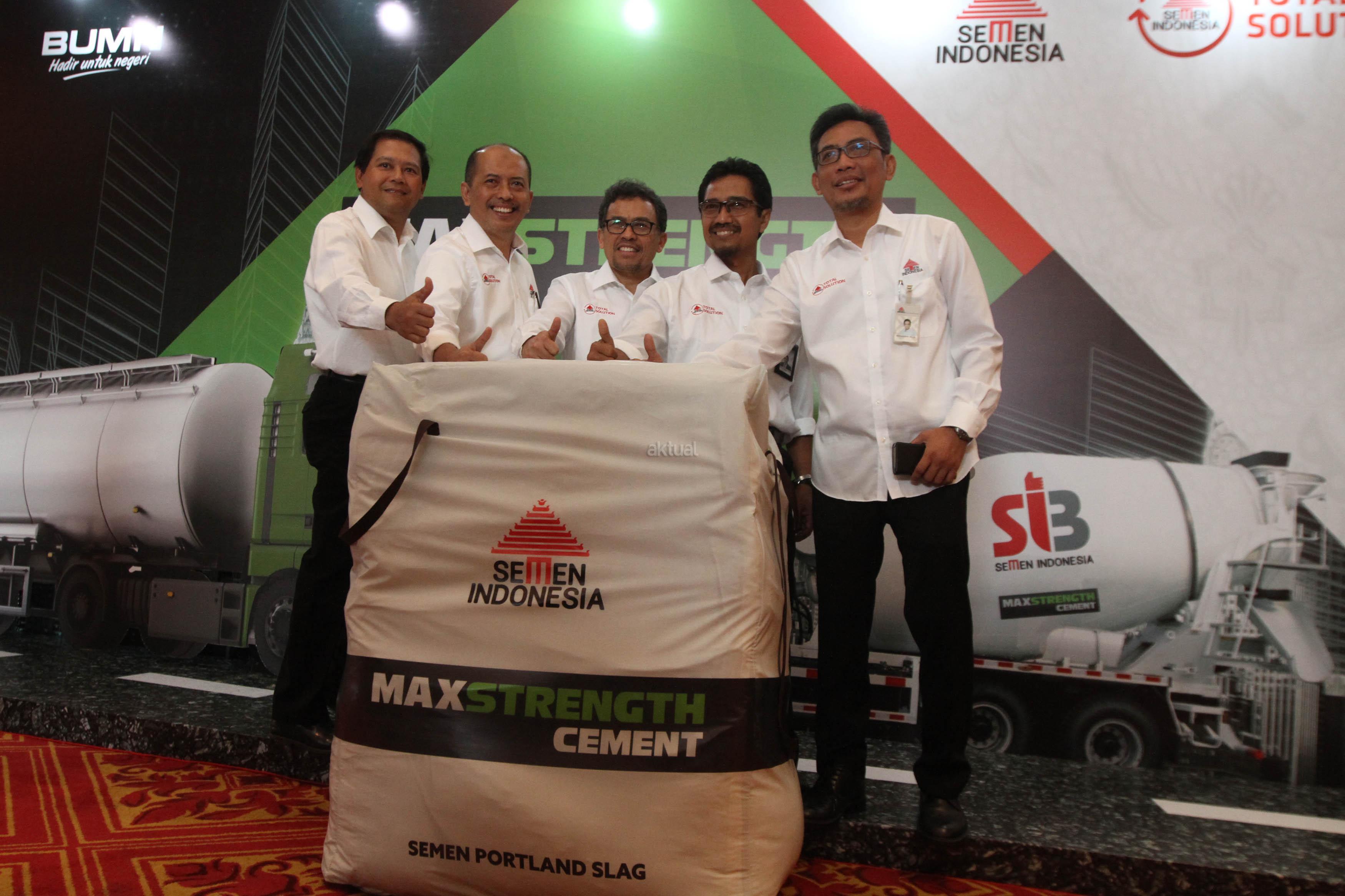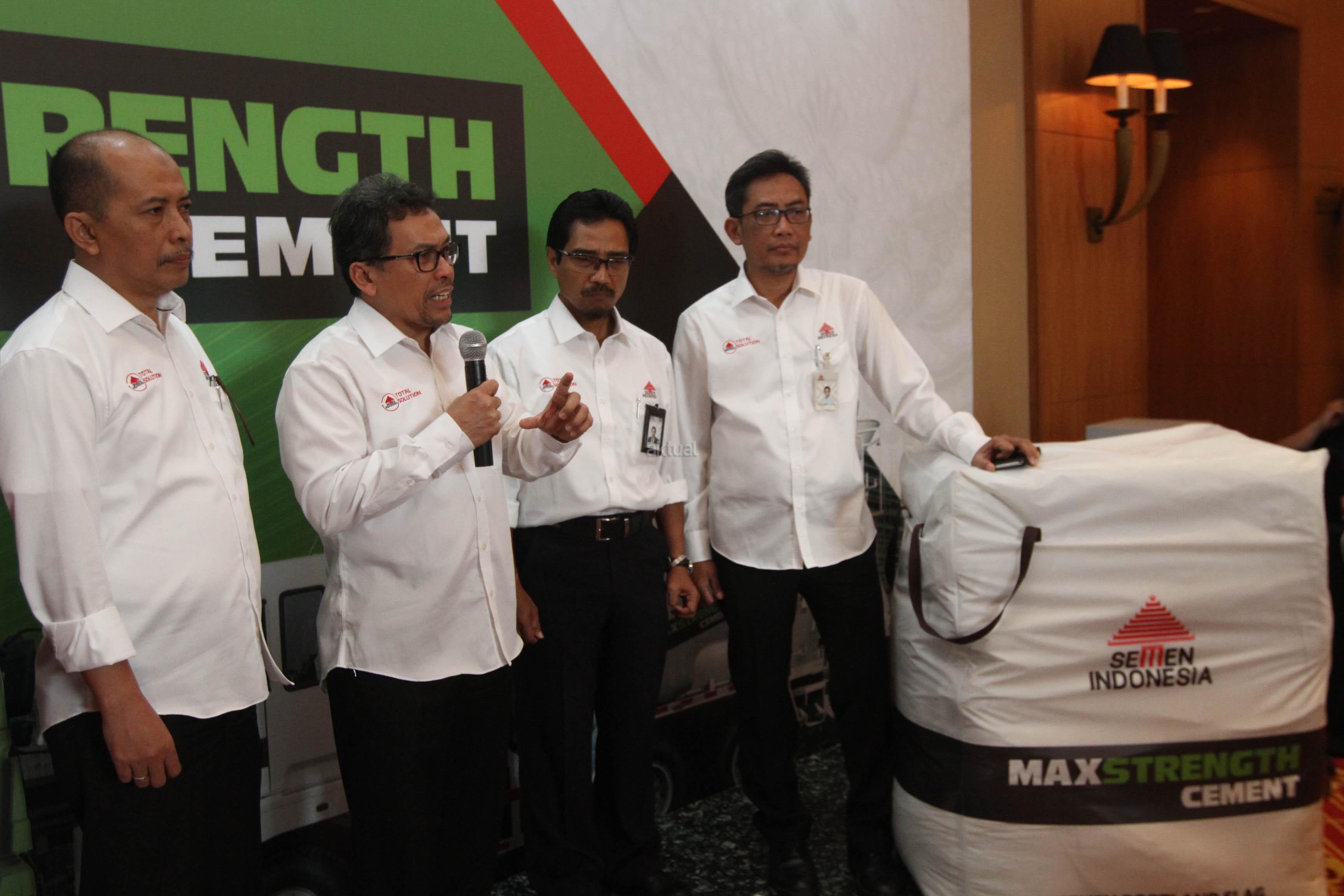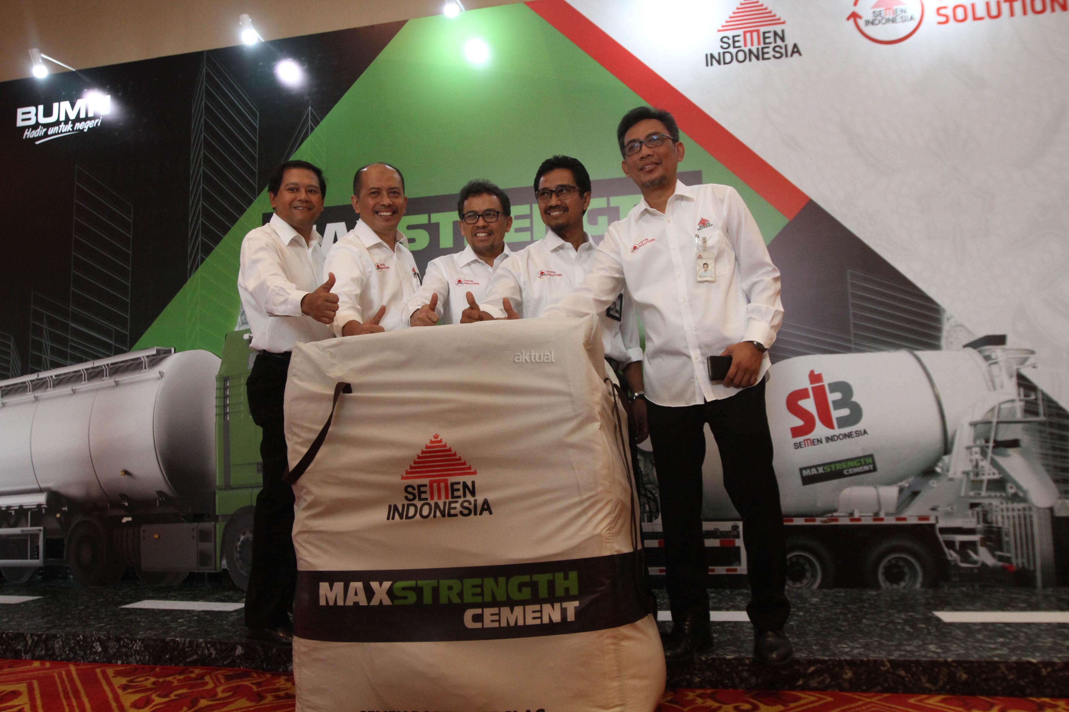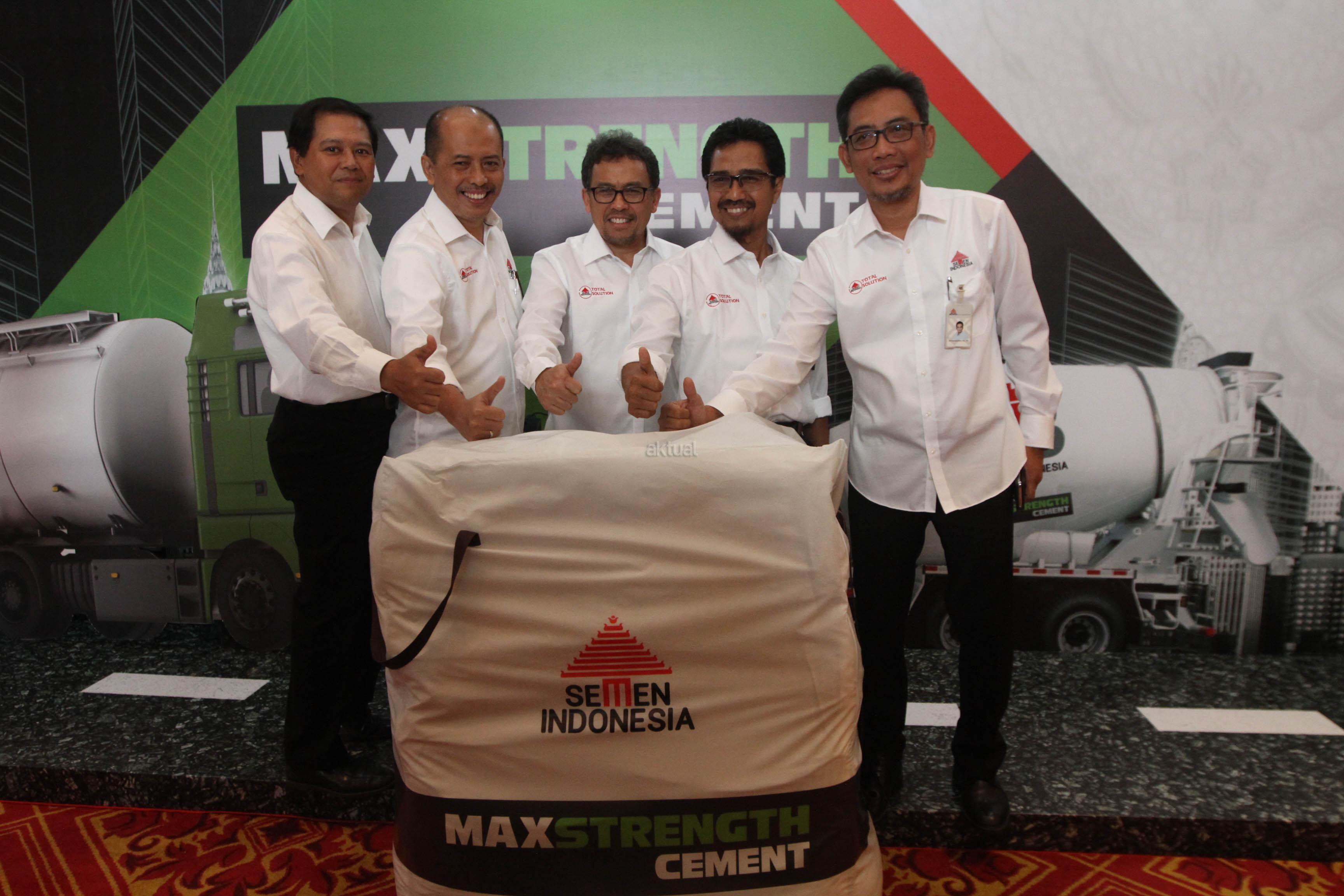 Plt. Direktur Utama Semen Indonesia Johan Samudra (kedua dari kanan) didampingi (dari kiri) : Direktur SDM dan Hukum Agung Yunanto, Sekretaris Perusahaan Agung Wiharto, Direktur Utama Semen Gresik Gatot Kustyadji, dan Direktur Pemasaran dan Supply Chain Ahyanizzaman saat peluncuran Produk Max Strength Cement di Jakarta, Rabu (30/8). PT. Semen Indonesia (Persero), Tbk. meluncurkan produk varian semen dengan merk Maxstrength Cement yang merupakan semen portland slag dengan spesifikasi yang diformulasikan khusus bagi industry ready mix dan precast untuk kebutuhan pembangunan mega structure. AKTUAL/Eko S Hilman