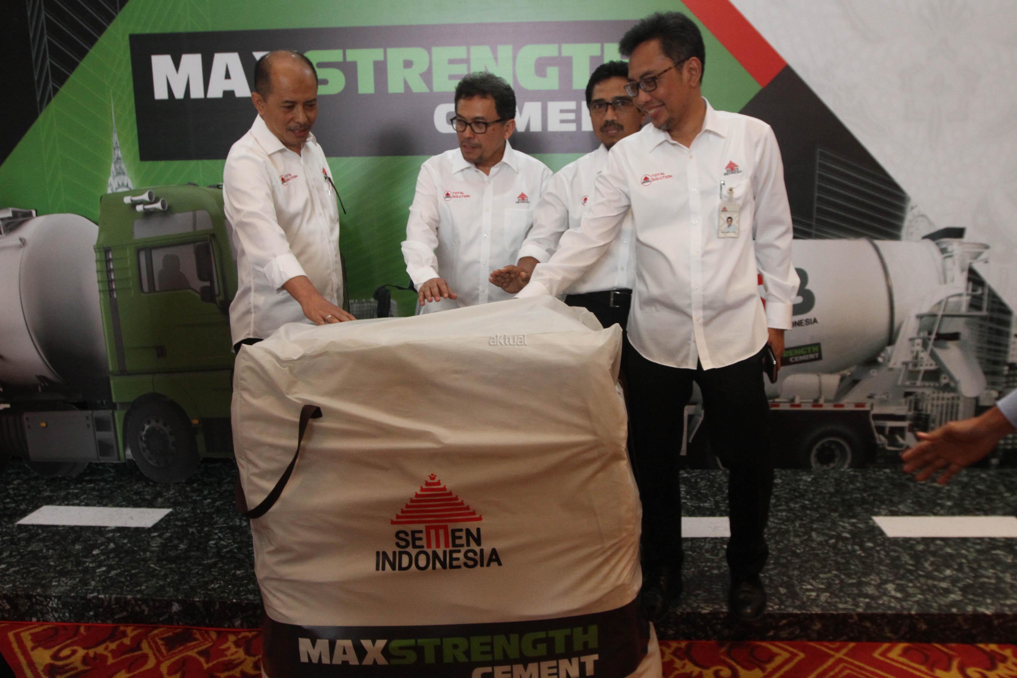 Plt. Direktur Utama Semen Indonesia Johan Samudra (kedua dari kanan) didampingi (dari kiri) : Direktur SDM dan Hukum Agung Yunanto, Direktur Utama Semen Gresik Gatot Kustyadji, dan Direktur Pemasaran dan Supply Chain Ahyanizzaman saat peluncuran Produk Max Strength Cement di Jakarta, Rabu (30/8). PT. Semen Indonesia (Persero), Tbk. meluncurkan produk varian semen dengan merk Maxstrength Cement yang merupakan semen portland slag dengan spesifikasi yang diformulasikan khusus bagi industry ready mix dan precast untuk kebutuhan pembangunan mega structure. AKTUAL/Eko S Hilman
