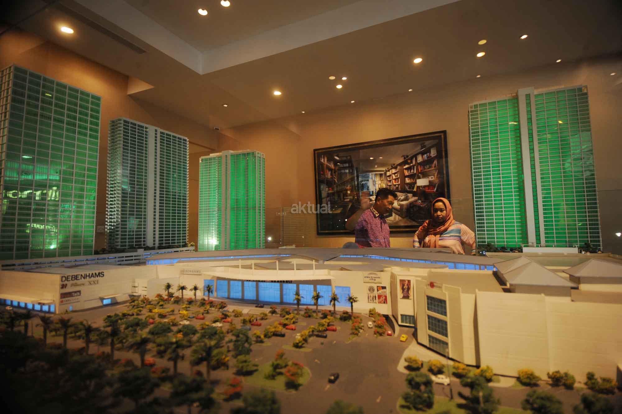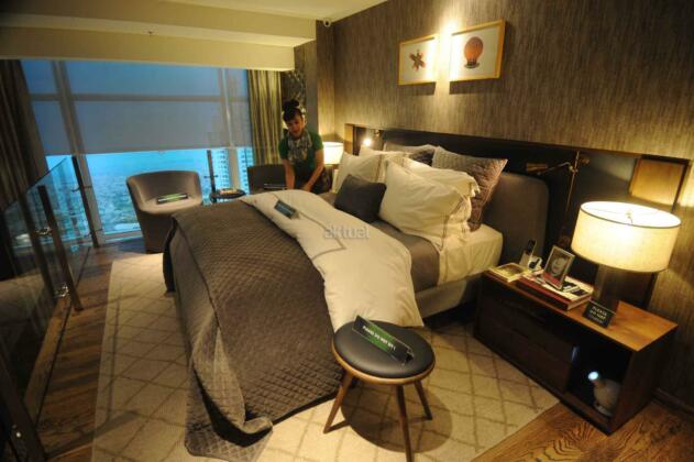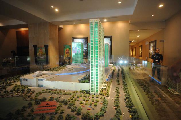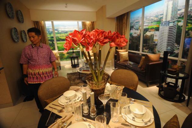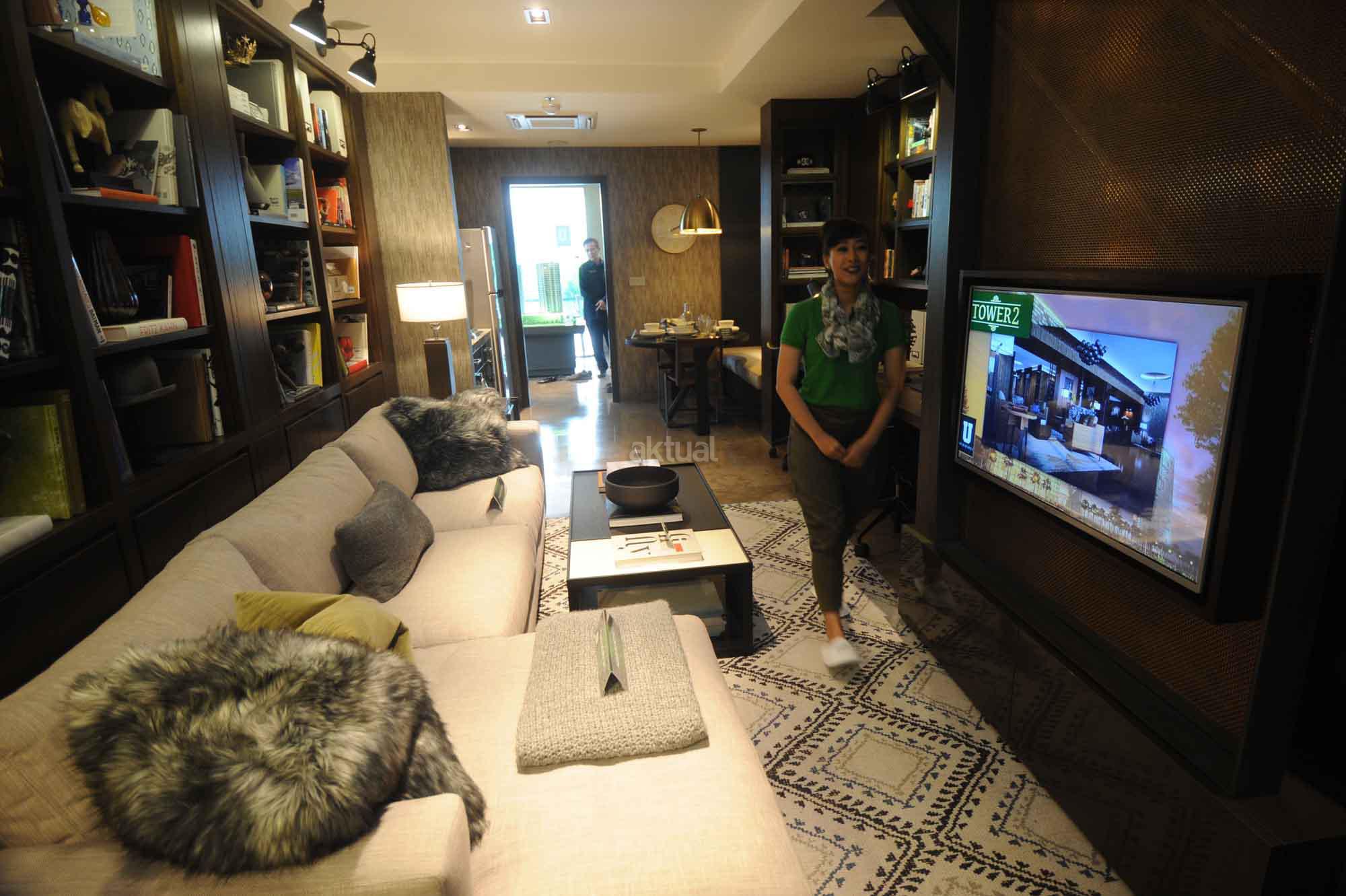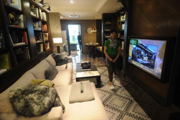 Presiden Direktur PT Supermal Karawaci Joachim Rohn (kiri) bersama General Manager Marketing U Residence, Machjani Safrudin (kanan), Asistant Project Director Djohan Mekuo (kedua kanan) berbincang dengan perwakilan penerima GRAND PRIZE BIZLOFTS U-RESIDENCE, 1 unit Apartemen tipe studio di Grand Atrium Supermal Karawaci, Tangerang, Banten, Sabtu (28/5). SOHO bizlofts@U-Residence di bangun dengan fasilitas seperti hotel dan mal yang saat ini unitnya sudah terjual sekitar 60% dengan harga sekitar Rp 1 miliar per unit. AKTUAL/HO