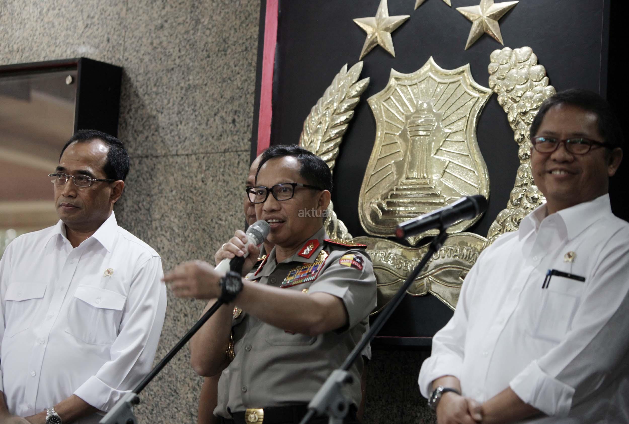Dalam jumpa persnya Kapolri bersama Menteri Perhubungan dan Menkominfo melakukan sosialisasi dengan Pemerintah Daerah melalui video confrence terkait pemberlakuan revisi Peraturan Menteri Perhubungan (Permenhub) No.32 Tahun 2016 tentang penyelenggaraan angkutan orang dengan kendaraan bermotor umum tidak dalam trayek, yang akan dimulai pada 1 April 2017 mendatang. AKTUAL/Munzir