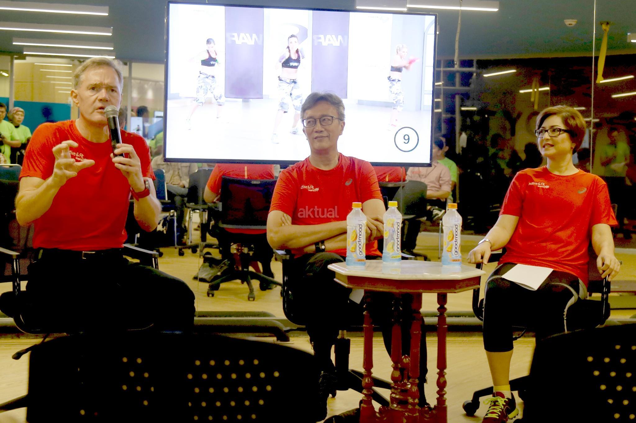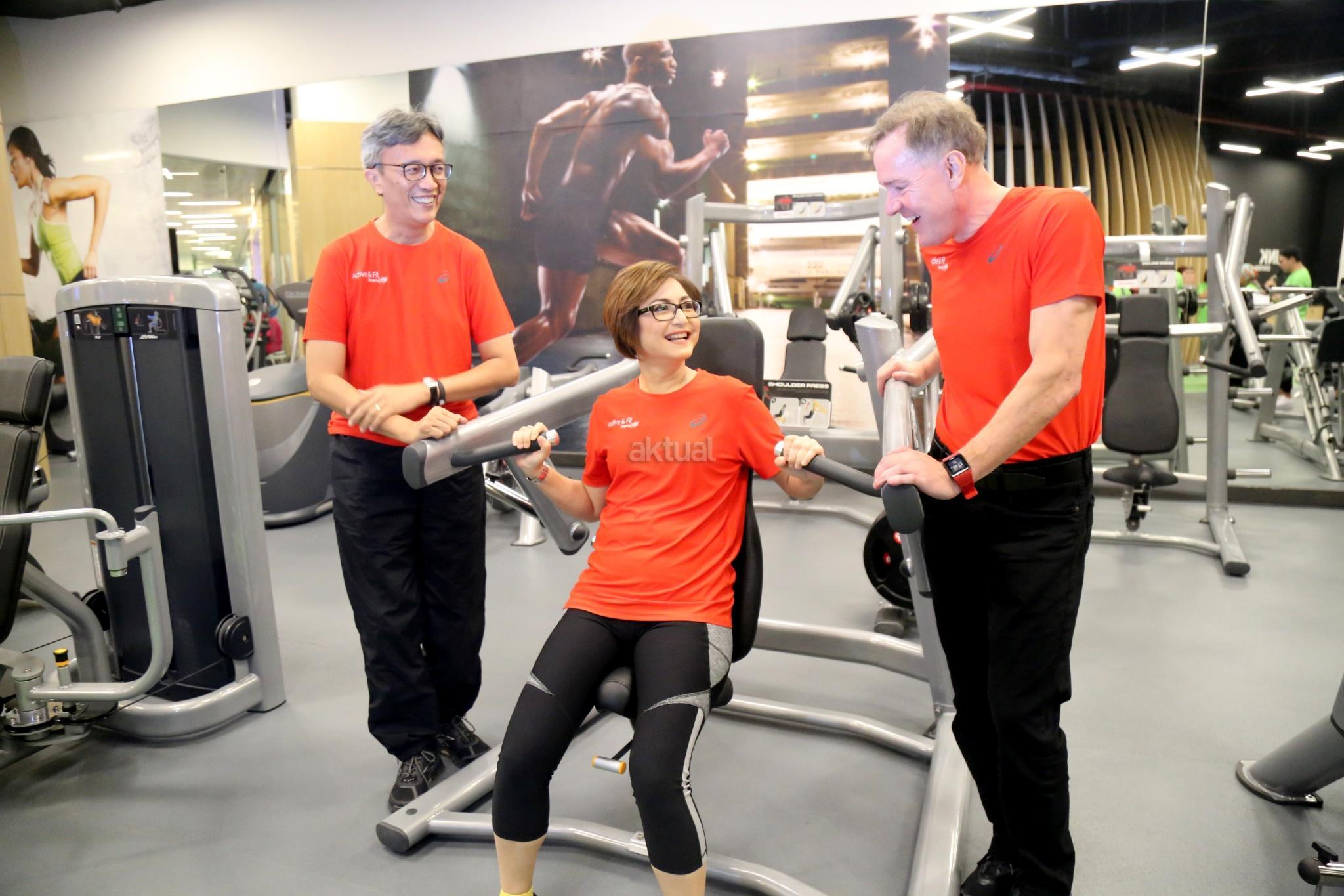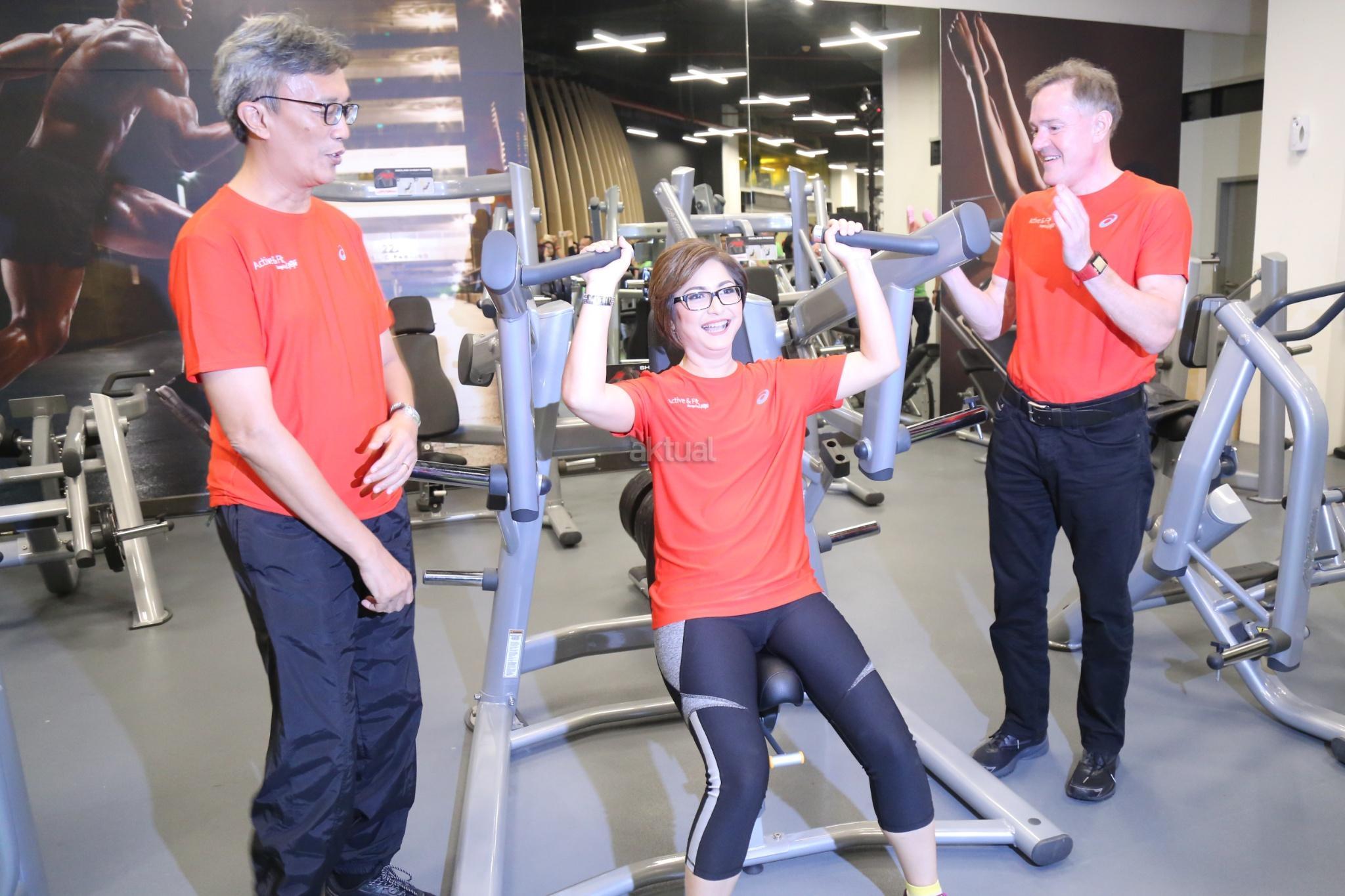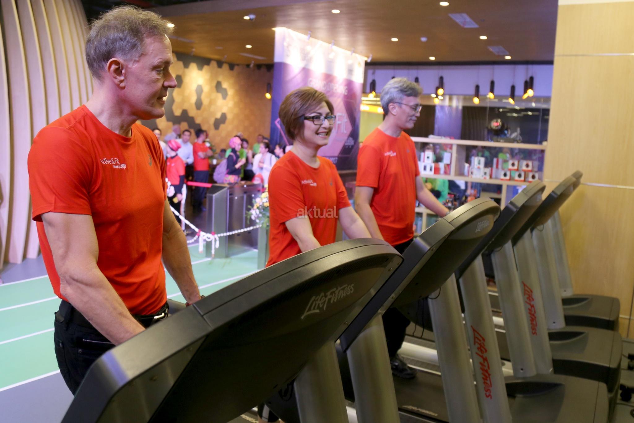 Direktur Proyek South Quarter Chandra Makmoen berbincang dengan Direktur Utama Lifespa Fitness Brian John Billdt dan Deputy General Marketing Manager Intiland Jeannie Bruin (tengah) saat peresmian pusat kebugaran Active & Fit, Jakarta, Senin (14/8). Active & Fit merupan konsep baru pusat kebugaran dan gym yang berpusat di kawasan perkantoran South Quarter Jakarta. AKTUAL/Tino Oktaviano