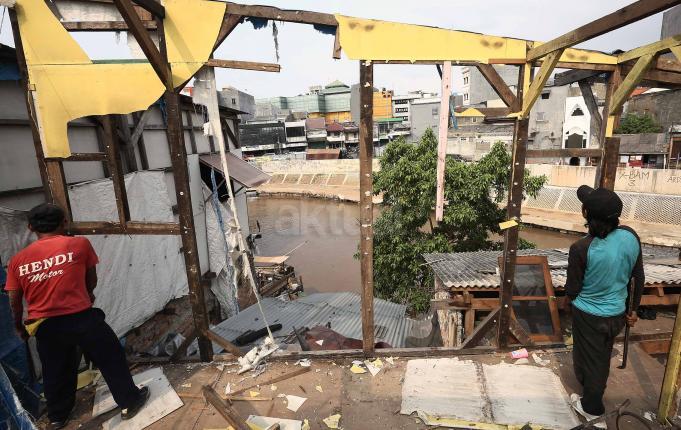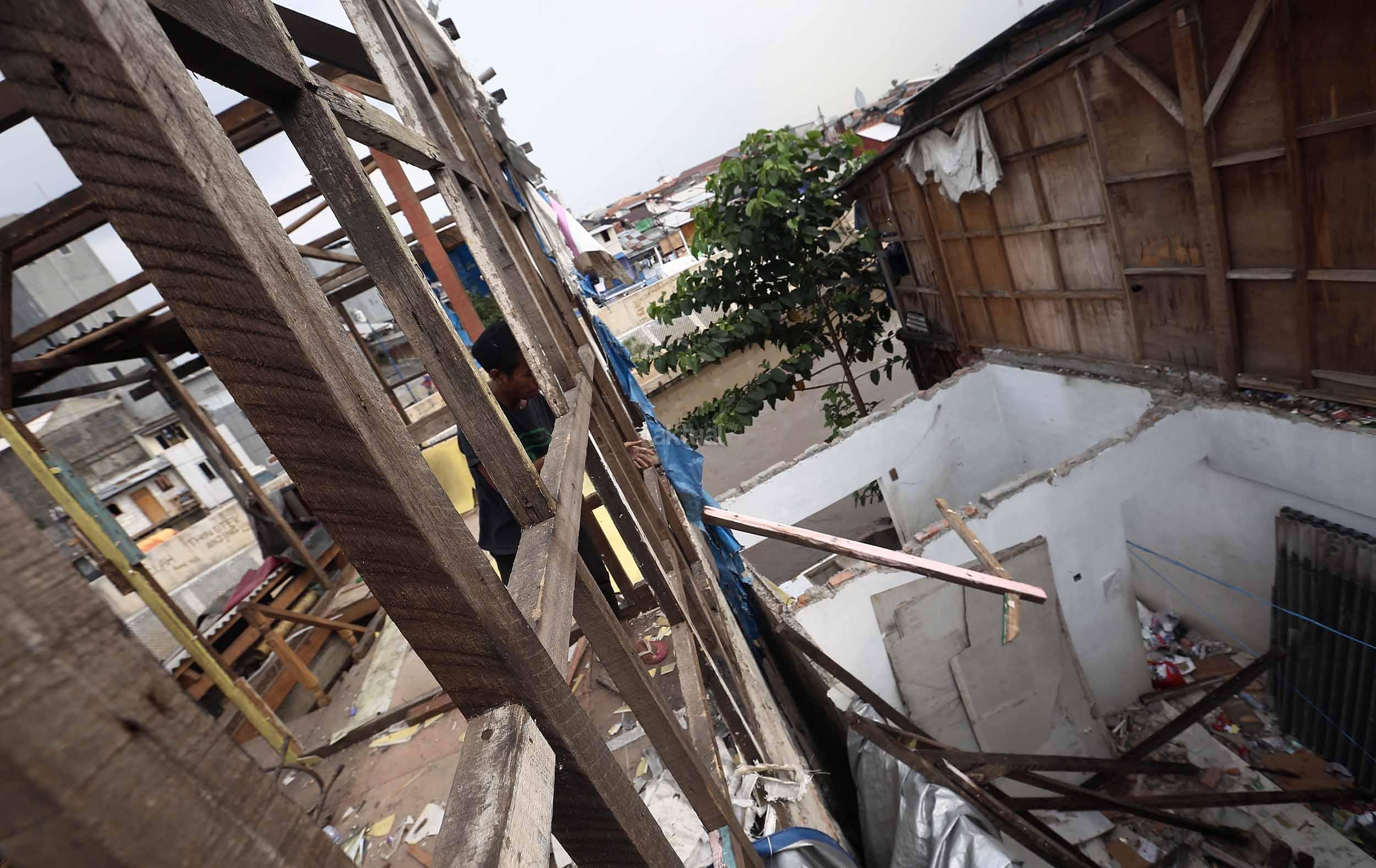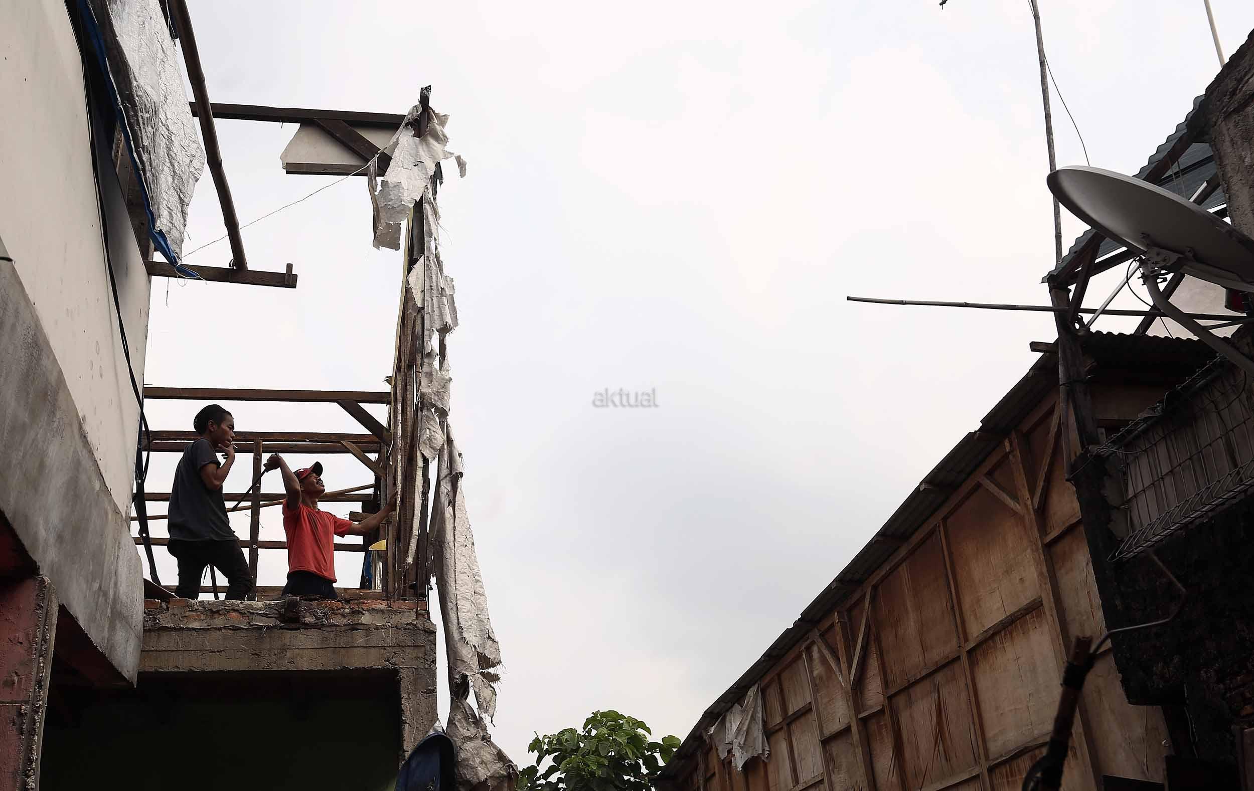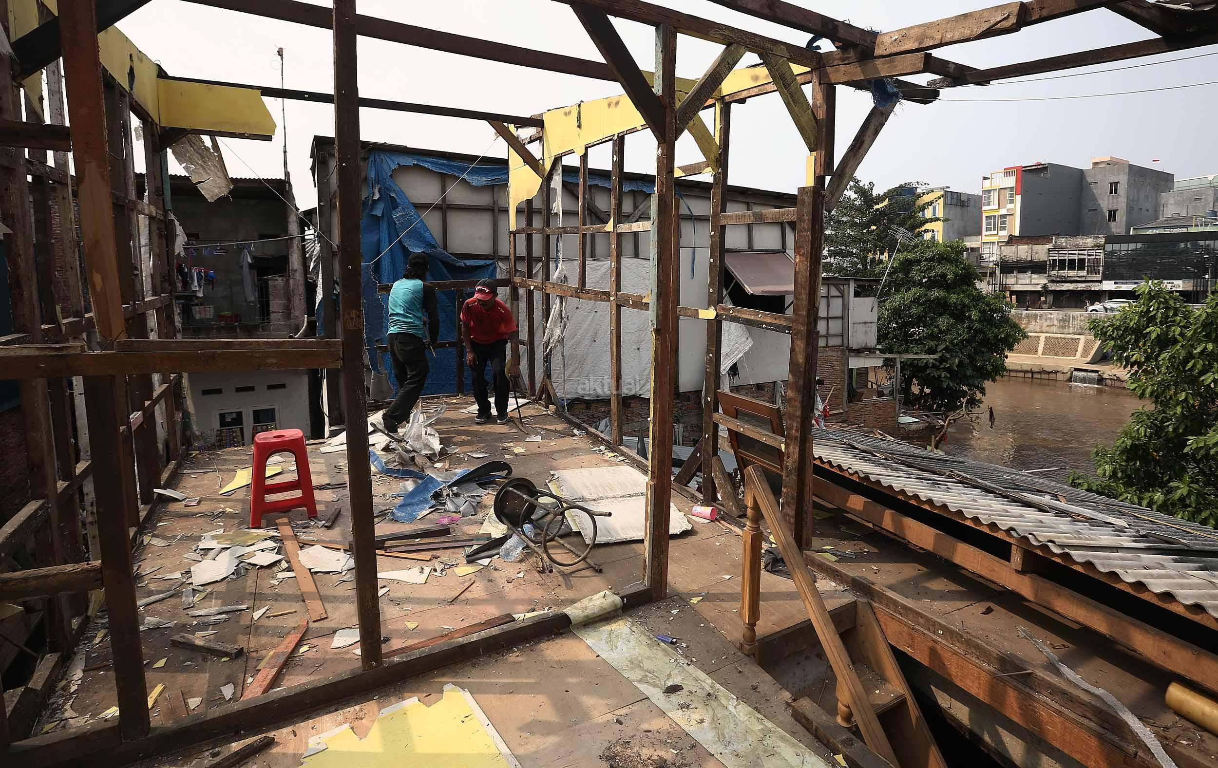 Warga Bukit Duri membongkar rumahnya jelang penertiban oleh Pemprov DKI Jakarta, Selasa (13/9/2016).Setelah mengeluarkan Surat Peringatan ke-3 (SP3) Pemprov DKI akan segera membongkar kawasan Bukit Duri guna normalisasi Sungai Ciliwung untuk pengendalian banjir.