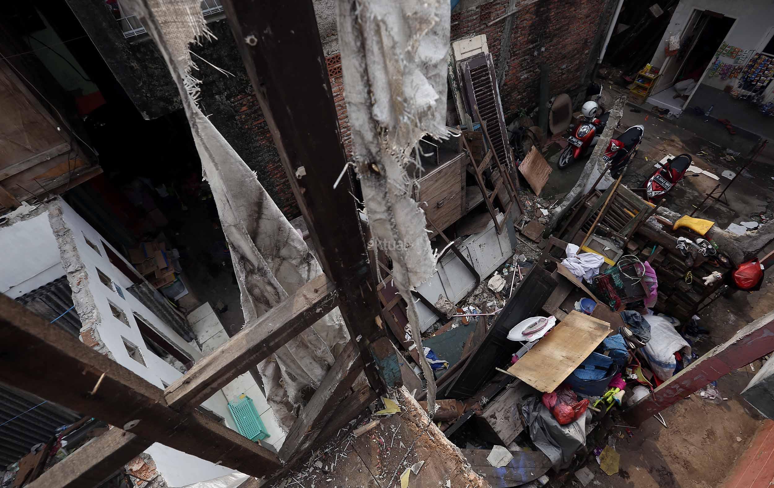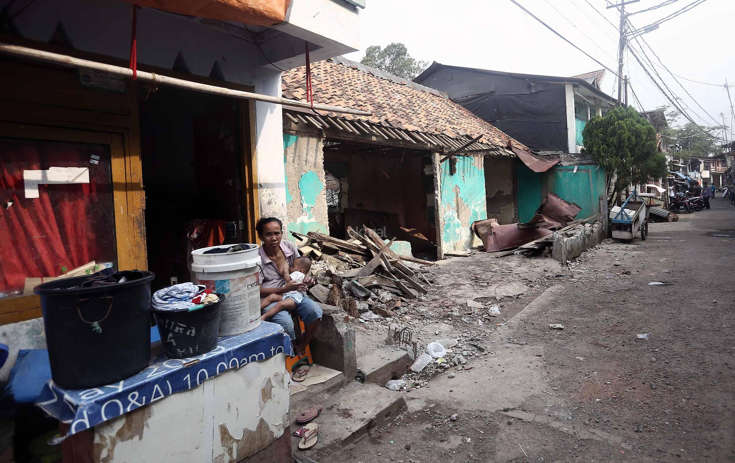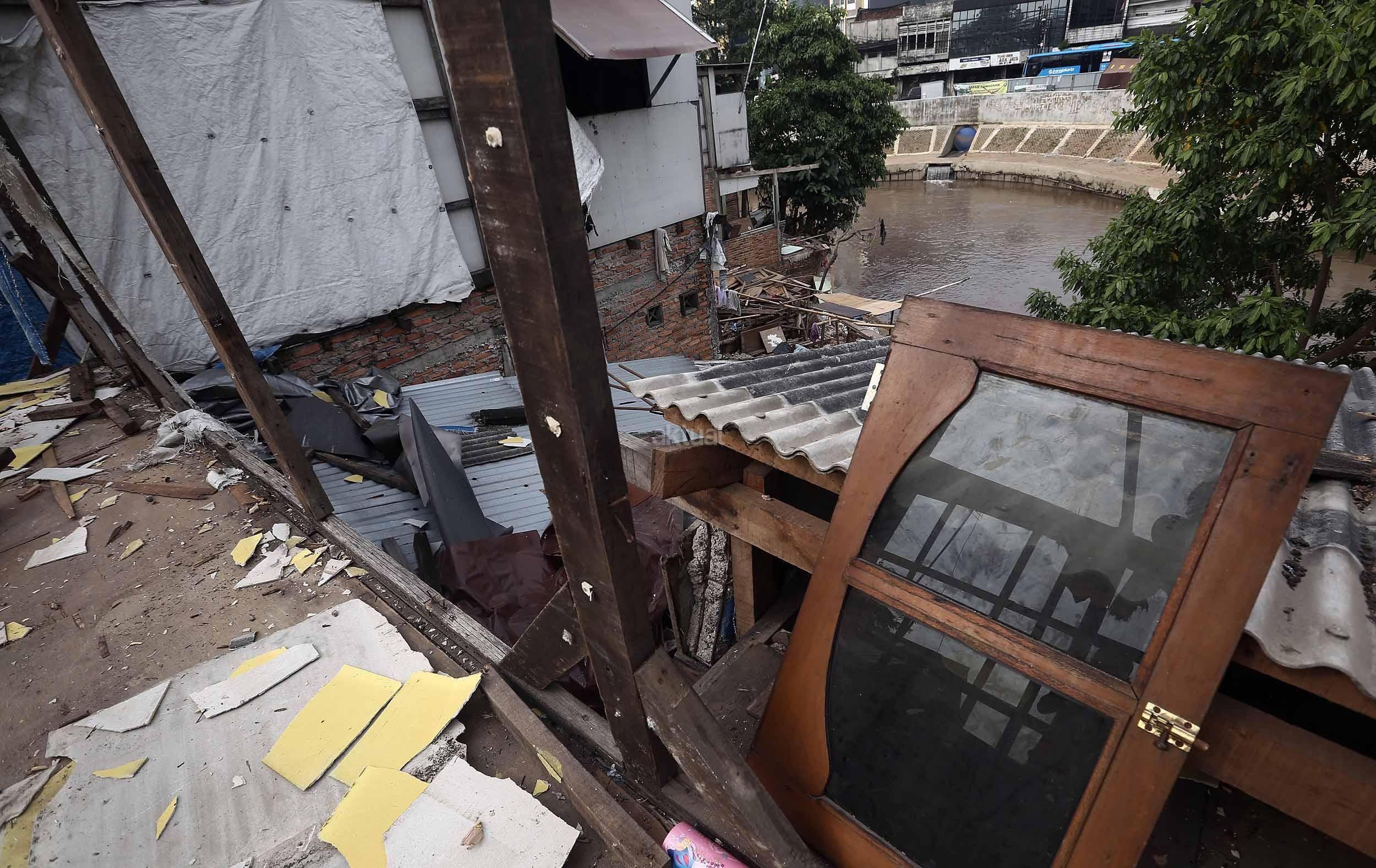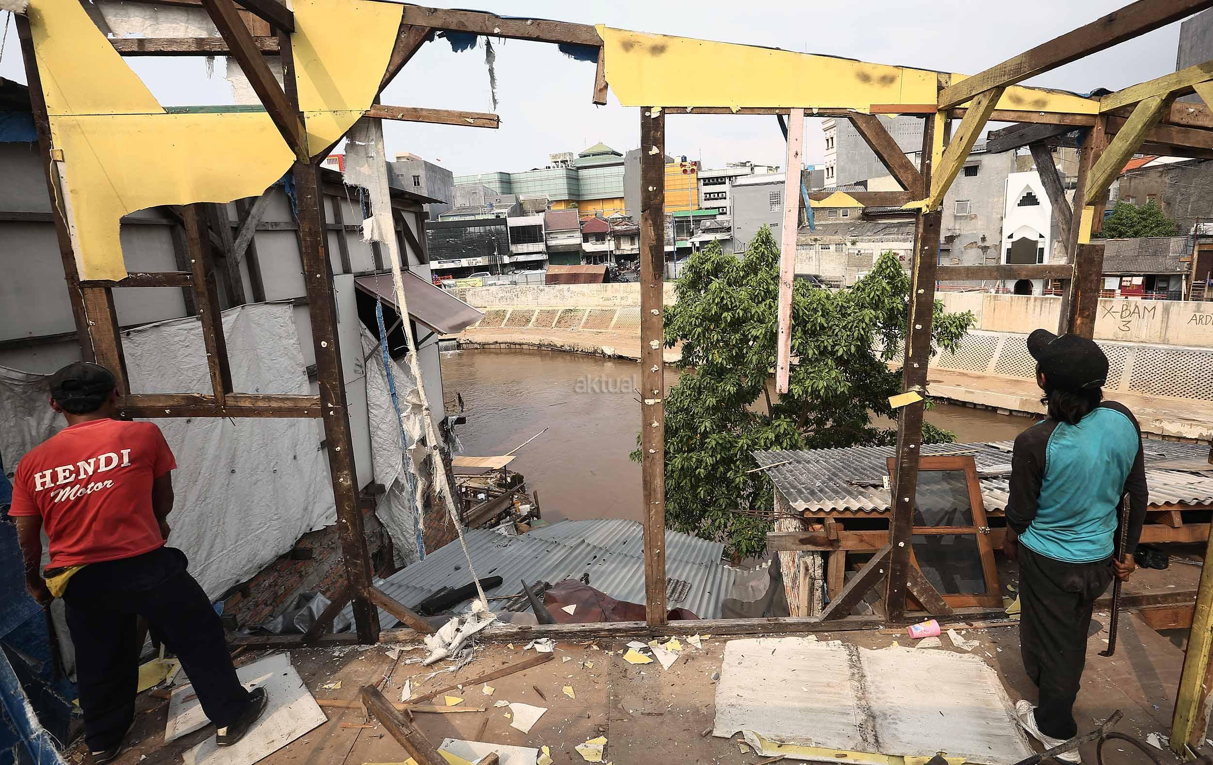 Warga Bukit Duri membongkar rumahnya jelang penertiban oleh Pemprov DKI Jakarta, Selasa (13/9/2016).Setelah mengeluarkan Surat Peringatan ke-3 (SP3) Pemprov DKI akan segera membongkar kawasan Bukit Duri guna normalisasi Sungai Ciliwung untuk pengendalian banjir.