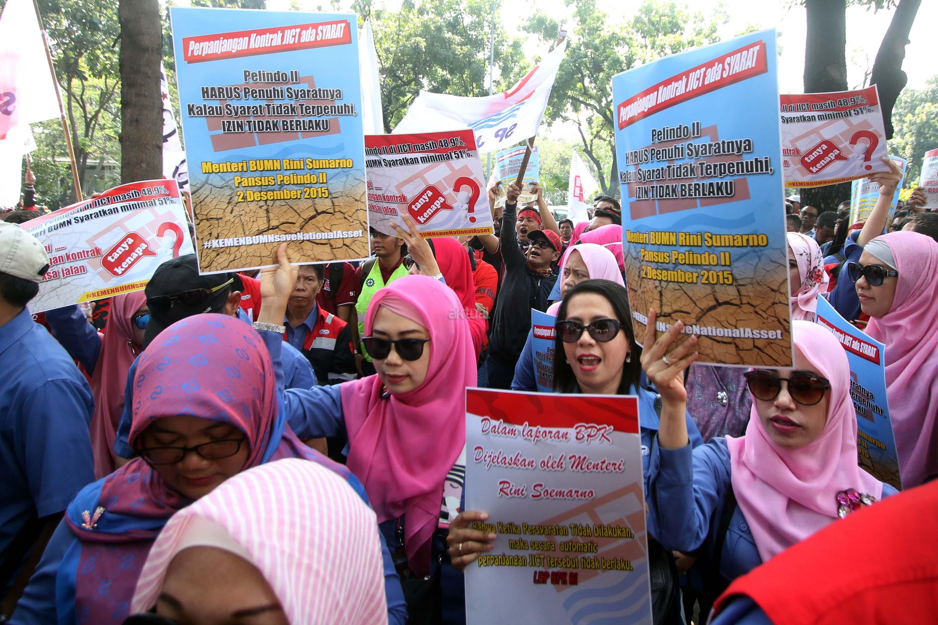 Dalam aksinya mendesak Meneg BUMN Rini Soemarno tindak lanjut terhadap Hasil Audit Investigatif BPK Perpanjangan Kontrak JICT dan Kementeian BUMN terhadap Hasil Audit Investigatif BPK Perpanjangan Kontrak JICT. AKTUAL/Munzir