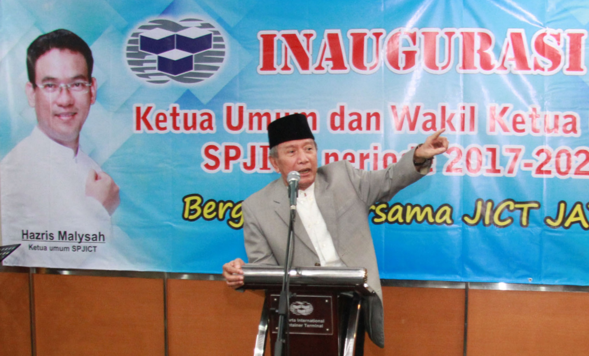 Mantan Mensesneg Bondan Gunawan saat memberikan sambutan dalam acara inaugurasi ketua dan wakil ketua SPJict di Kantor JIT, Jakarta, Senin (18/12/2017). Ketua terpilih Hazris berkomitmen untuk melanjutkan agenda SPJICT dalam menyelamatkan aset nasional dan menegakkan keadilan bagi pekerja JICT serta menjadi penyeimbang kepentingan negara, pekerja dan perusahaan. AKTUAL/Tino Oktaviano