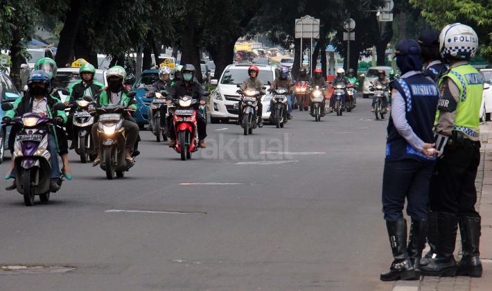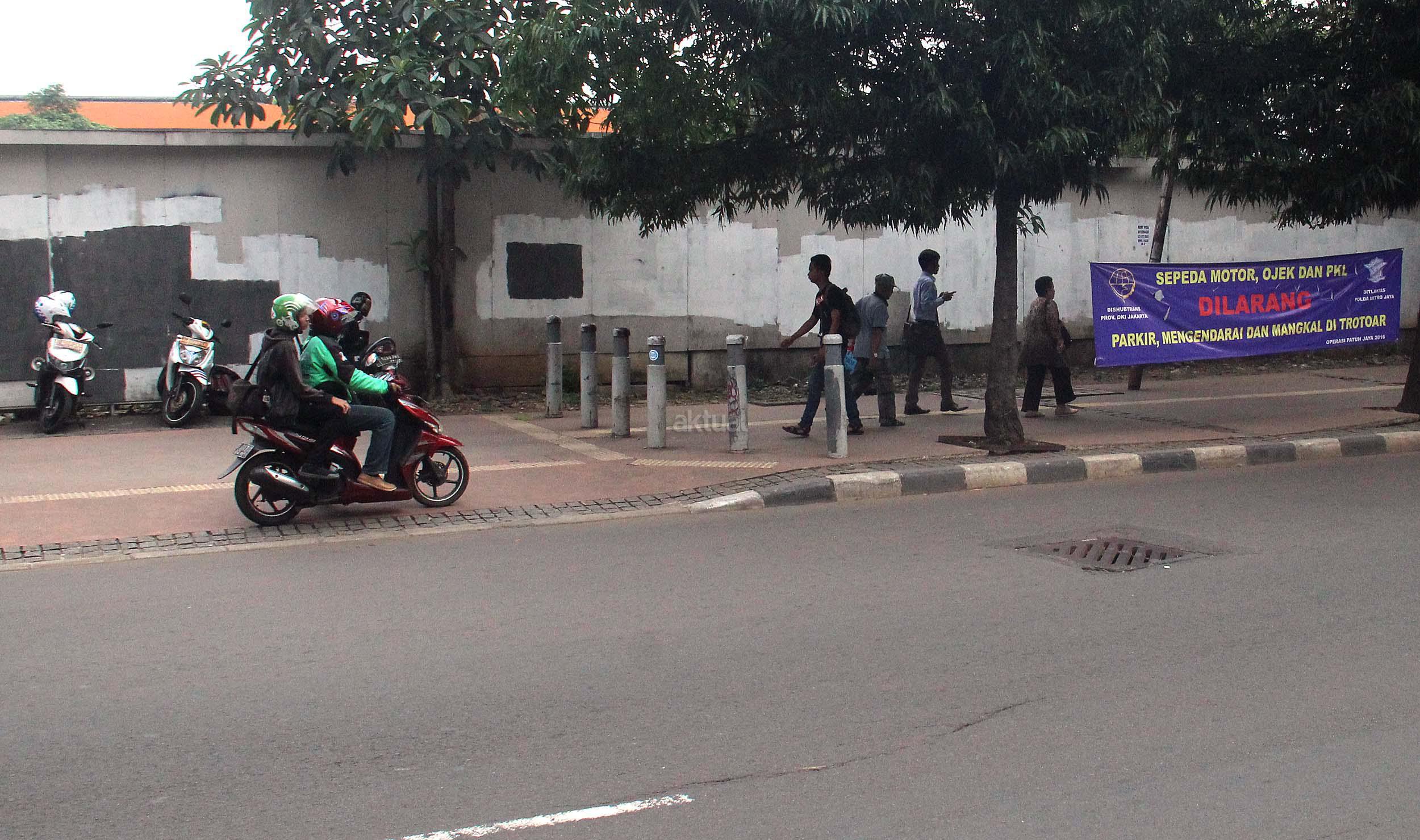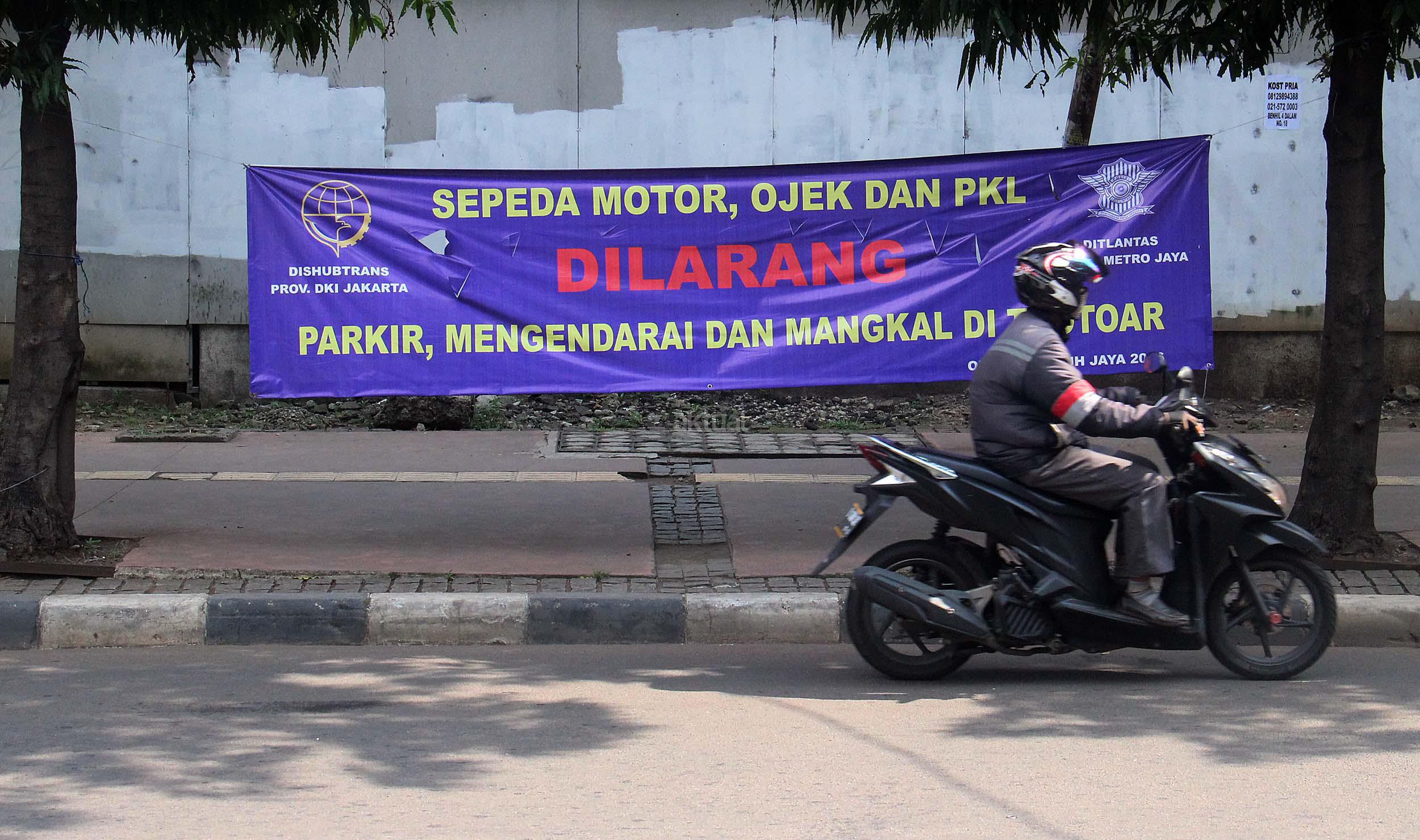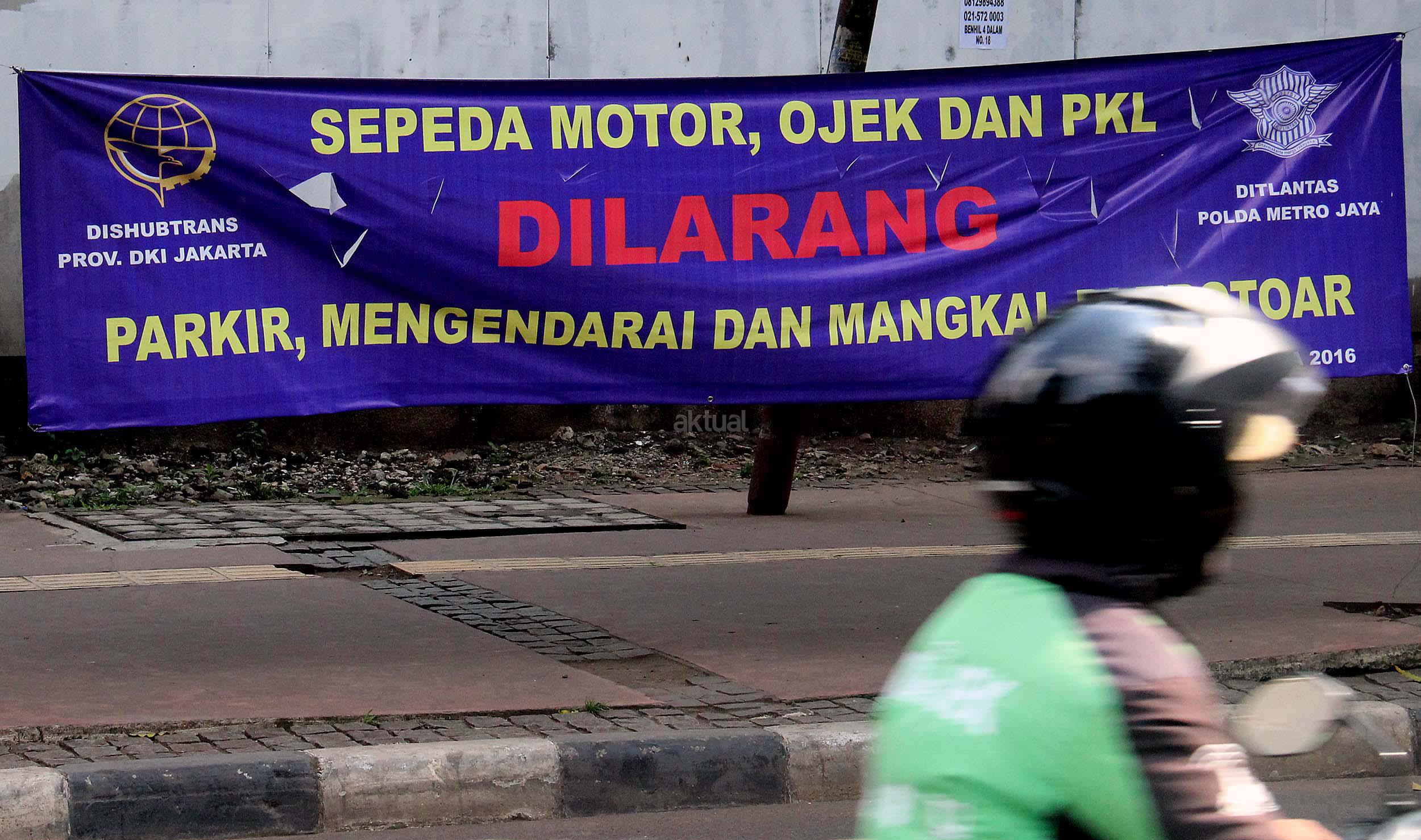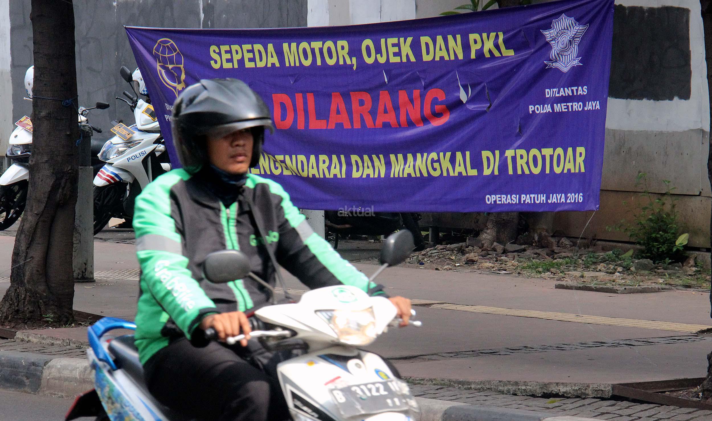Ditlantas Polda Metro Jaya bersama Dinas Perhubungan dan Transportasi (Dishubtrans) DKI Jakarta menegaskan akan menertibkan pengojek yang mangkal trotoar, taman atau bahu jalan.
