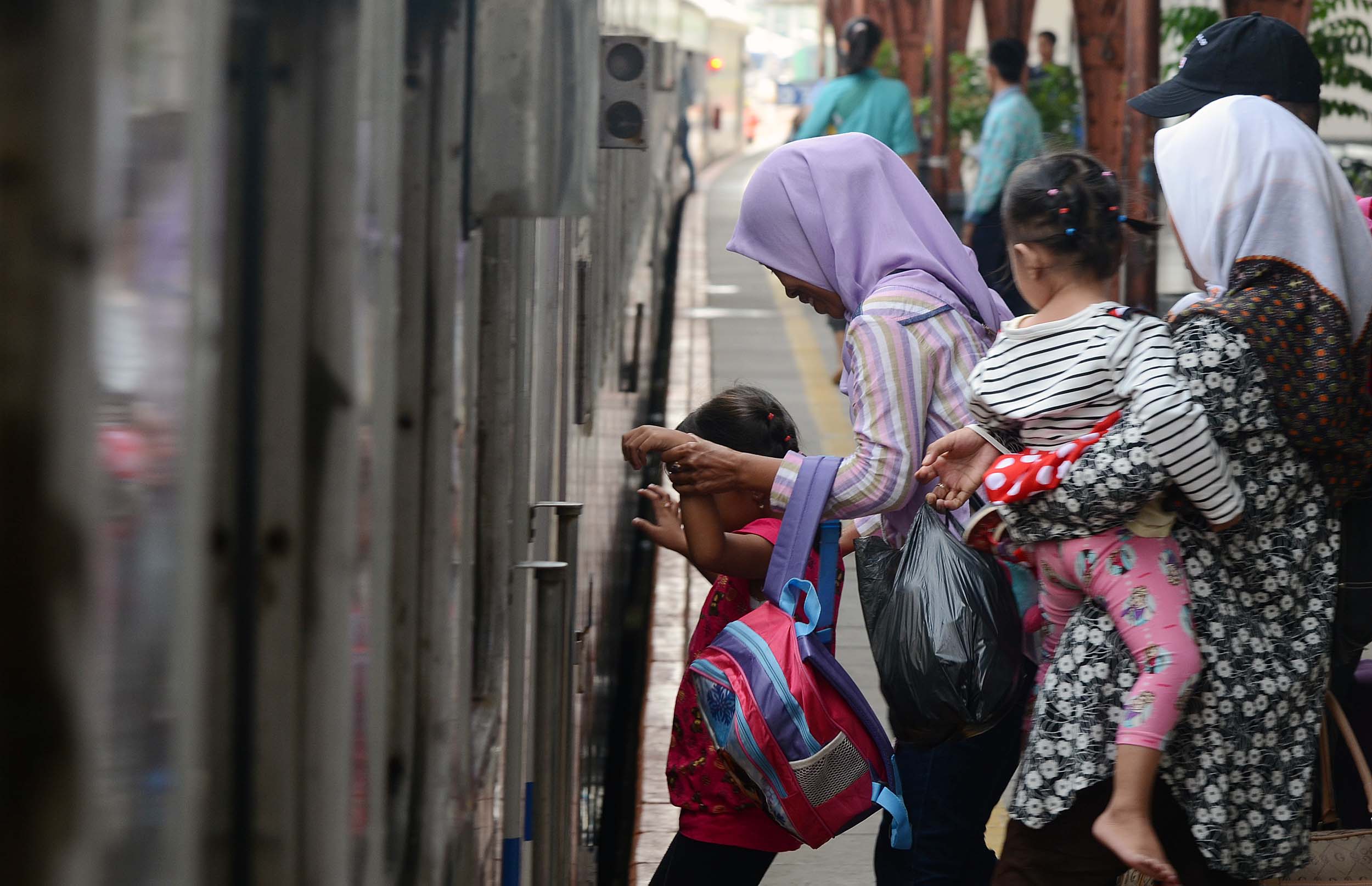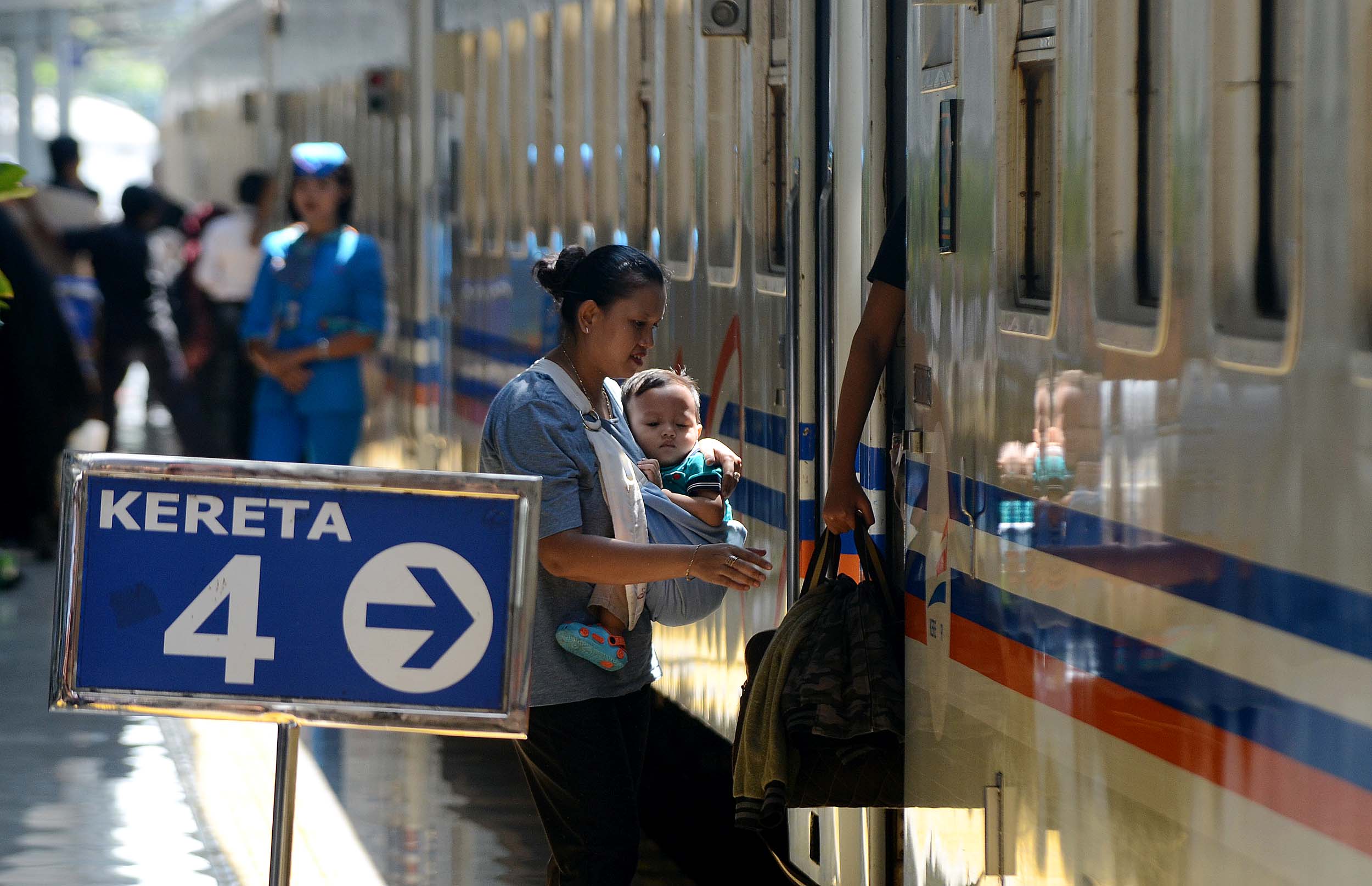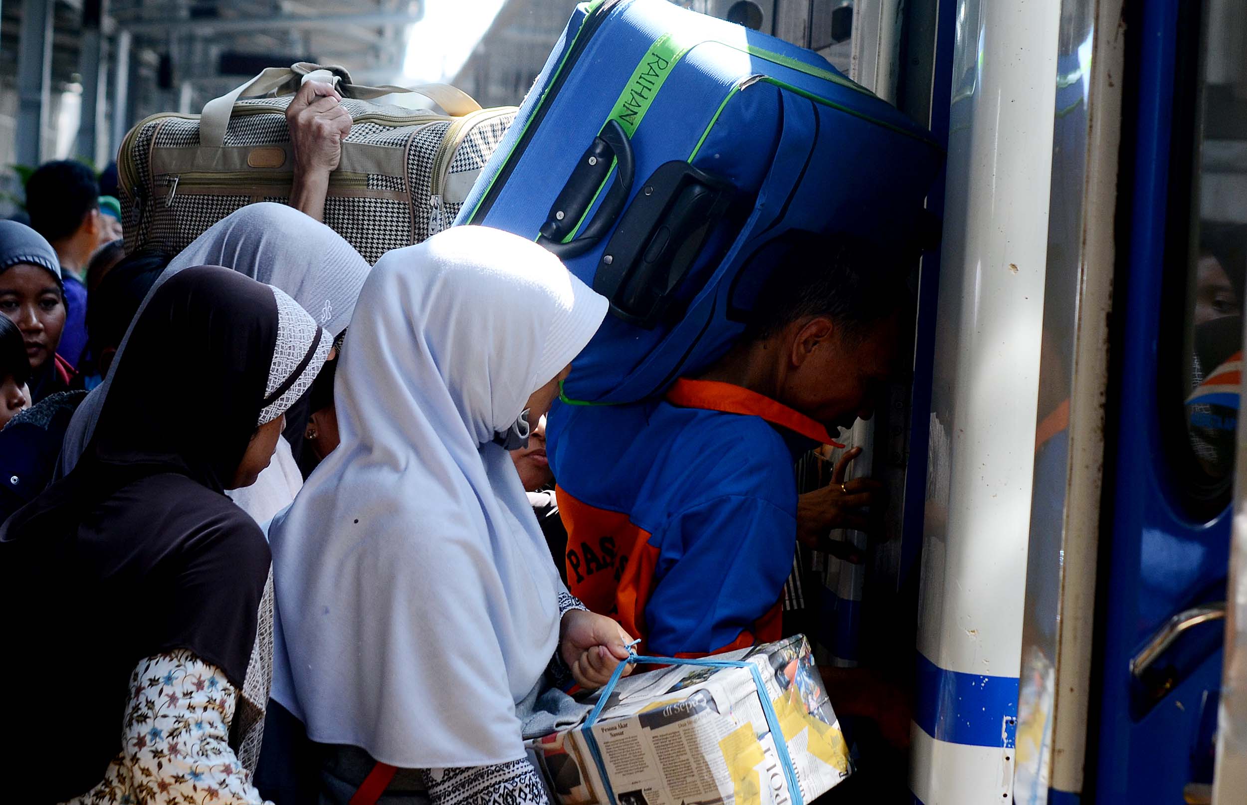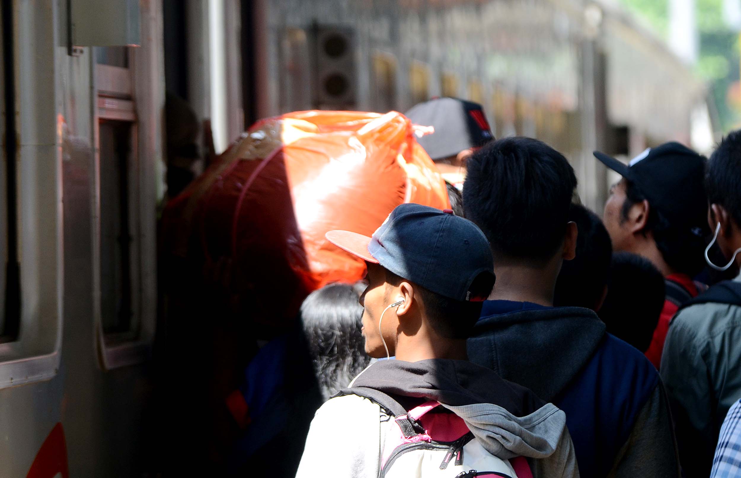 Sejumlah penumpang menunggu kereta jurusan Jawa Timur di Stasiun Kereta Senen, Jakarta, Rabu (29/6/2016). Peningkatan pemudik di stasiun Senen mengalami lonjakan 30%. Sejak hari Sabtu kemarin tercatat sebanyak 81ribu pemudik pulang melalui stasiun Senen.