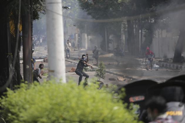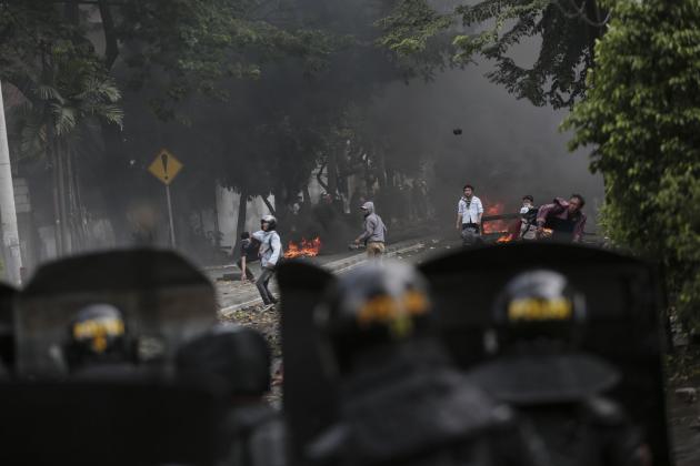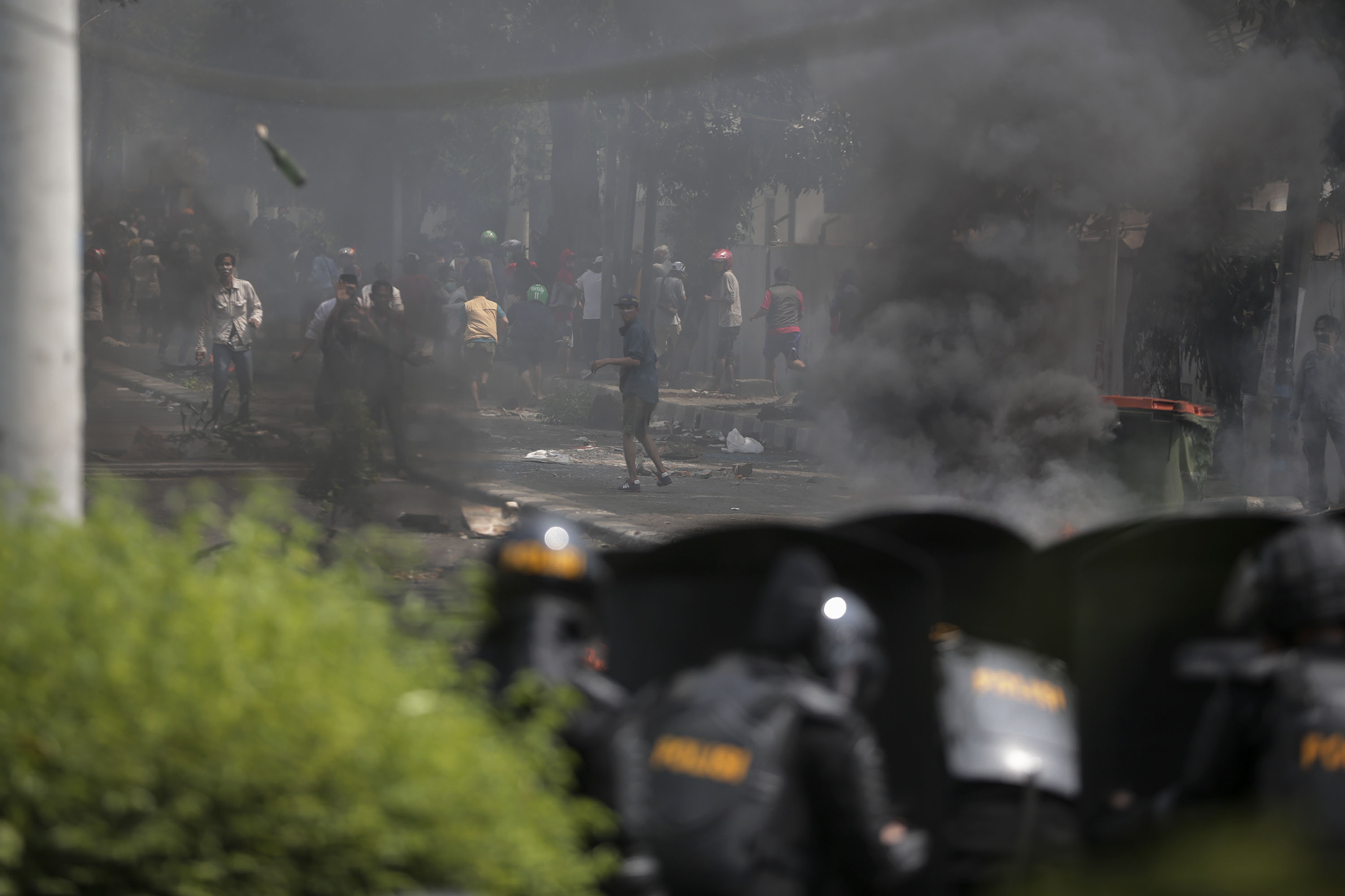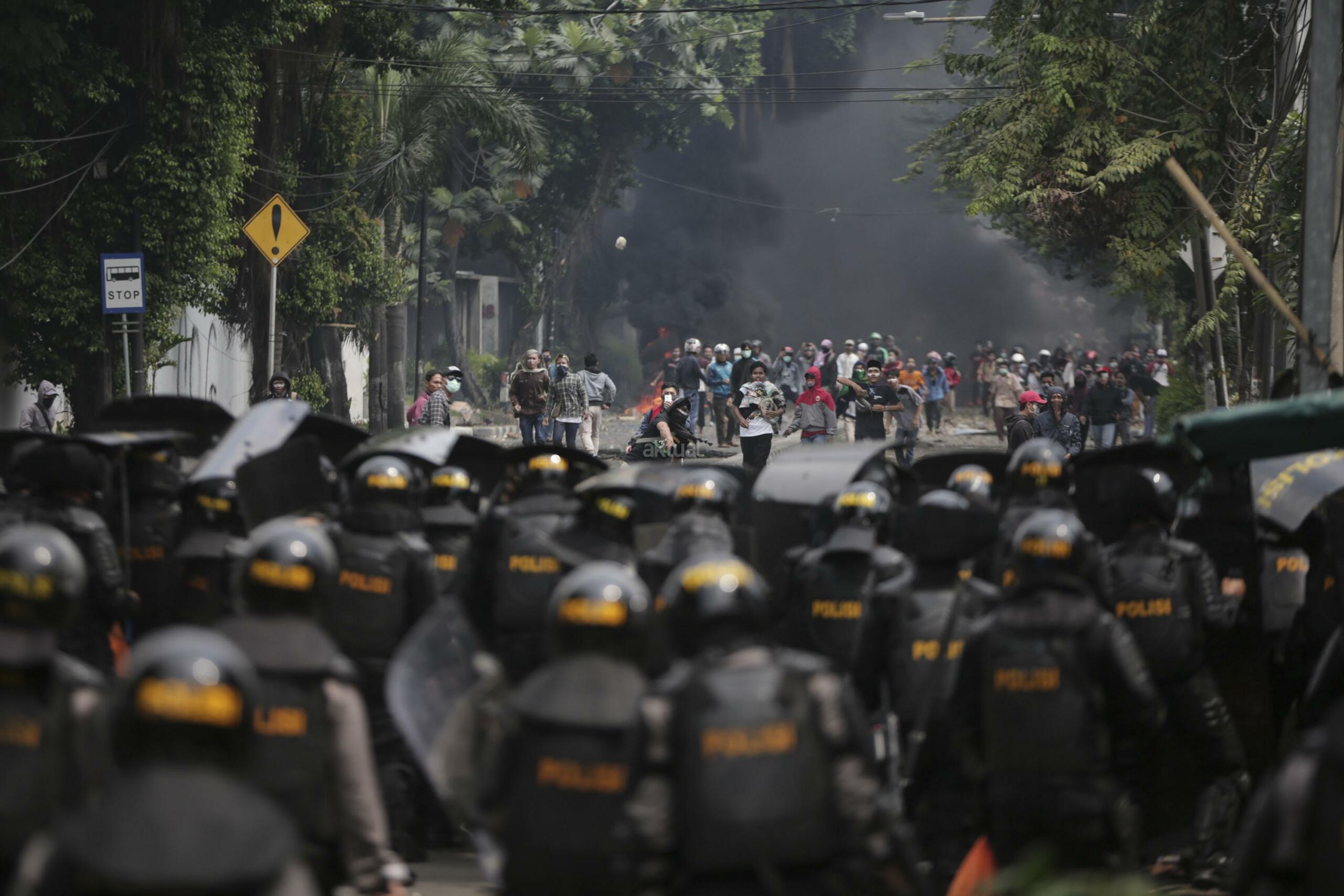Suasana bentrokan antara petugas kepolisian dengan massa aksi di kawasan Petamburan slipi, Tanah Abang, Jakarta, Rabu (22/5/2019). AKTUAL/Tino Oktaviano