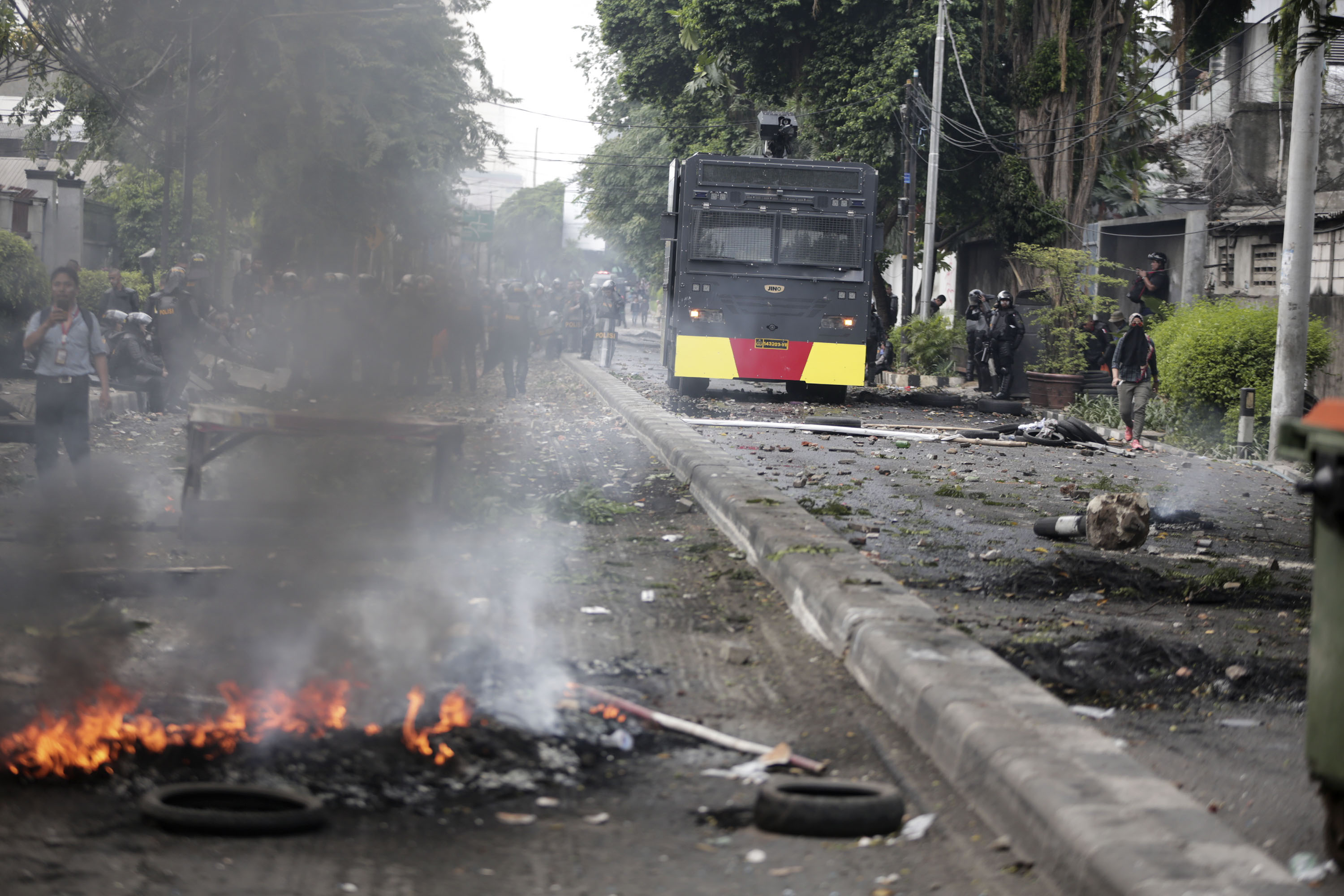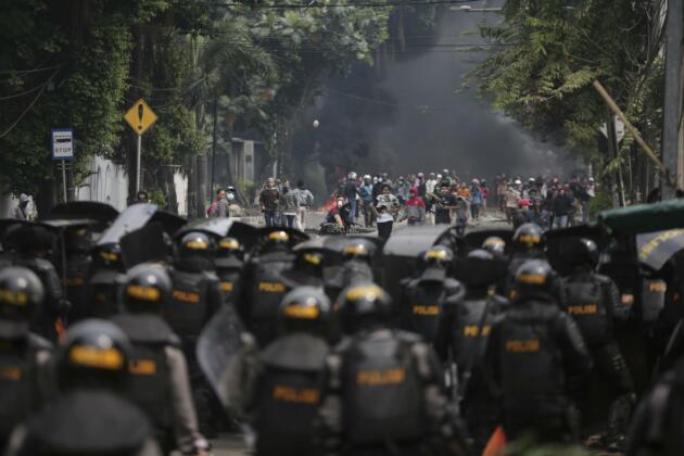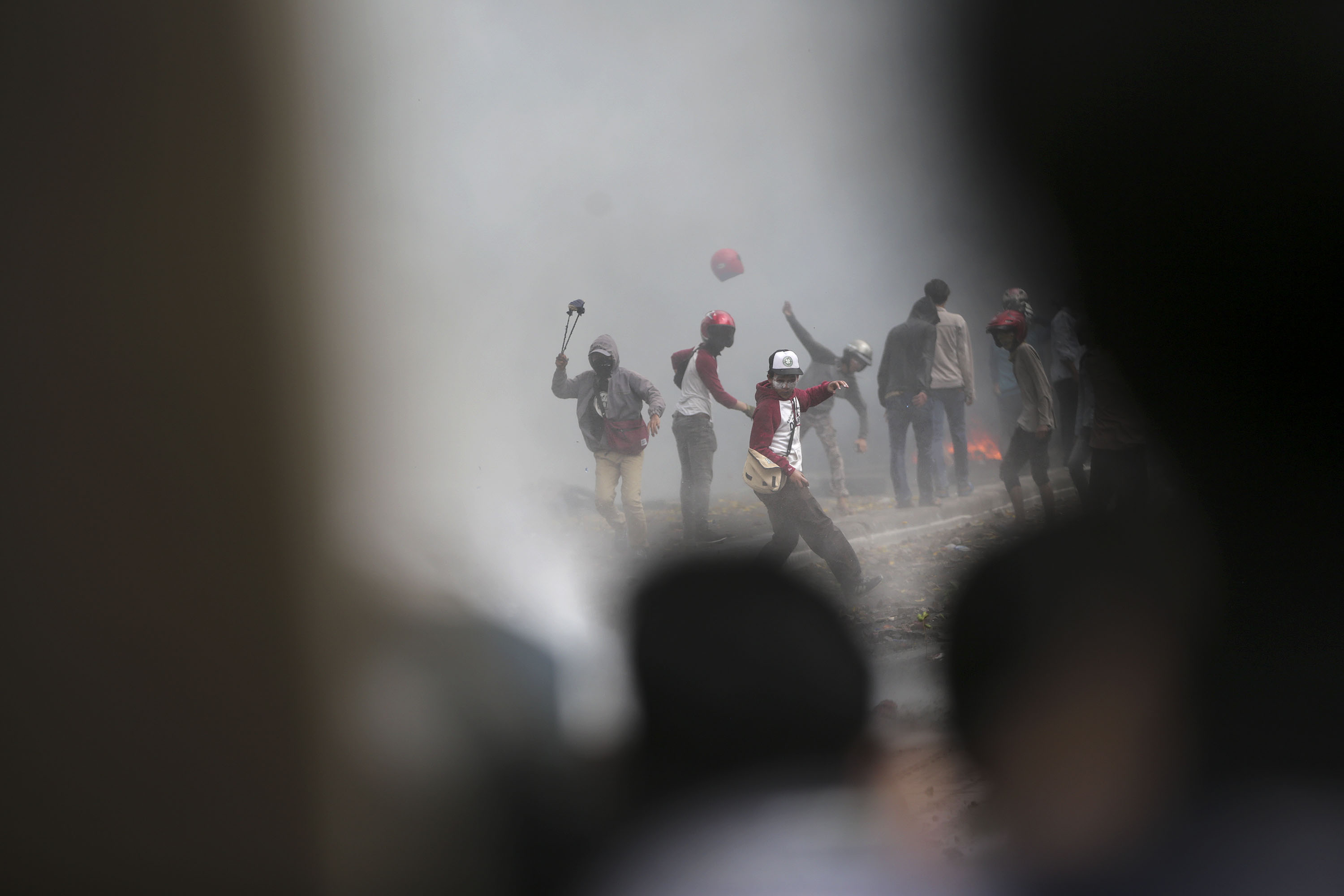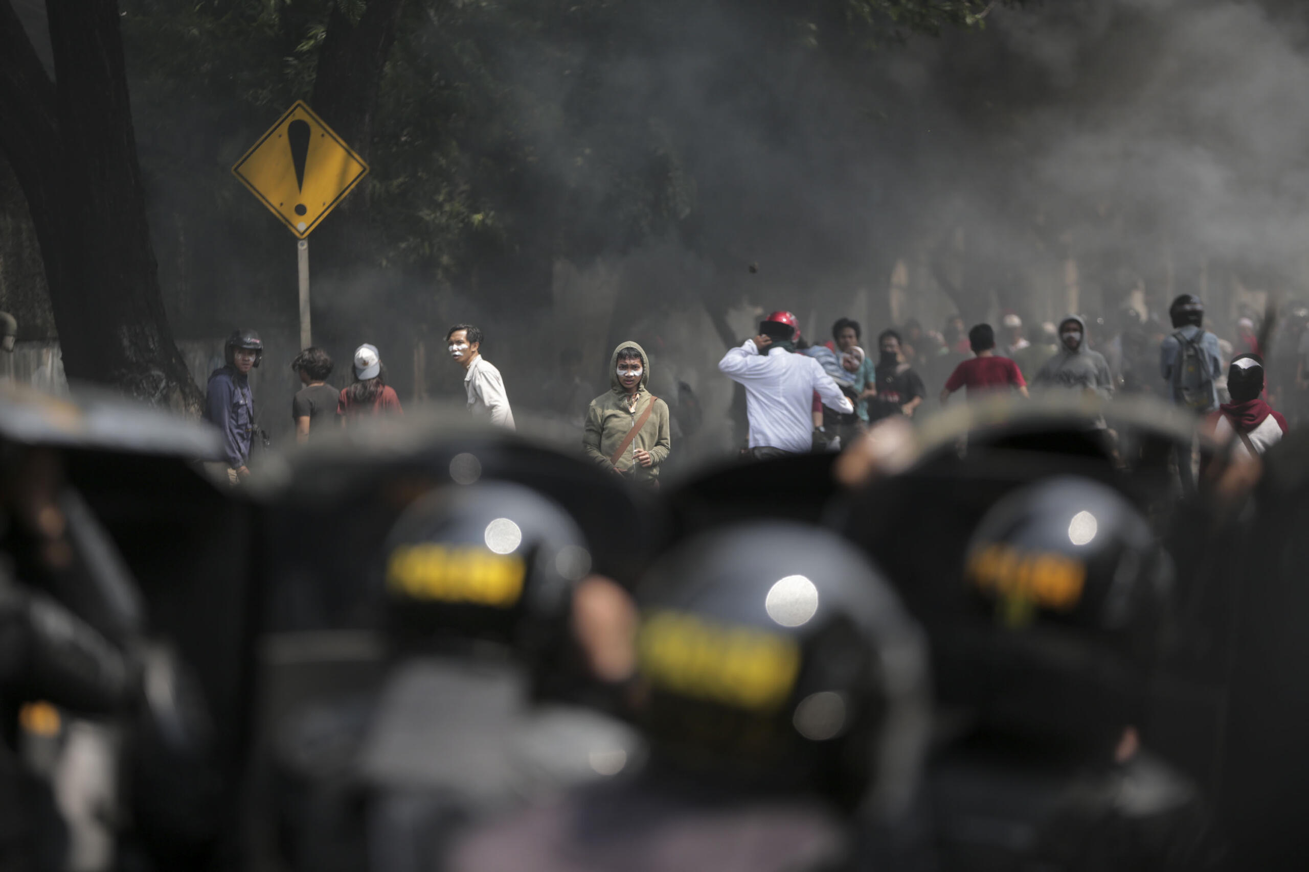 Suasana bentrokan antara petugas kepolisian dengan massa aksi di kawasan Petamburan slipi, Tanah Abang, Jakarta, Rabu (22/5/2019). AKTUAL/Tino Oktaviano