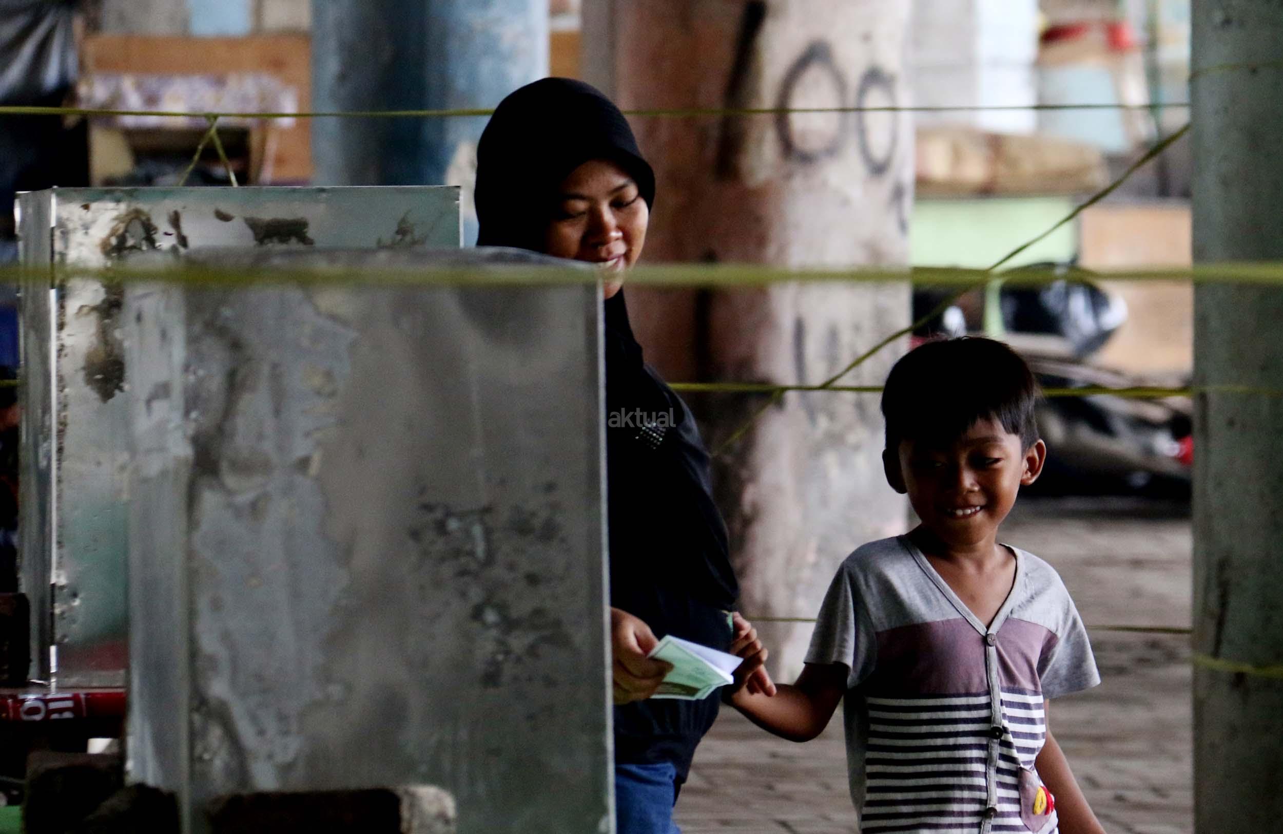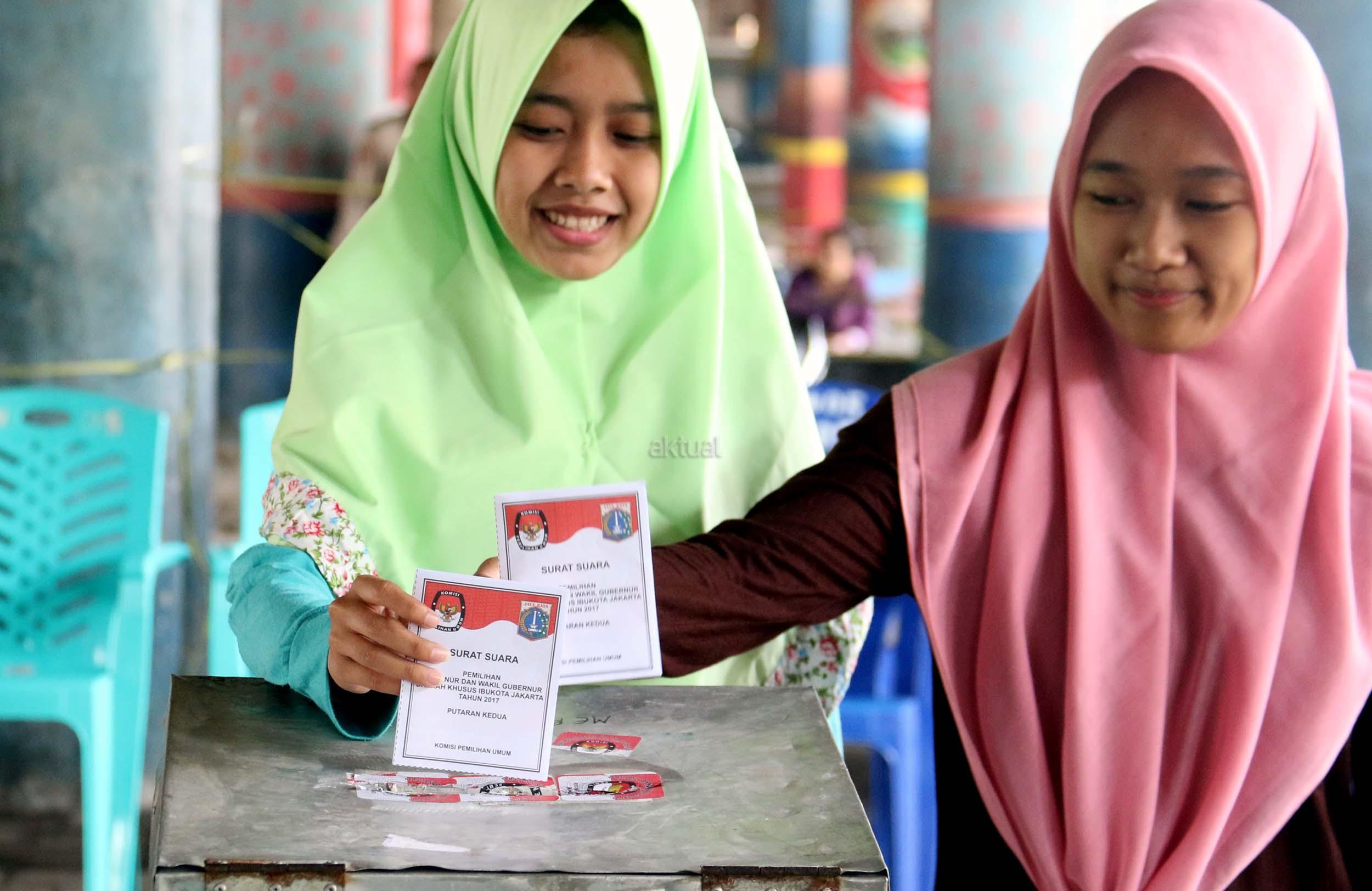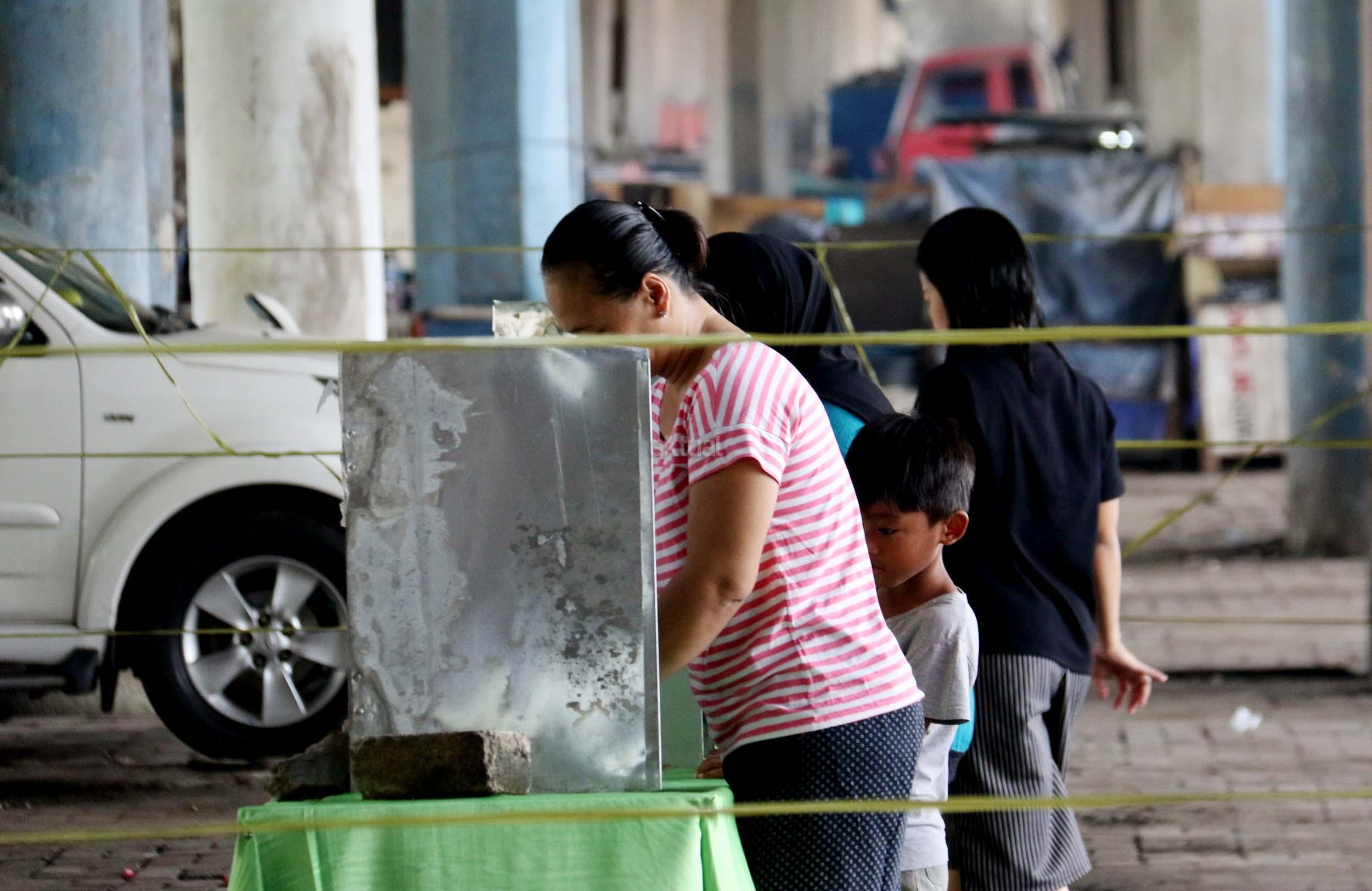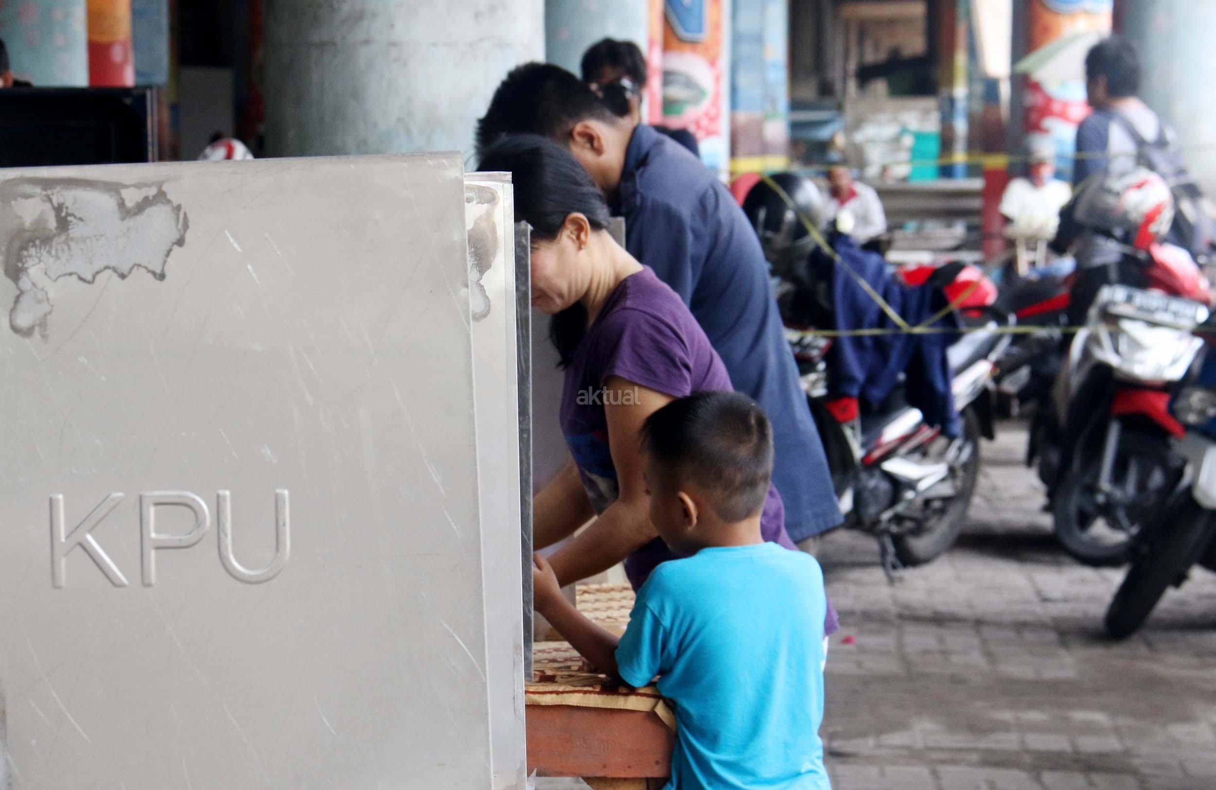 Warga mencoblos pada Pilkada DKI Jakarta Putaran kedua di TPS 20 Kolong Tol Pluit, Penjaringan, Jakarta Utara, Rabu (19/4/2017). TPS 20 memiliki 611 Daftar Pemilih Tetap (Tetap). Pilkada putaran kedua diikuti oleh 2 pasang calon yaitu Ahok-Djarot dan Anies-Sandi. AKTUAL/Munzir