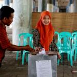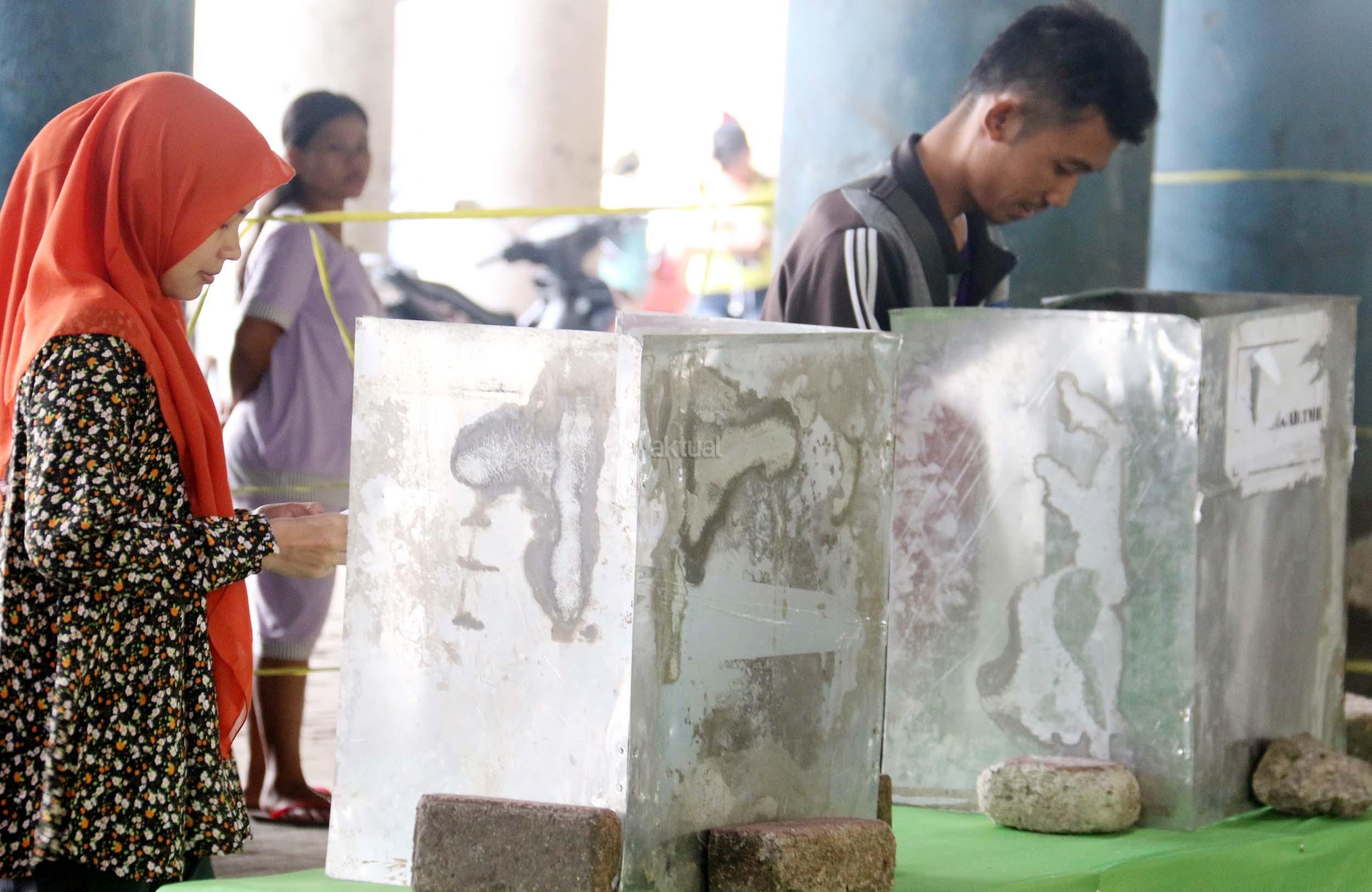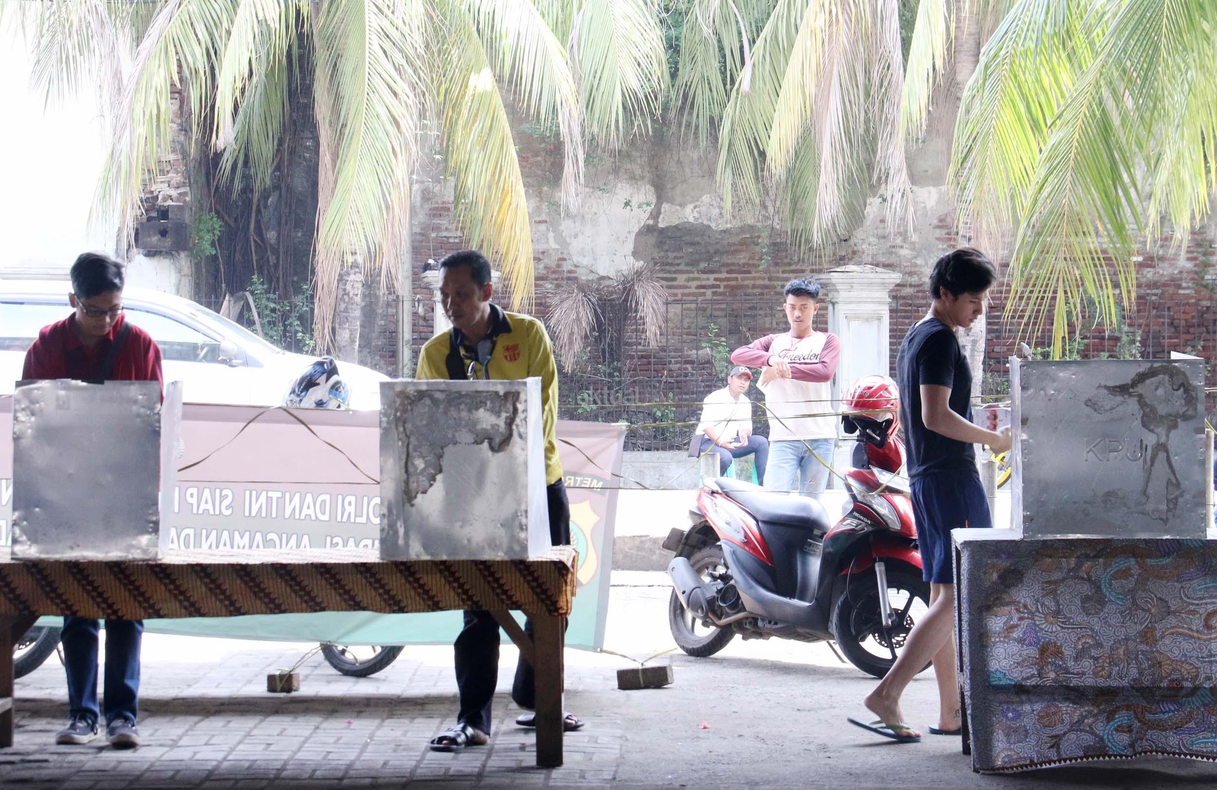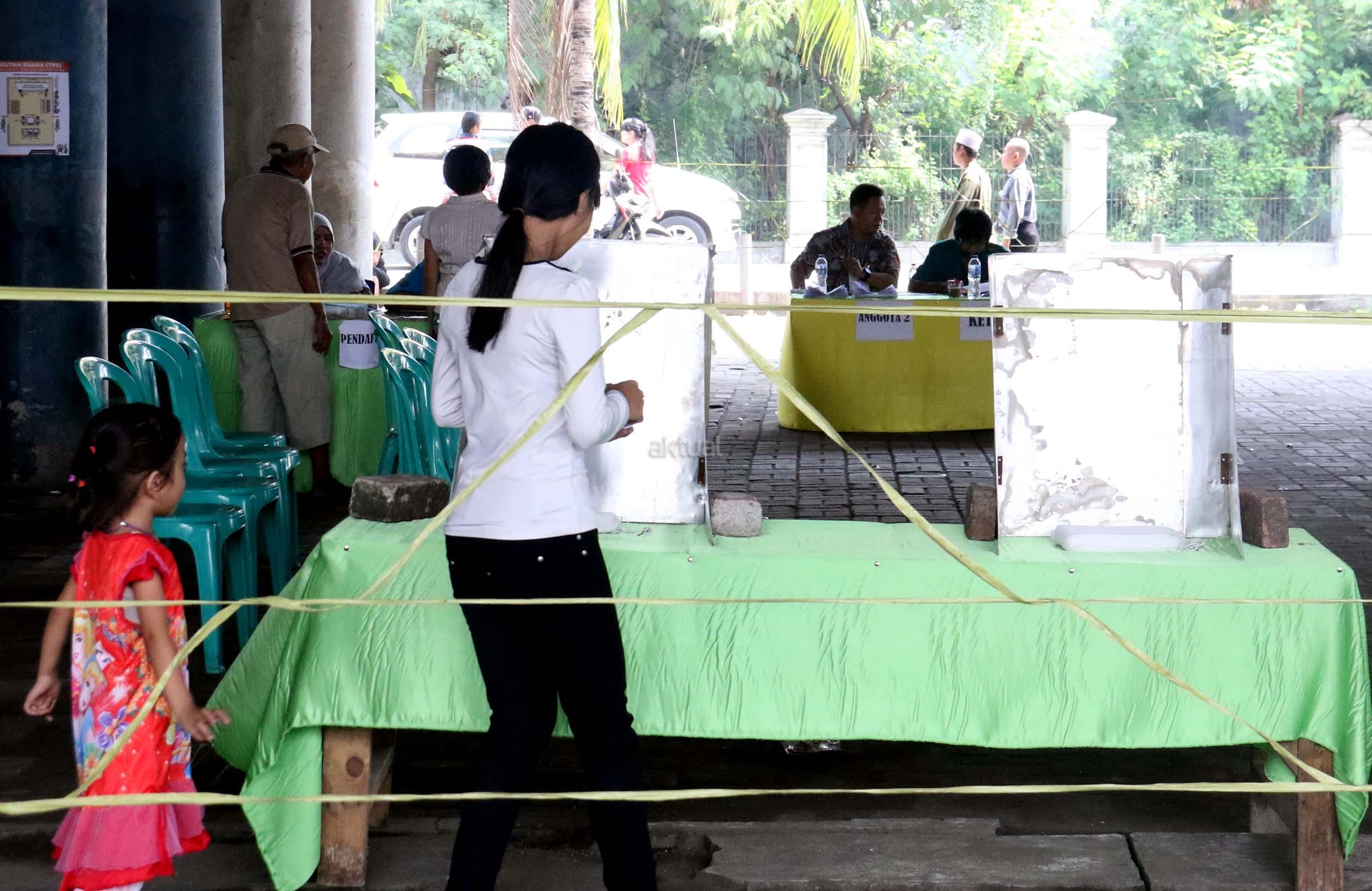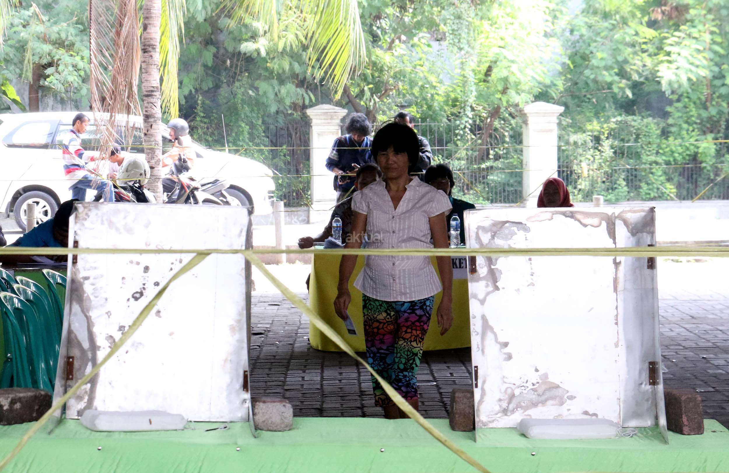 Warga mencoblos pada Pilkada DKI Jakarta Putaran kedua di TPS 20 Kolong Tol Pluit, Penjaringan, Jakarta Utara, Rabu (19/4/2017). TPS 20 memiliki 611 Daftar Pemilih Tetap (Tetap). Pilkada putaran kedua diikuti oleh 2 pasang calon yaitu Ahok-Djarot dan Anies-Sandi. AKTUAL/Munzir