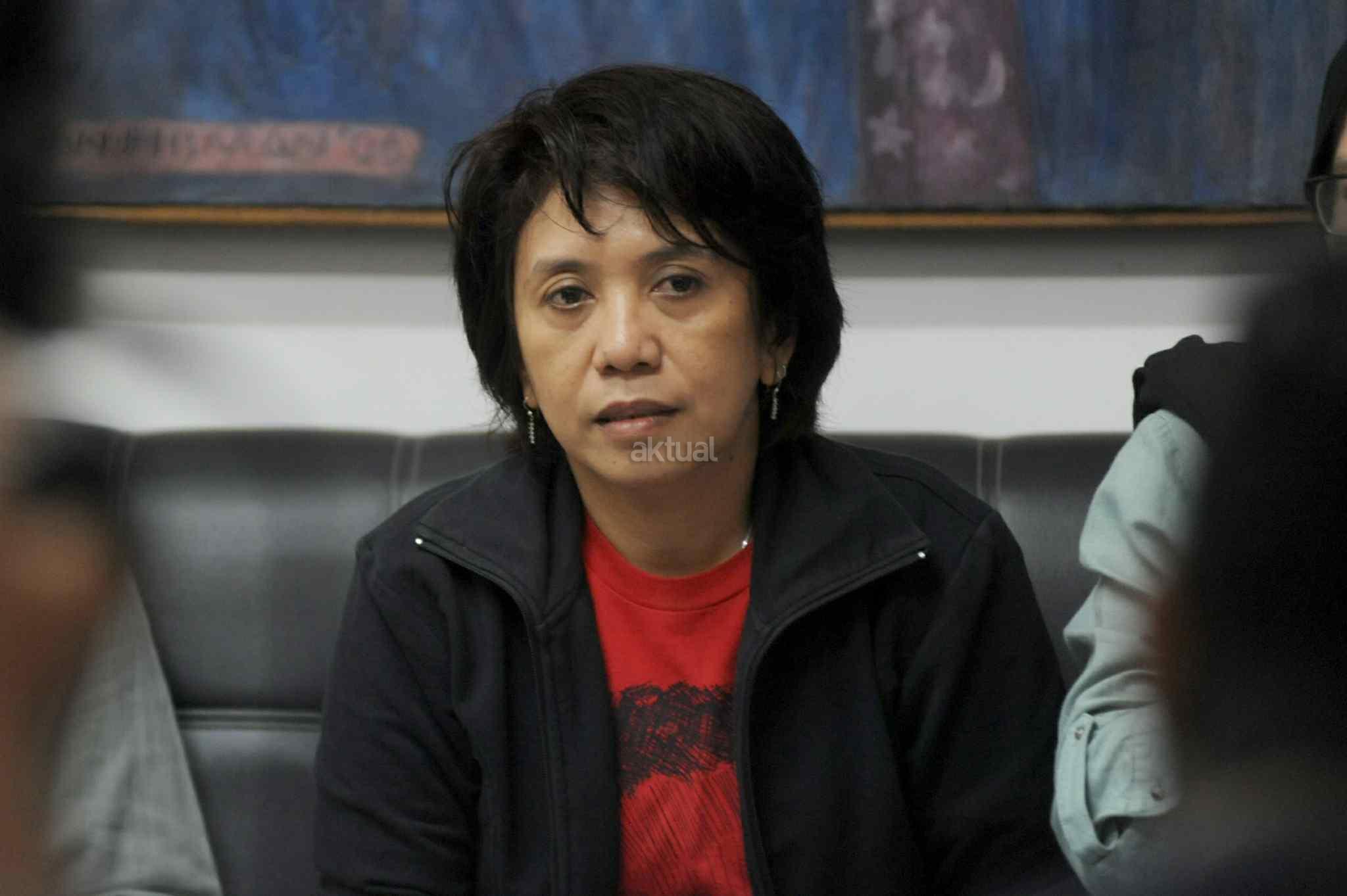 Istri almarhum Munir Said Thalib, Suciwati saat mengultimatum Jokowi agar segera membuka dokumen investigasi Tim Pencari Fakta (TPF) kasus pembunuhan Munir di kantor Komisi untuk Orang Hilang dan Korban Tindak Kekerasan (KontraS), Jakarta, Rabu (19/10). KontraS memenangi sengketa informasi dokumen investigasi TPF kasus pembunuhan Munir yang dinyatakan terbuka untuk publik, namun Kementerian Sekretariat Negara yang seharusnya menyimpan dokumen itu mengaku tak menguasainya alias tak memegangnya. AKTUAL/Tino Oktaviano