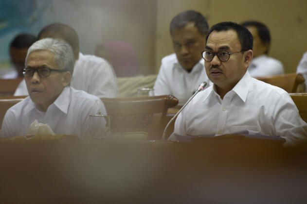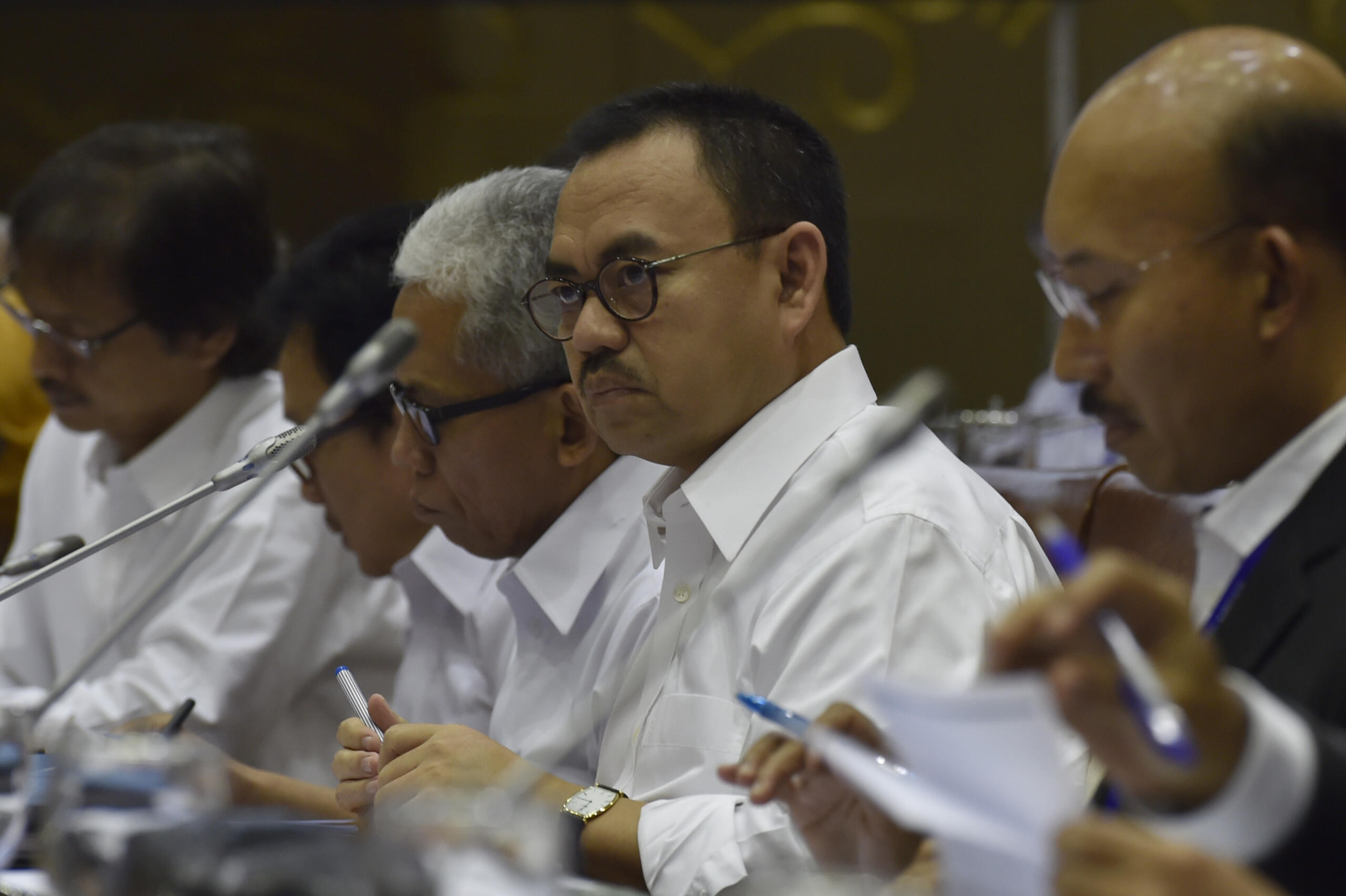 Menteri ESDM Sudirman Said menjawab pertanyaan anggota Komisi VII saat rapat kerja di Komplek Parlemen Senayan, Jakarta, Selasa (14/6). Raker tersebut membahas asumsi dasar RAPBN tahun 2017 dan rencana pencabutan subsidi listrik golongan 900 volt ampere (VA) mulai 1 Juli mendatang. ANTARA FOTO/Puspa Perwitasari/ama/16
