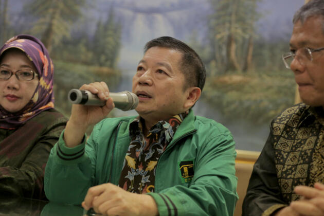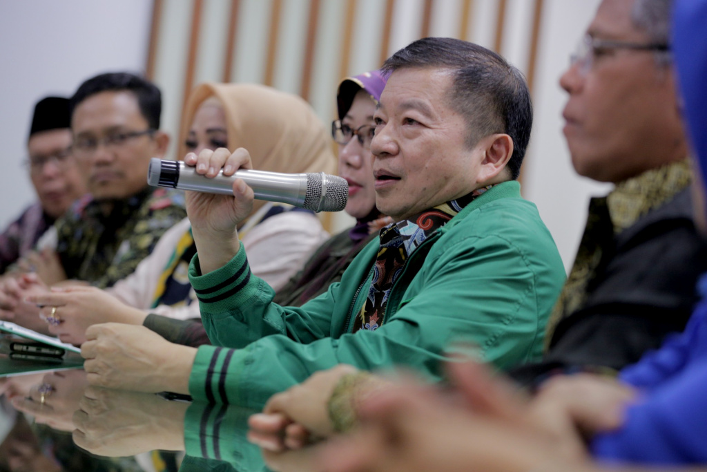 Plt Ketua Umum Partai Persatuan Pembangunan (PPP) Suharso Monoarfa saat memberikan keterangan pers mengenai penunjukan plt ketum di Kantor DPP PPP, Jakarta, Sabtu (16/3). Suharso Monoarfa ditunjuk sebagai Plt Ketua Umum PPP menggantikan Romahurmuziy yang diberhentikan dari jabatannya. AKTUAL/Tino Oktaviano