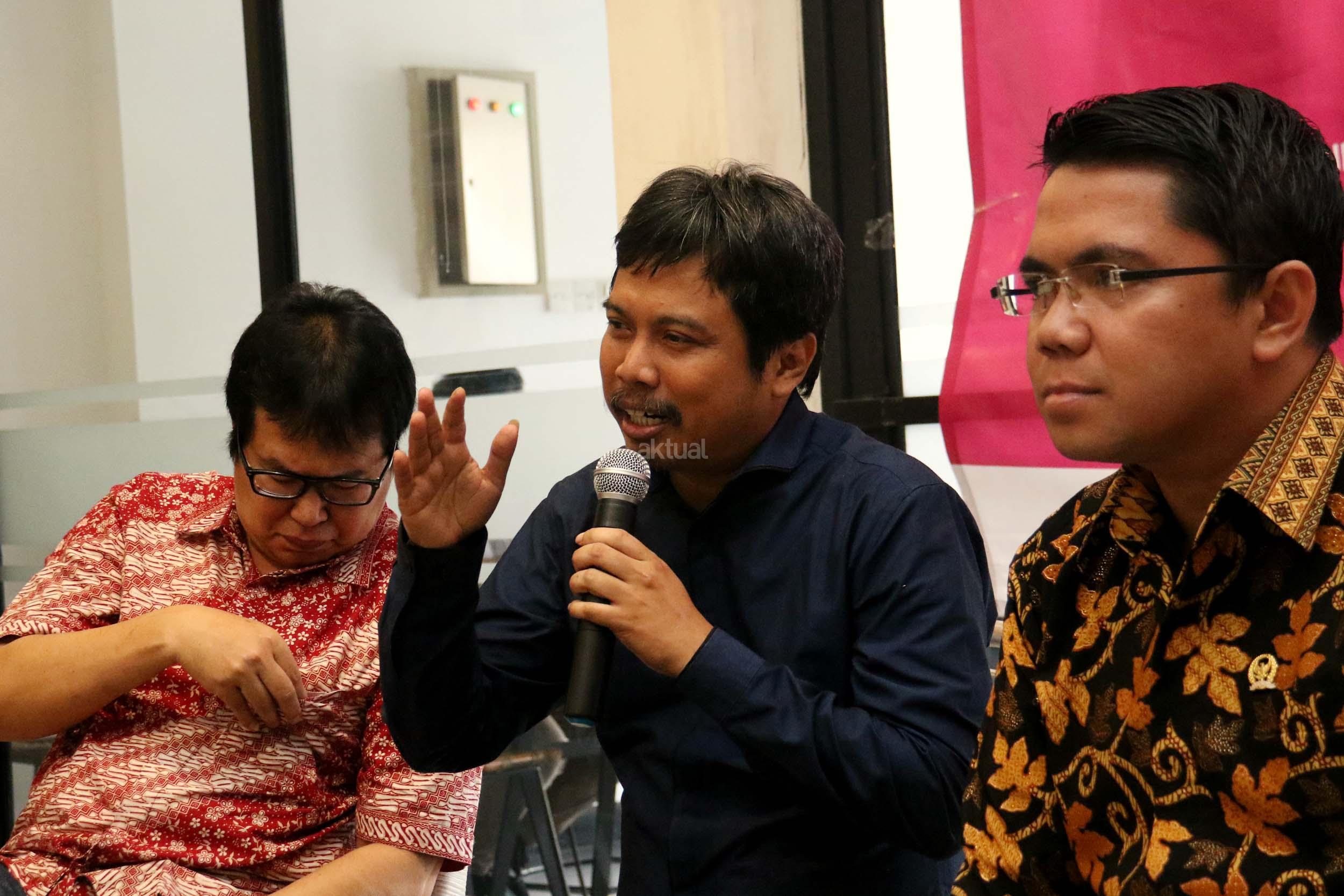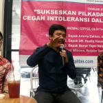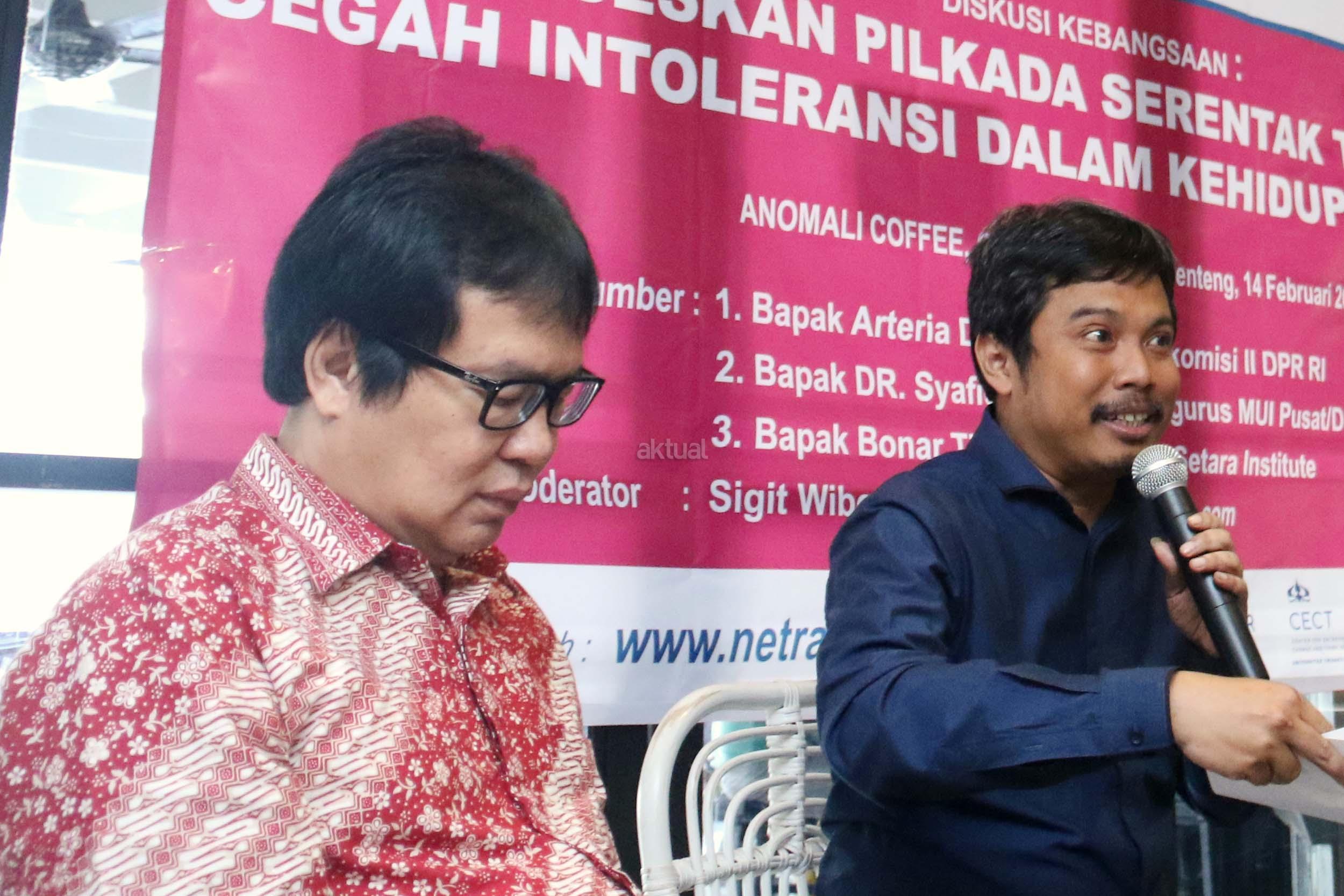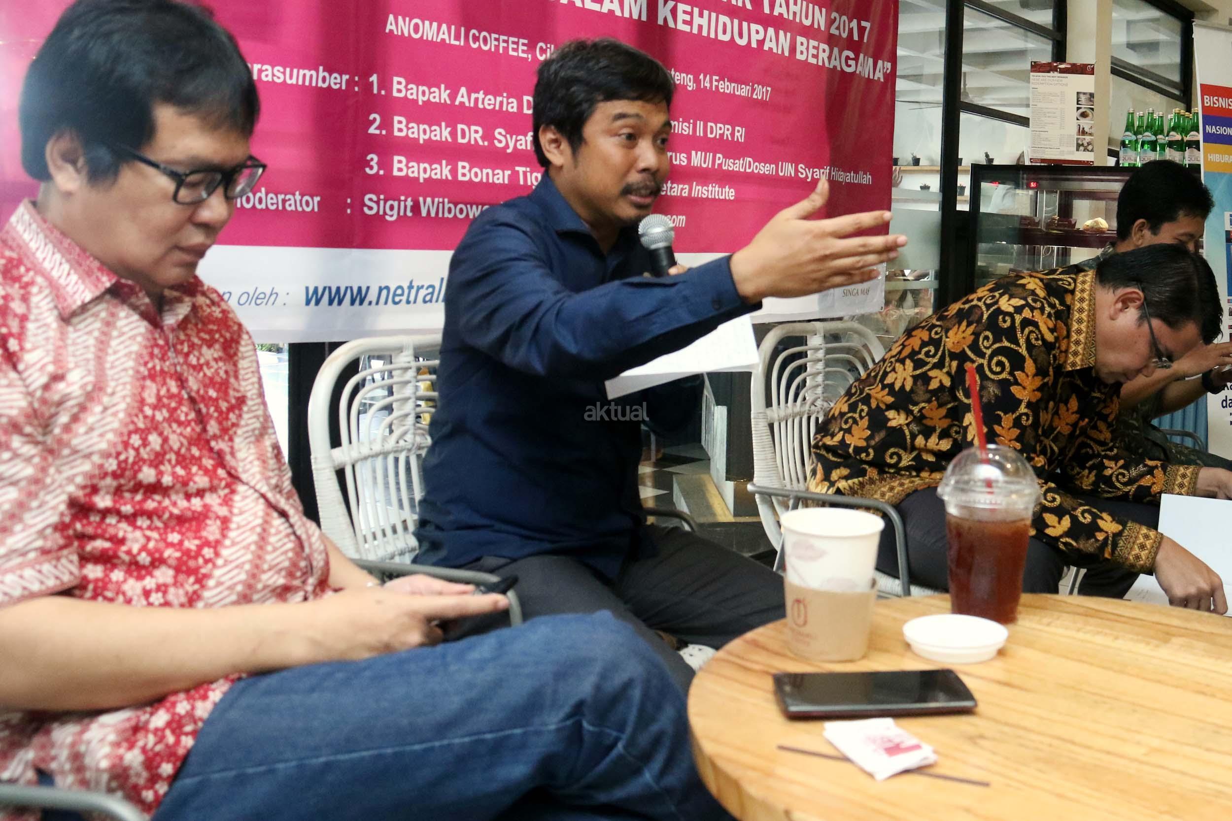 Kiri-kanan ; Setara Institute Bonar Tigor Naipos pos (kiri) , Dosen UIN Syarif Hidayatullaj (tengah), Anggota Komisi II DPR RI Arteria Dahlan (kanan) saat diskusi terkait Pilkada Serentak 2017, di Jakarta, Selasa (14/2/2017). Dalam diskusi yang mengambil tema Sukseskan Pilkada Serentak 2017, Cegah Intoleransi Dalam Kehidupan Beragama. AKTUAL/Munzir