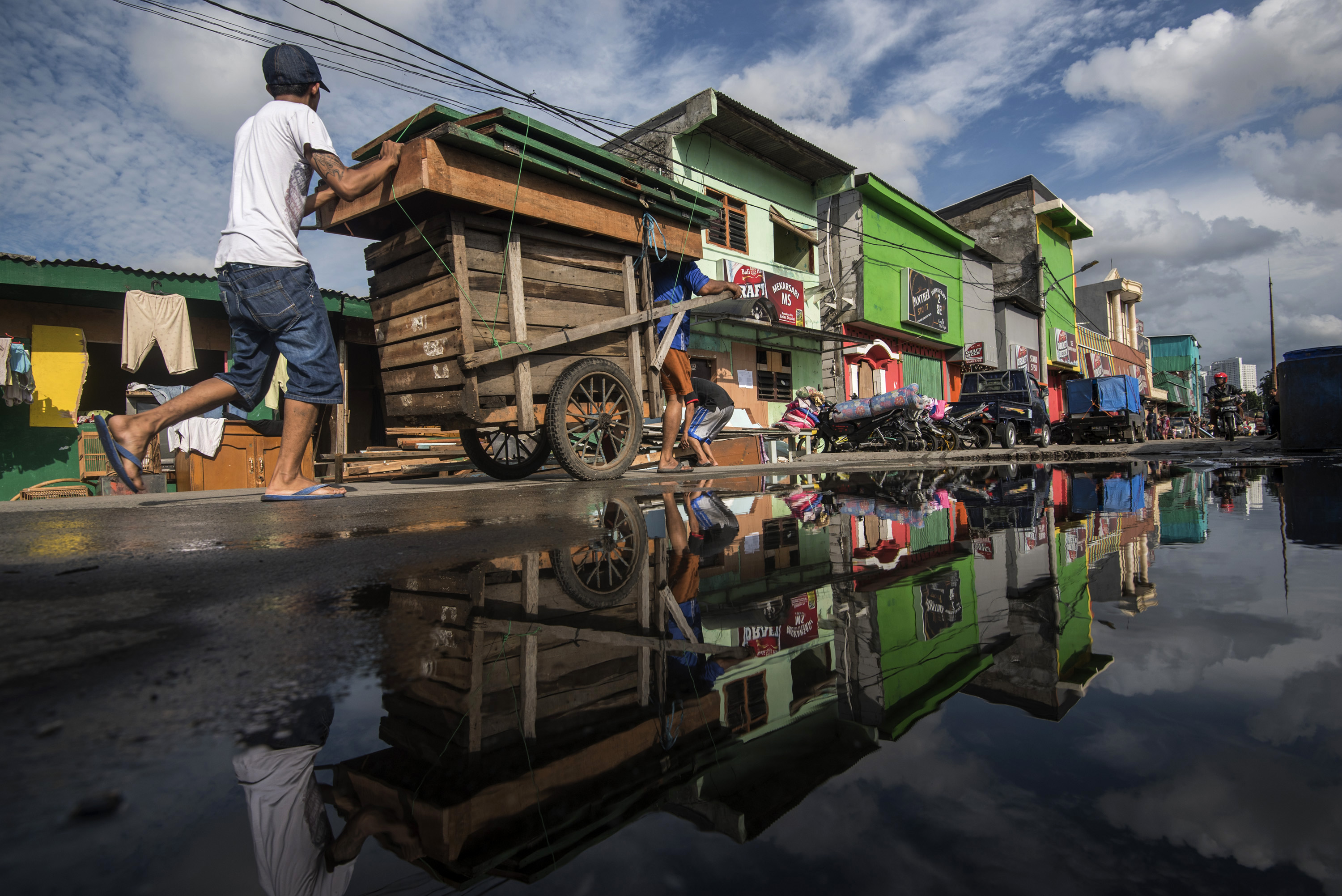 Pekerja mengangkut material hasil pembongkaran bangunan cafe di Kalijodo, Jakarta, Kamis (25/2). Pemerintah Kota Jakarta Barat dan Jakarta Utara telah menggeluarkan surat peringatan kedua (SP2) kepada warga Kalijodo untuk segera mengosongkan dan meninggalkan kawasan itu dalam waktu tiga hari ke depan. ANTARA FOTO/Sigid Kurniawan/foc/16.