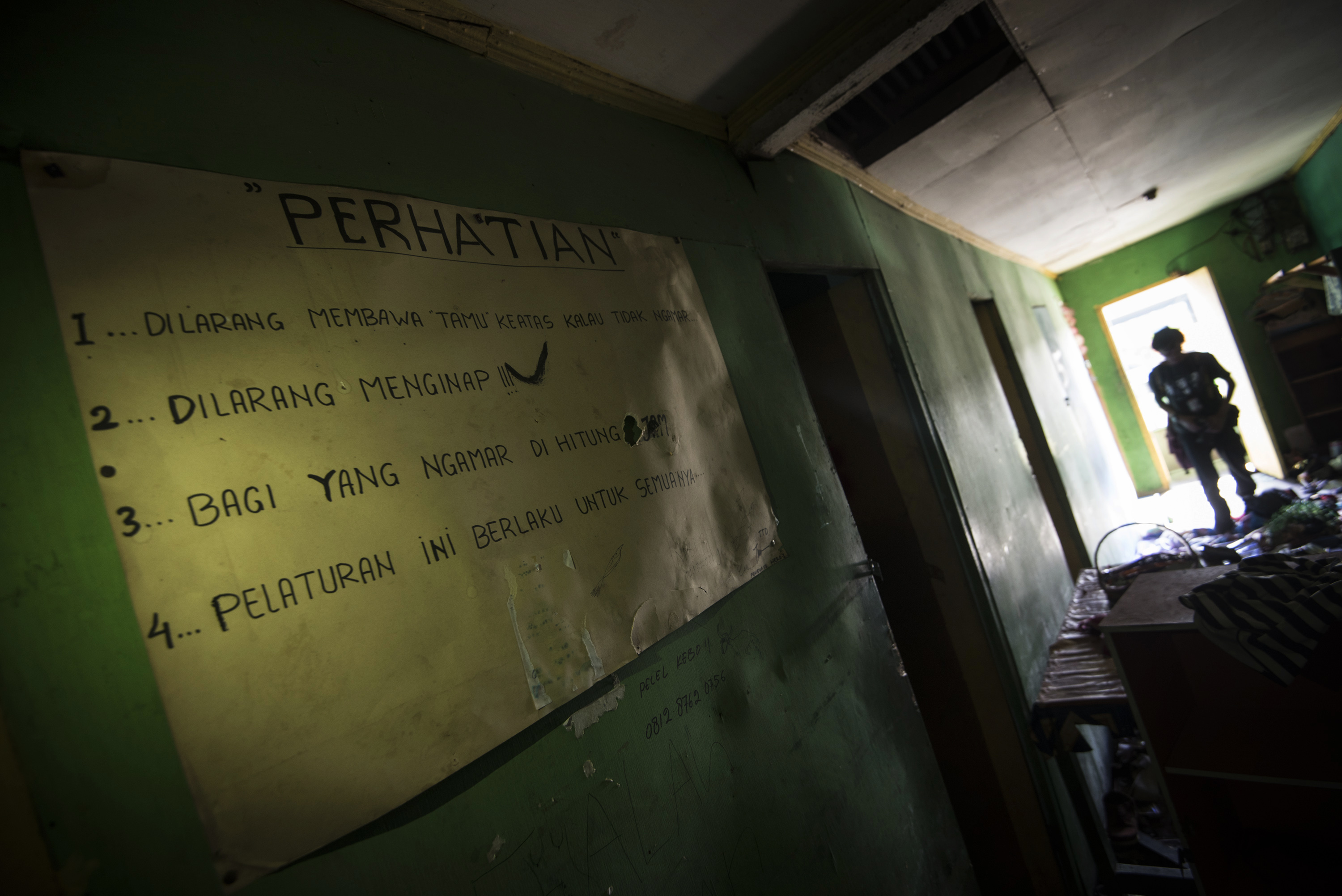 Warga mengecek salah satu bangunan cafe di Kalijodo, Jakarta, Kamis (25/2). Pemerintah Kota Jakarta Barat dan Jakarta Utara telah menggeluarkan surat peringatan kedua (SP2) kepada warga Kalijodo untuk segera mengosongkan dan meninggalkan kawasan itu dalam waktu tiga hari ke depan. ANTARA FOTO/Sigid Kurniawan/foc/16.
