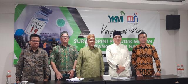 Jakarta, aktual.com – Yayasan Konsumen Muslim Indonesia (YKMI) dan Media Survei Indonesia (MSI) menyelenggarakan konferensi pers terkait survei terhadap pemudik muslim tentang penggunaan vaksin halal di Tebet, Jakarta, Jumat (13/5) kemarin. Hadir pula dalam konferensi tersebut, Sekretaris Jendral Majelis Ulama Indonesia (MUI) Amirsyah Tambunan dan sejumlah tokoh lainnya.