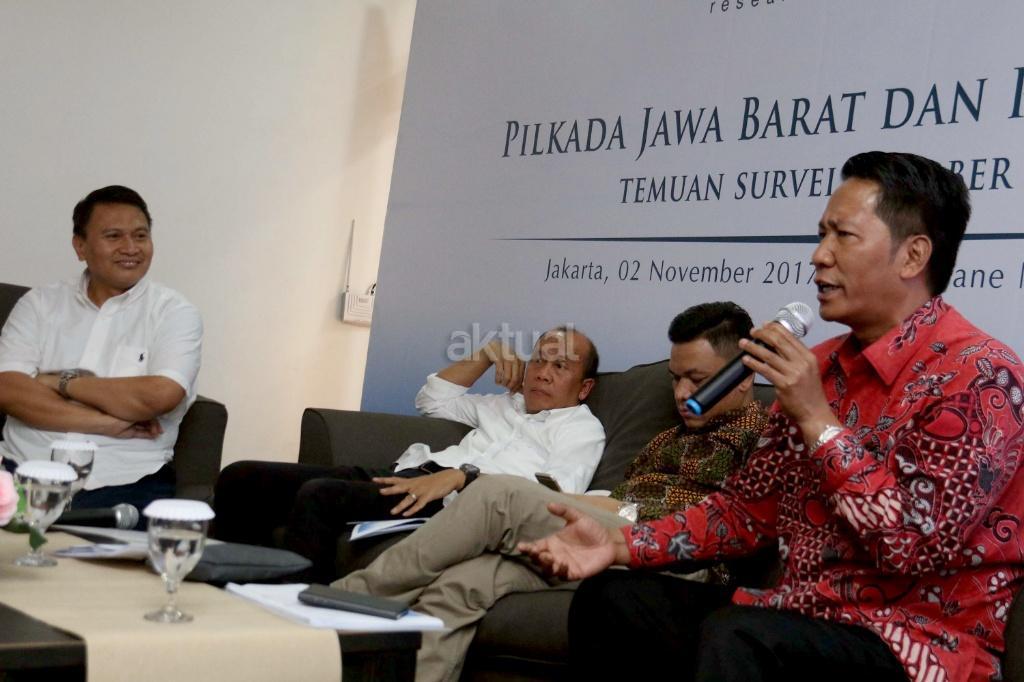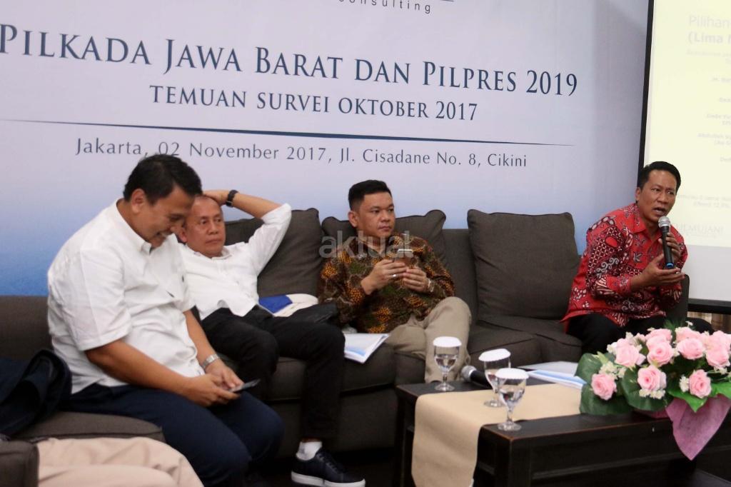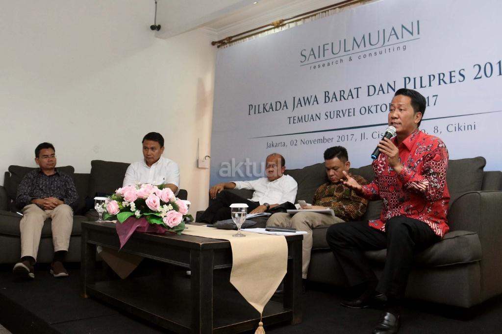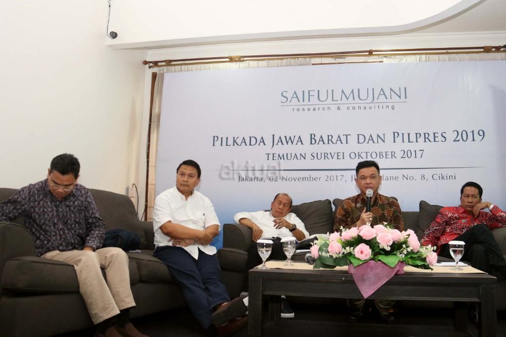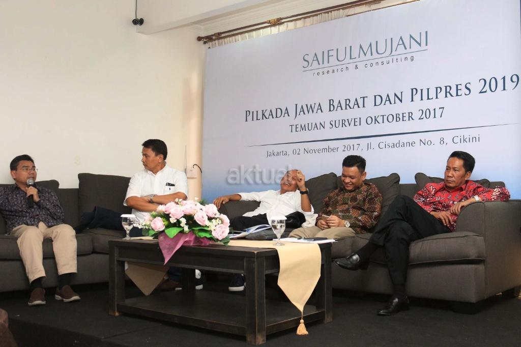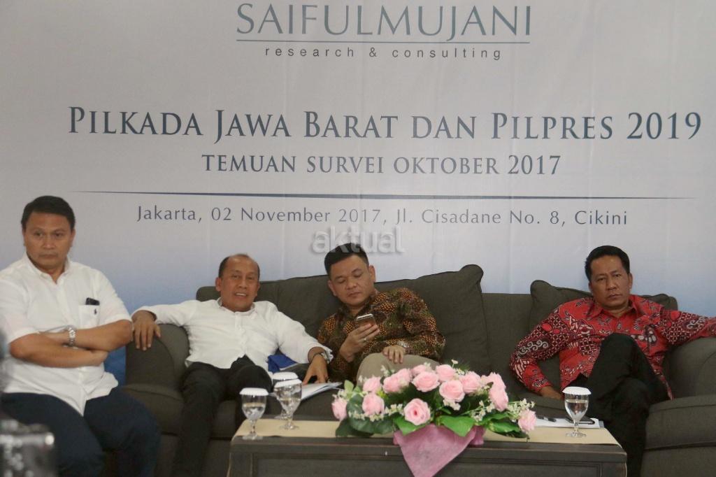Kanan-kiri ; Peneliti Senior SMRC Djayadi Hanan, Politisi PKS Mardani Ali Sera, Ketua DPW Partai Nasdem Jabar Saan Mustopa, Politi Partai Golkar Ace Hasan Syadzili, Politi Partai Gerindra Supratman Andi Agtas saat menjadi pembicara hasil rilis survei SMRC di Jakarta, Kamis (2/11/2017). Dalam rilis hasil temuan survei Oktober 2017 SMRC dalam tema "Pilkada Jawa Barat dan Pilpres 2019". AKTUAL/Munzir
