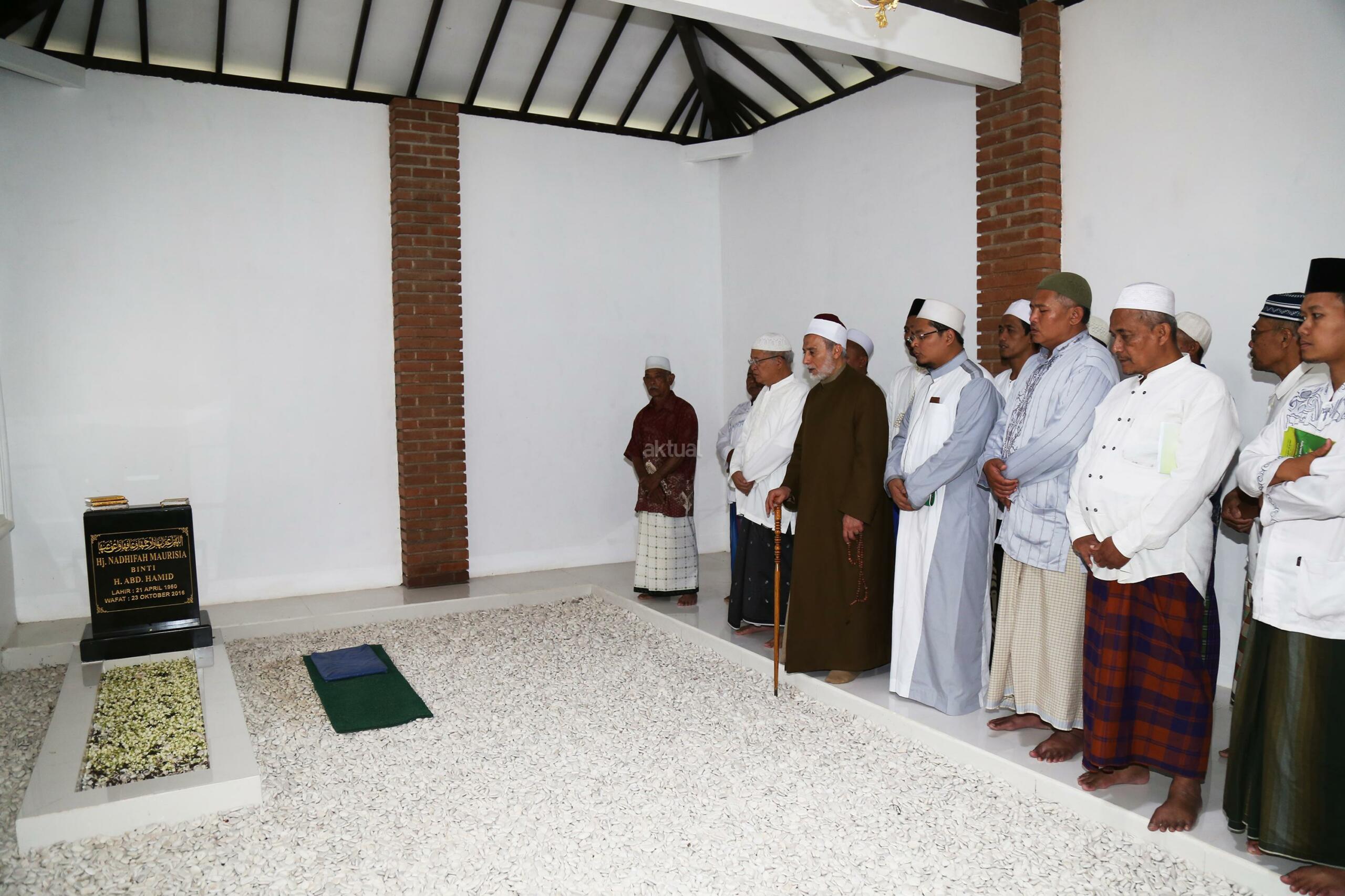 Pengasuh Masjid dan Madrasah Arraudhah KH Asyari Tafsir (kedua kiri) Maulana Syekh Yusri Rusydi Jabr Al Hasani dan Khodimu Zawiyah Arraudhah Ihsan Foundation, Al Akh Muhammad Danial Nafis (keempat kiri) saat ziarah makam Almarhumah Hj Nadhifah Maurisia sebelum mengikuti acara Majelis Ijazah Shalawat, Tahlil dan HaflahMaulid Akbar Nabi Muhammad SAW di Masjid Arraudhah, Desa Tambakasri, Tangkil, Tajinan, Malang, Jawa Timur, Jumat (27/1/2017). Dalam kesempatan tersebut, Syekh Yusri menjelaskan secara rinci Shalawat Yusriah, dimana Shalawat tersebut merupakan ilham yang beliau dapatkan saat melaksanakan ibadah umroh pada tahun 1432 H. AKTUAL/Tino Oktaviano
