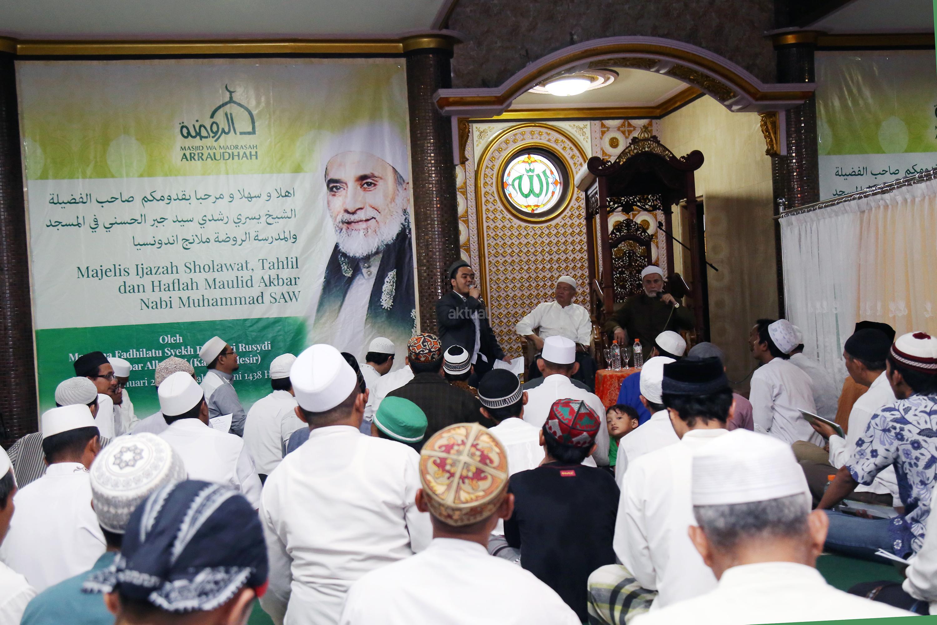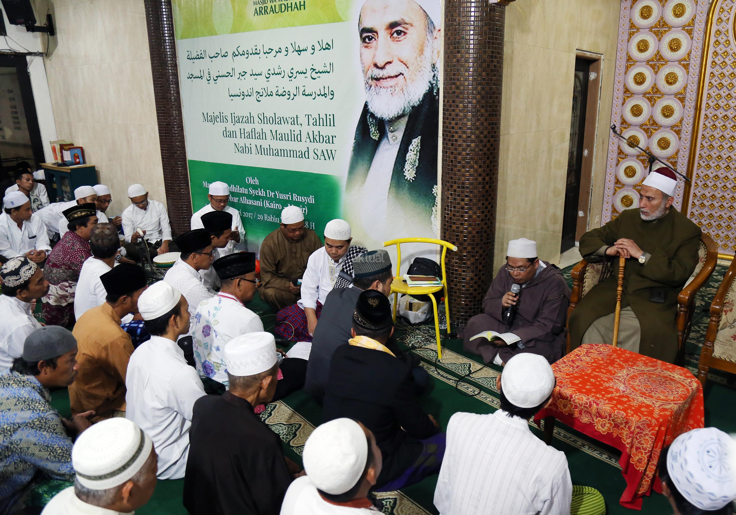 Syekh Yusri Rusydi Jabr Al Hasani Hadiri Maulid Nabi Muhammad SAW Di Masjid dan Madrasah Arraudhah Malang