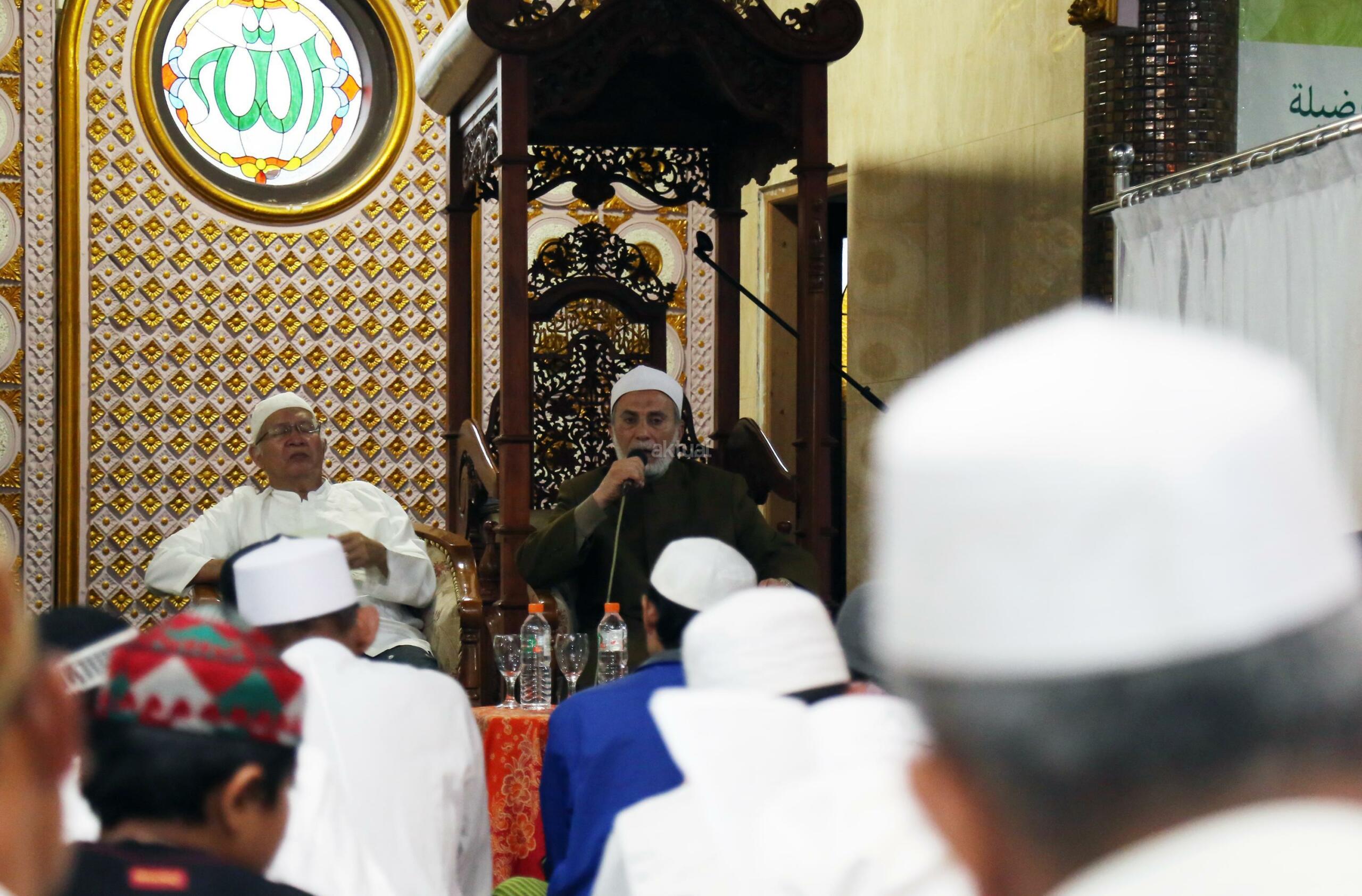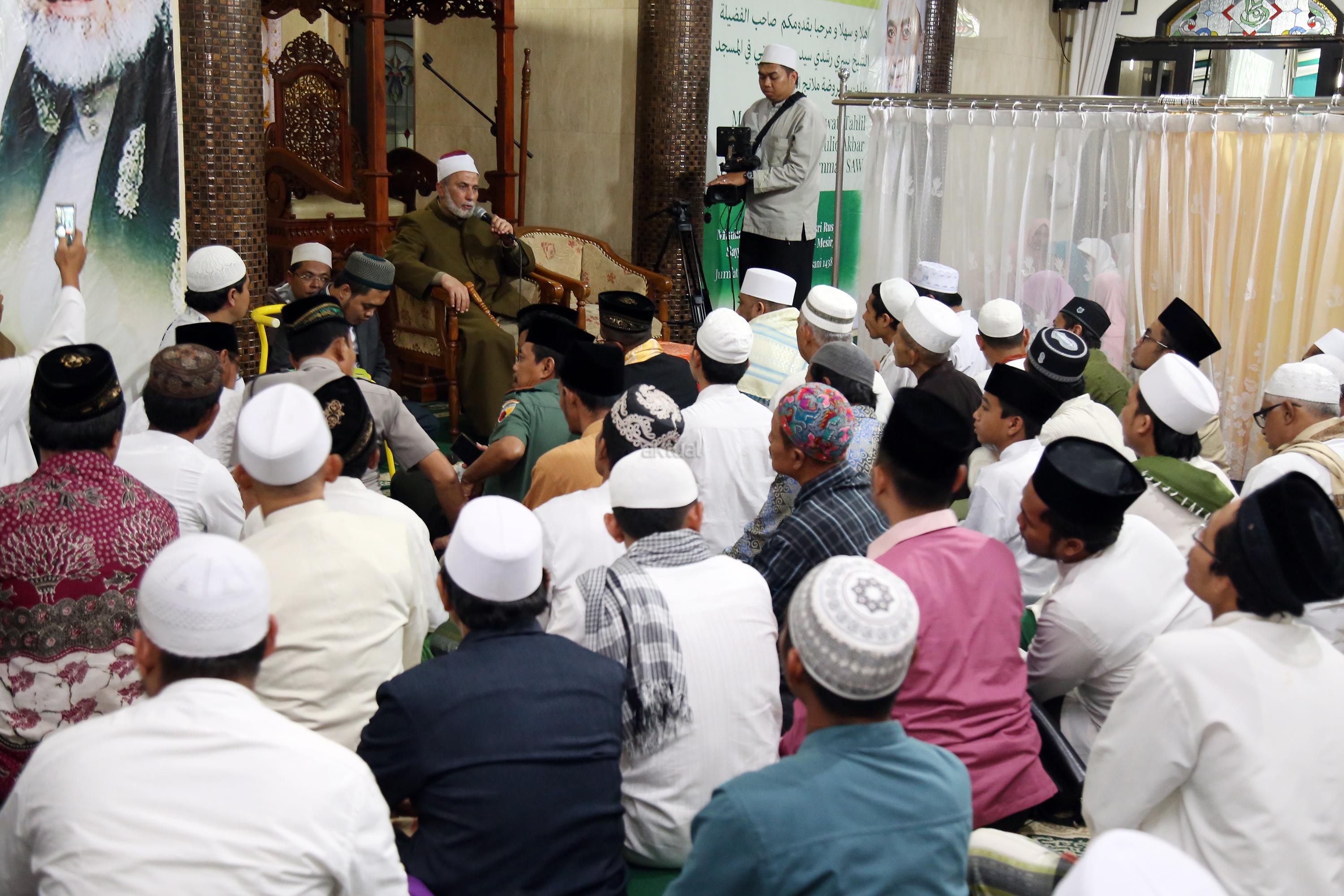 Maulana Syekh Yusri Rusydi Jabr Al Hasani memberikan tauyiah di acara Majelis Ijazah Shalawat, Tahlil dan HaflahMaulid Akbar Nabi Muhammad SAW di Masjid Arraudhah, Desa Tambakasri, Tangkil, Tajinan, Malang, Jawa Timur, Jumat (27/1/2017). Dalam kesempatan tersebut, Syekh Yusri menjelaskan secara rinci Shalawat Yusriah, dimana Shalawat tersebut merupakan ilham yang beliau dapatkan saat melaksanakan ibadah umroh pada tahun 1432 H. AKTUAL/Tino Oktaviano