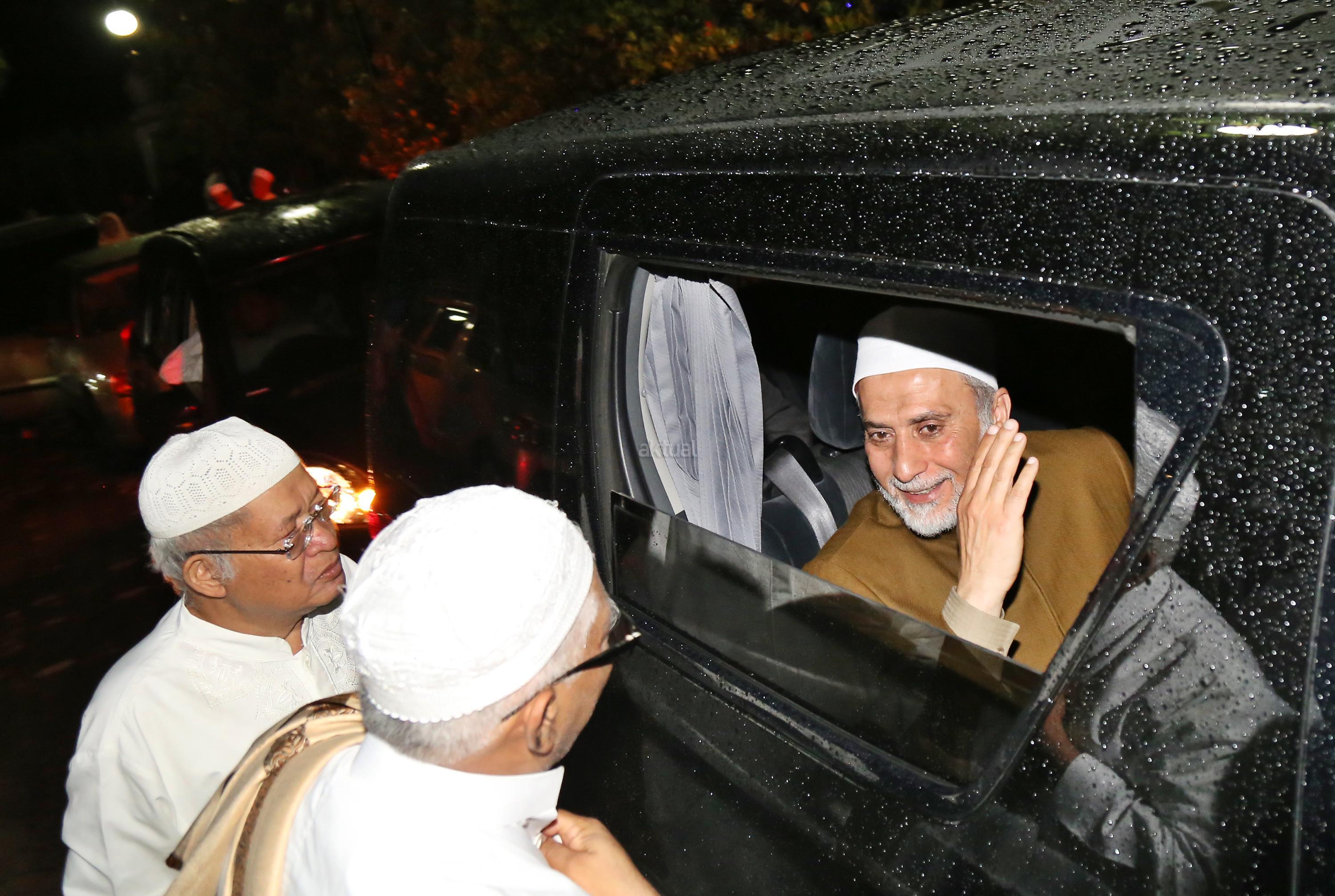 Maulana Syekh Yusri Rusydi Jabr Al Hasani saat akan mengikuti acara Majelis Ijazah Shalawat, Tahlil dan HaflahMaulid Akbar Nabi Muhammad SAW di Masjid Arraudhah, Desa Tambakasri, Tangkil, Tajinan, Malang, Jawa Timur, Jumat (27/1/2017). Dalam kesempatan tersebut, Syekh Yusri menjelaskan secara rinci Shalawat Yusriah, dimana Shalawat tersebut merupakan ilham yang beliau dapatkan saat melaksanakan ibadah umroh pada tahun 1432 H. AKTUAL/Tino Oktaviano