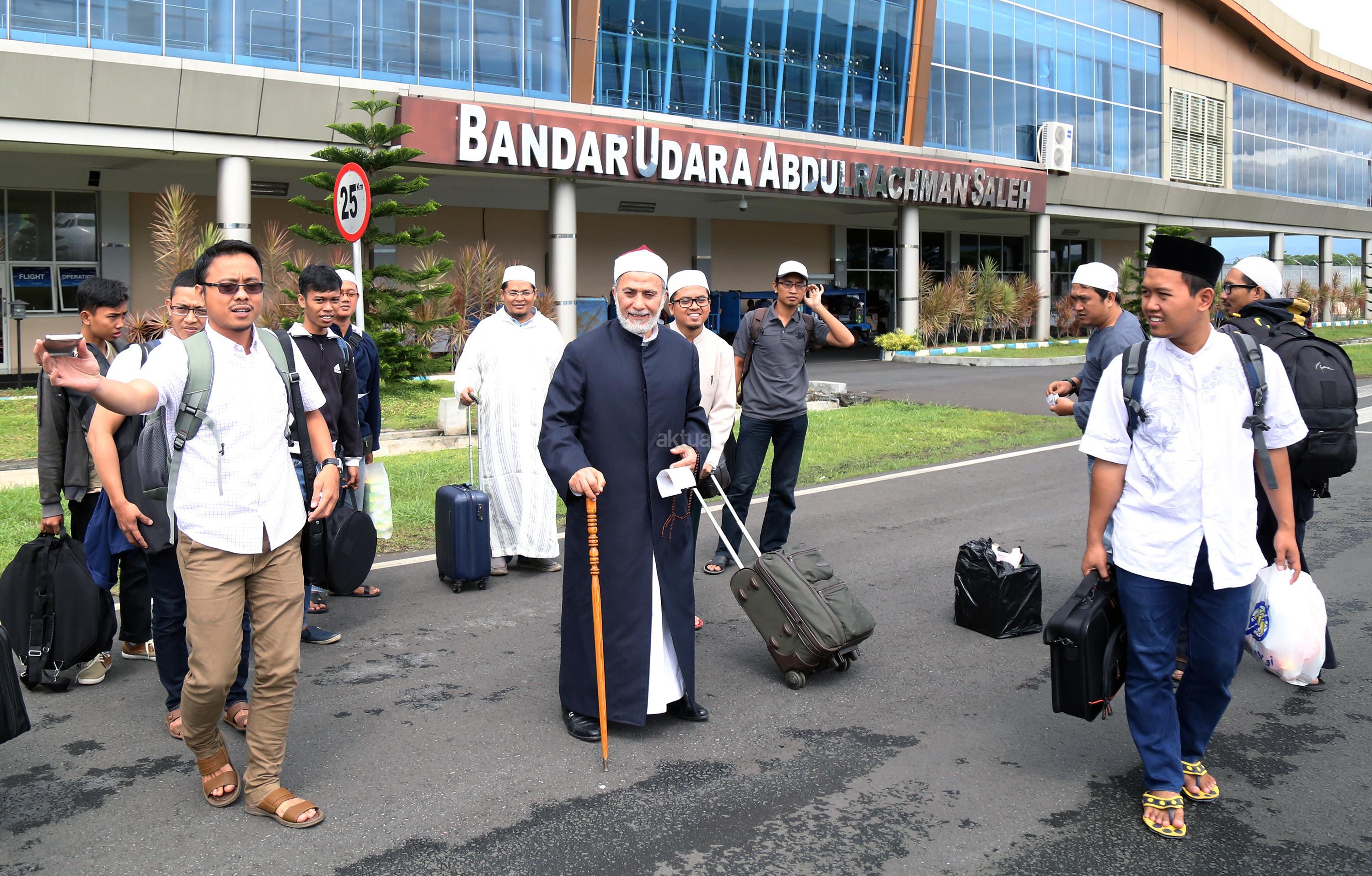 Maulana Syekh Yusri Rusydi Jabr Al Hasani bersama rombongan saat akan menuju Jakarta mengisi acara Maulid Akbar Baginda Nabi Muhammad SAW Zawiyah Arraudhah Insan Foundation di Bandara Abduracham Saleh, Malang, Jawa Timur, Sabtu (28/1/2017). AKTUAL/Tino Oktaviano