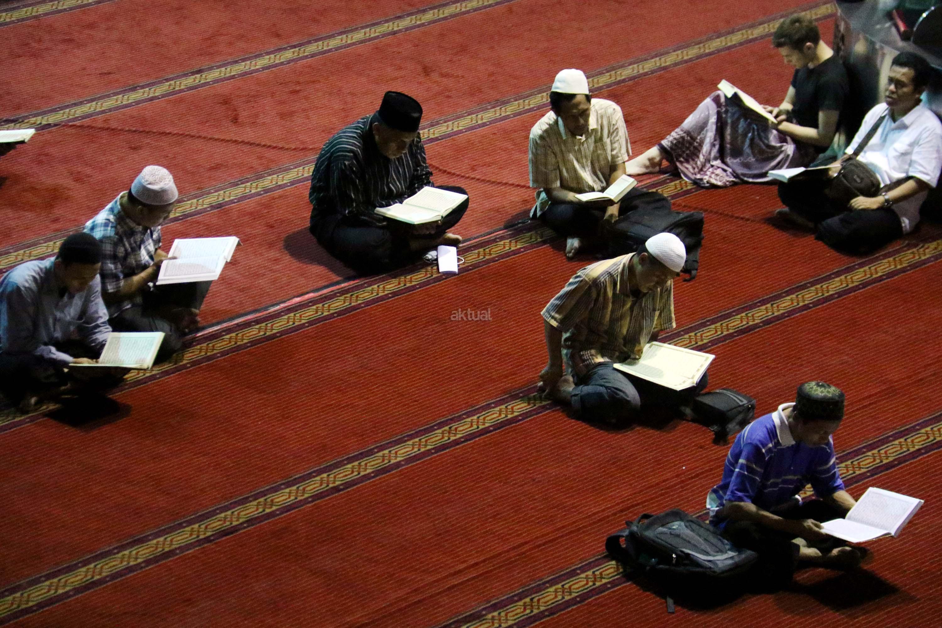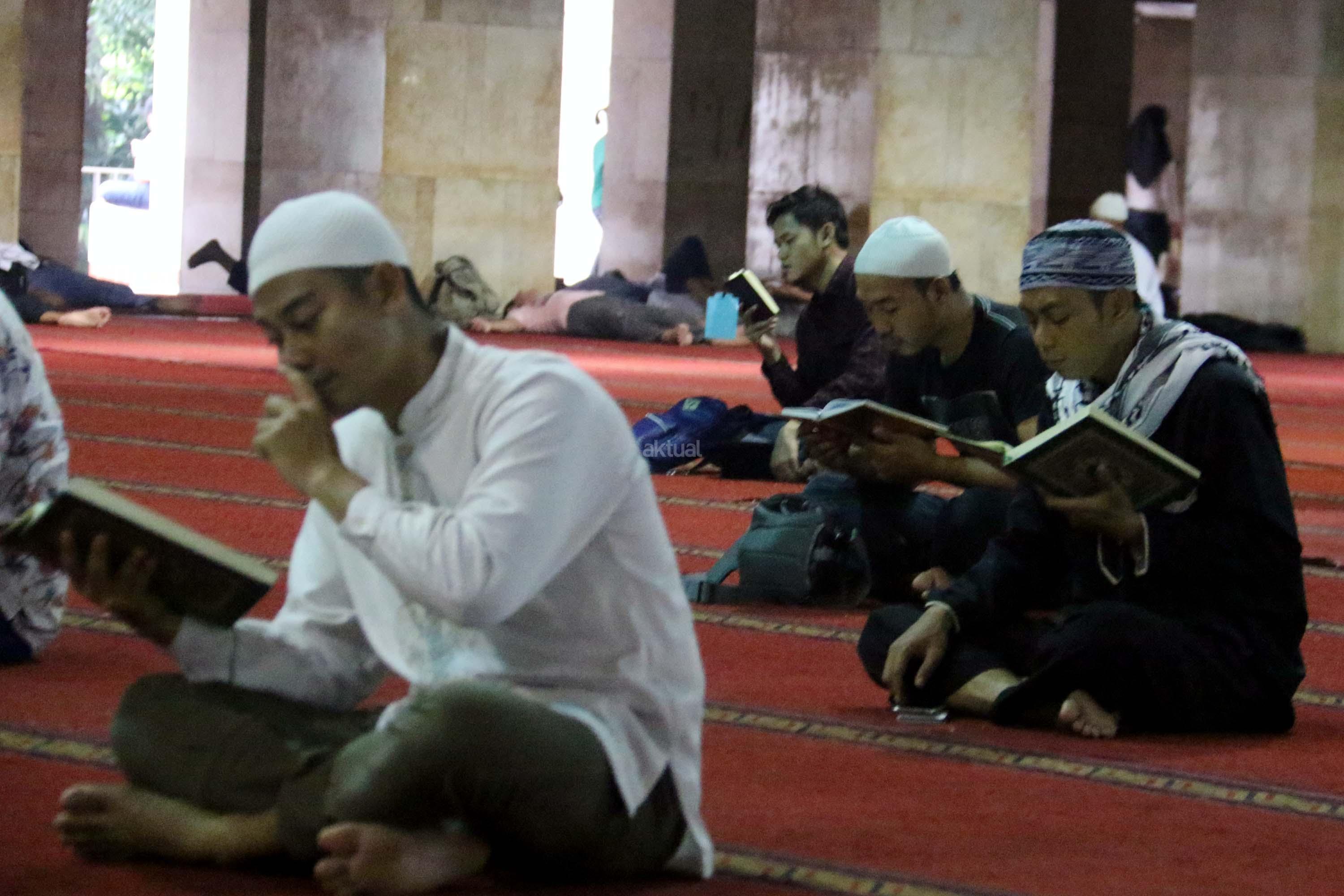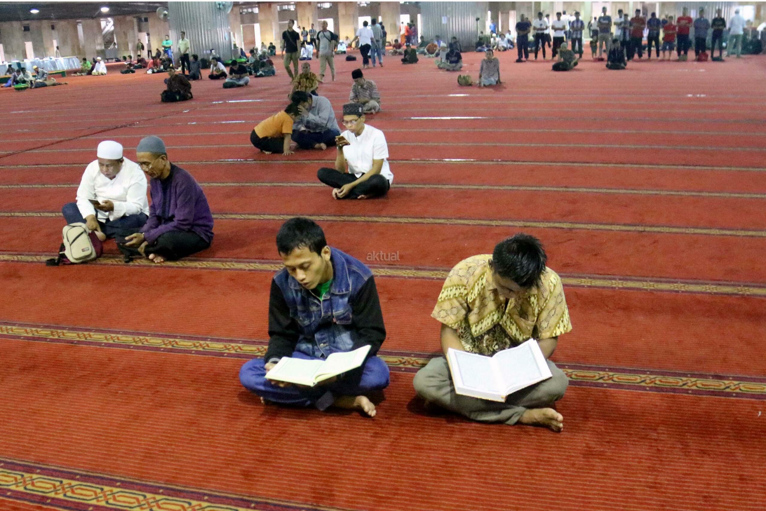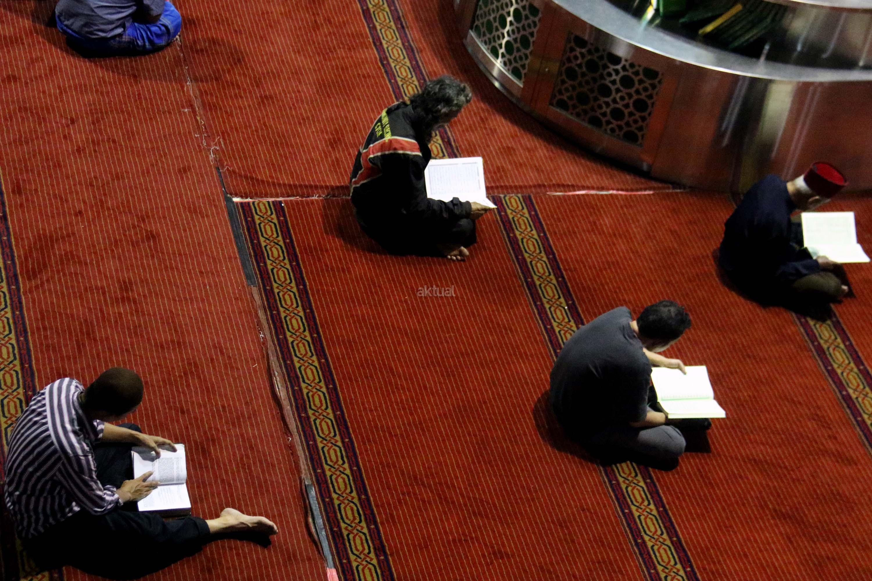 Jamaah masjid membaca Alquran usai shalat Ashar berjamaah di Masjid Istiqlal, Jakarta, Minggu (28/5/2017). Sambil menunggu berbuka puasa, jemaah memilih bertadarus atau membaca kitab suci Alquran. AKTUAL/Munzir