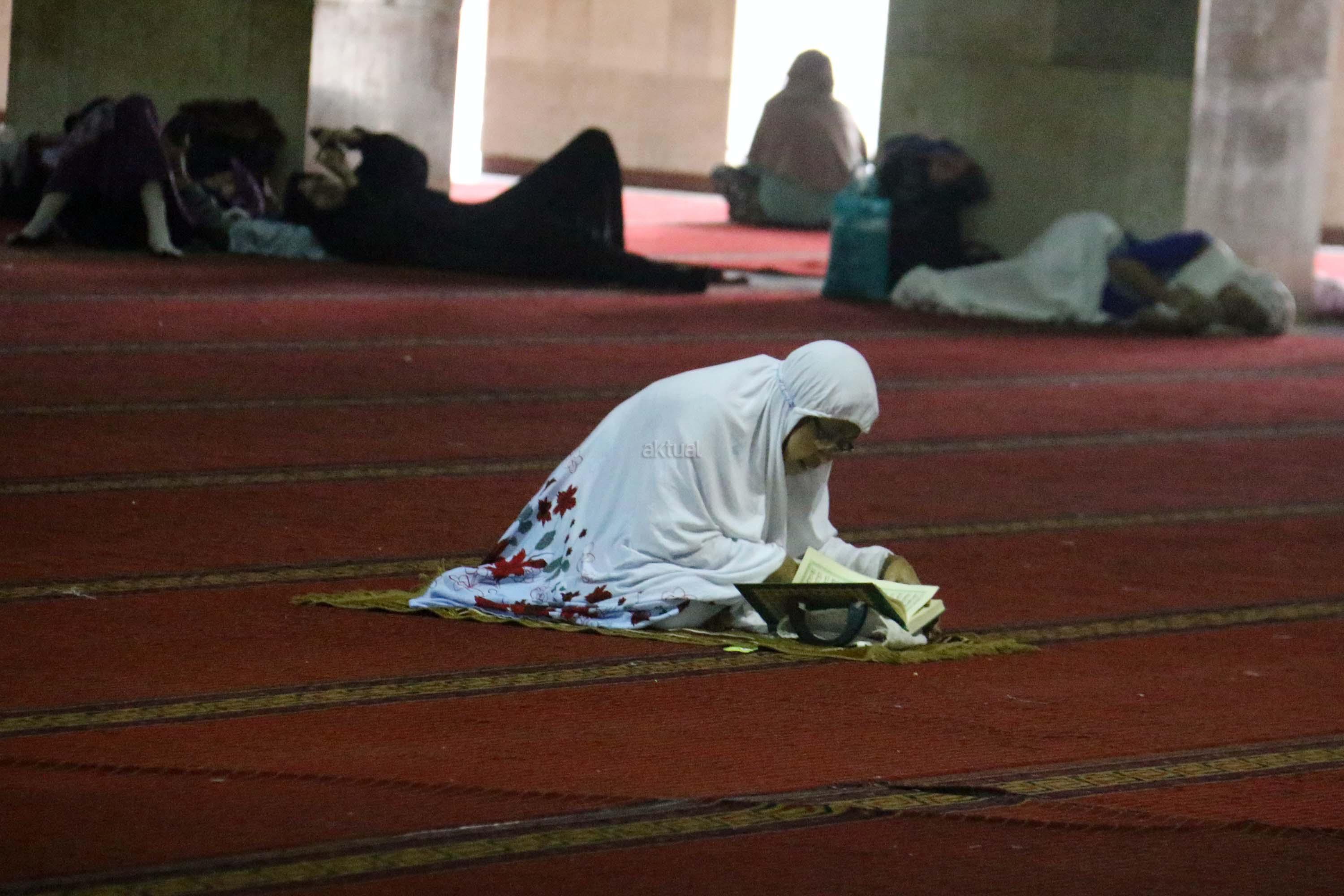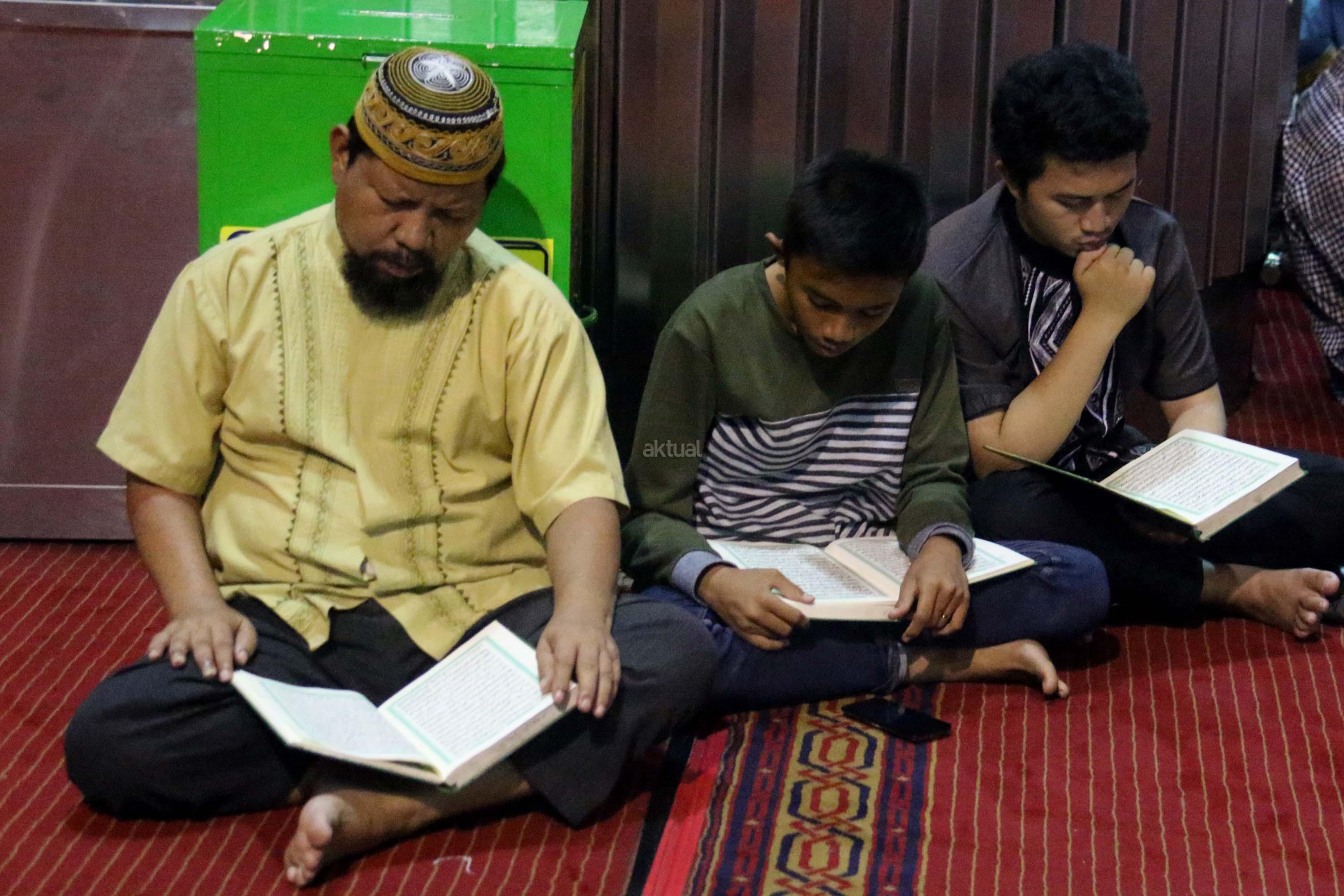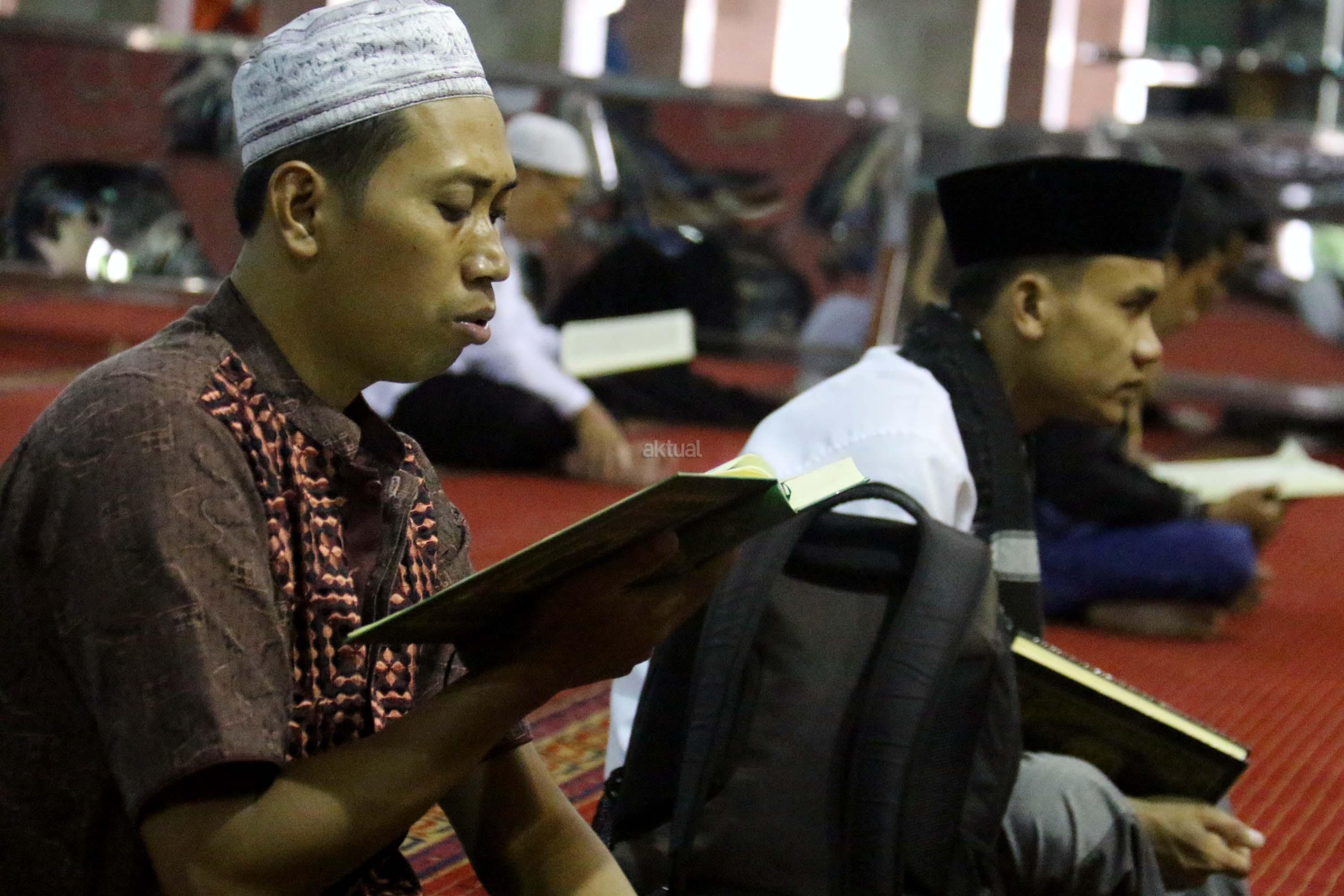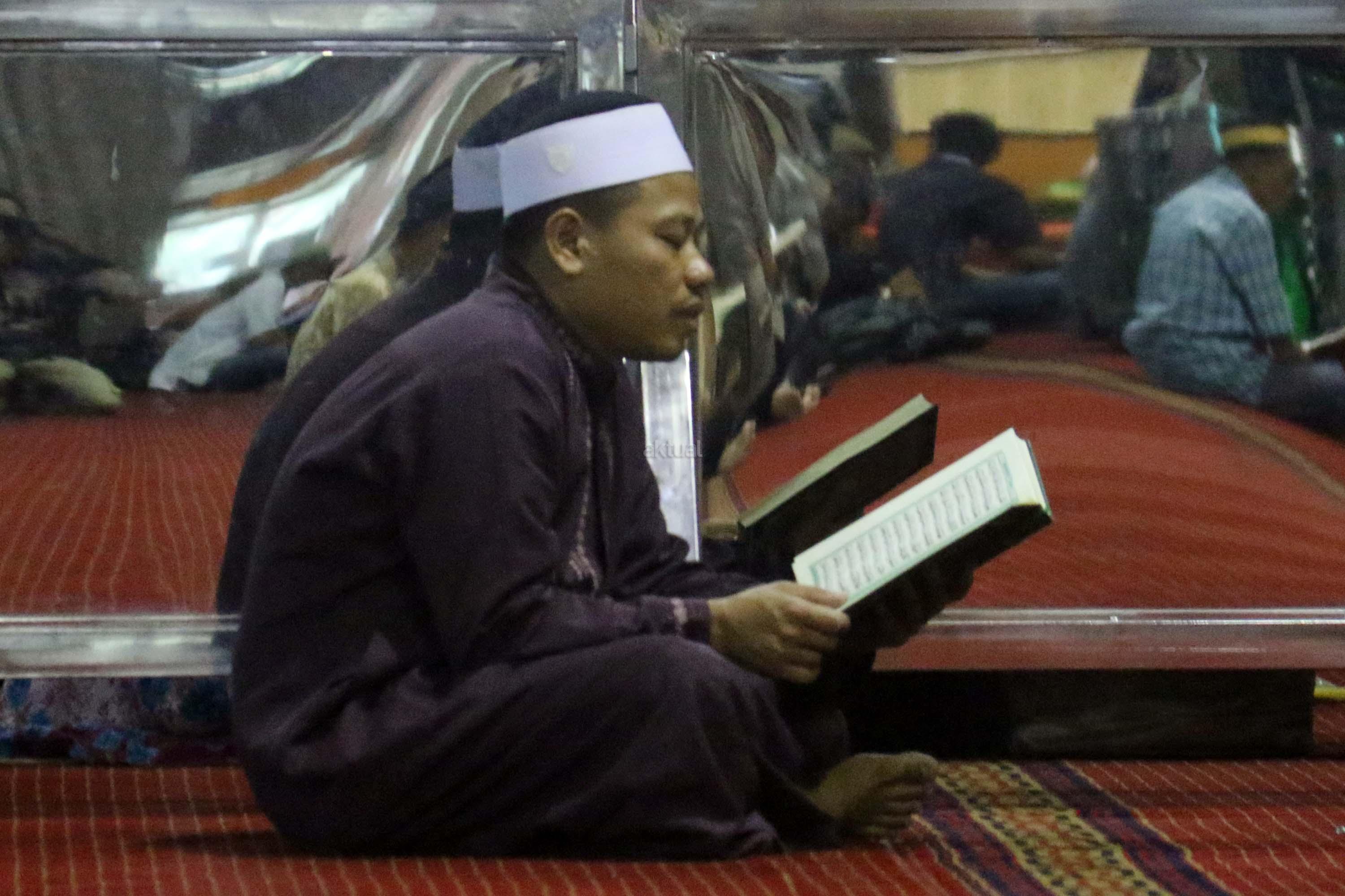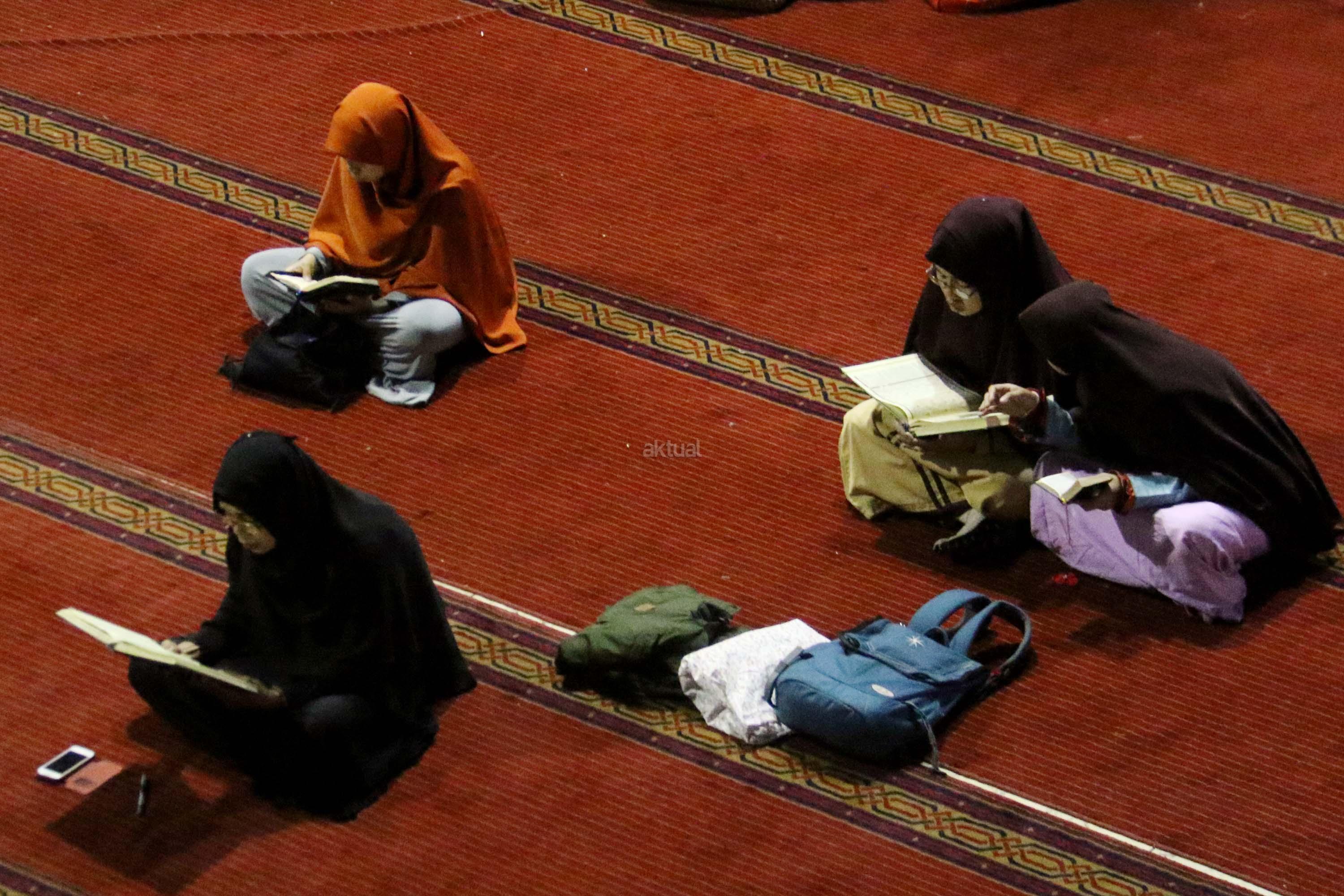 Jamaah masjid membaca Alquran usai shalat Ashar berjamaah di Masjid Istiqlal, Jakarta, Minggu (28/5/2017). Sambil menunggu berbuka puasa, jemaah memilih bertadarus atau membaca kitab suci Alquran. AKTUAL/Munzir