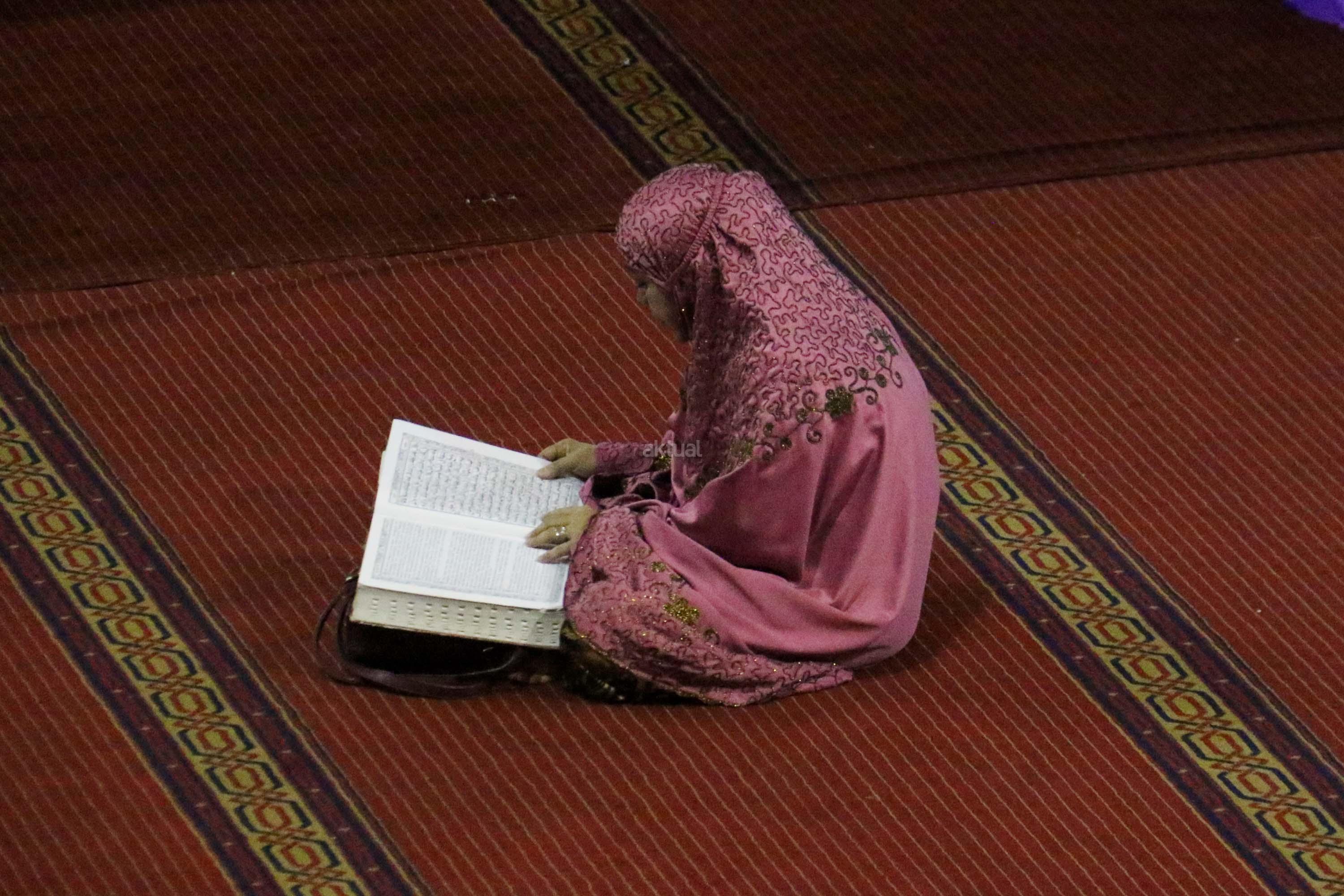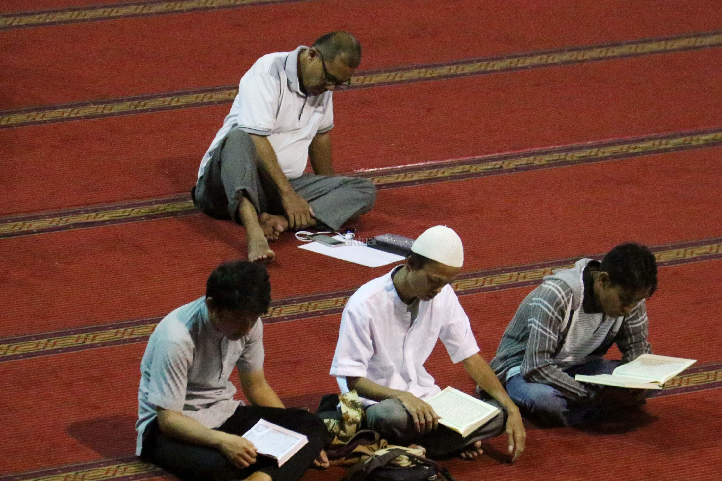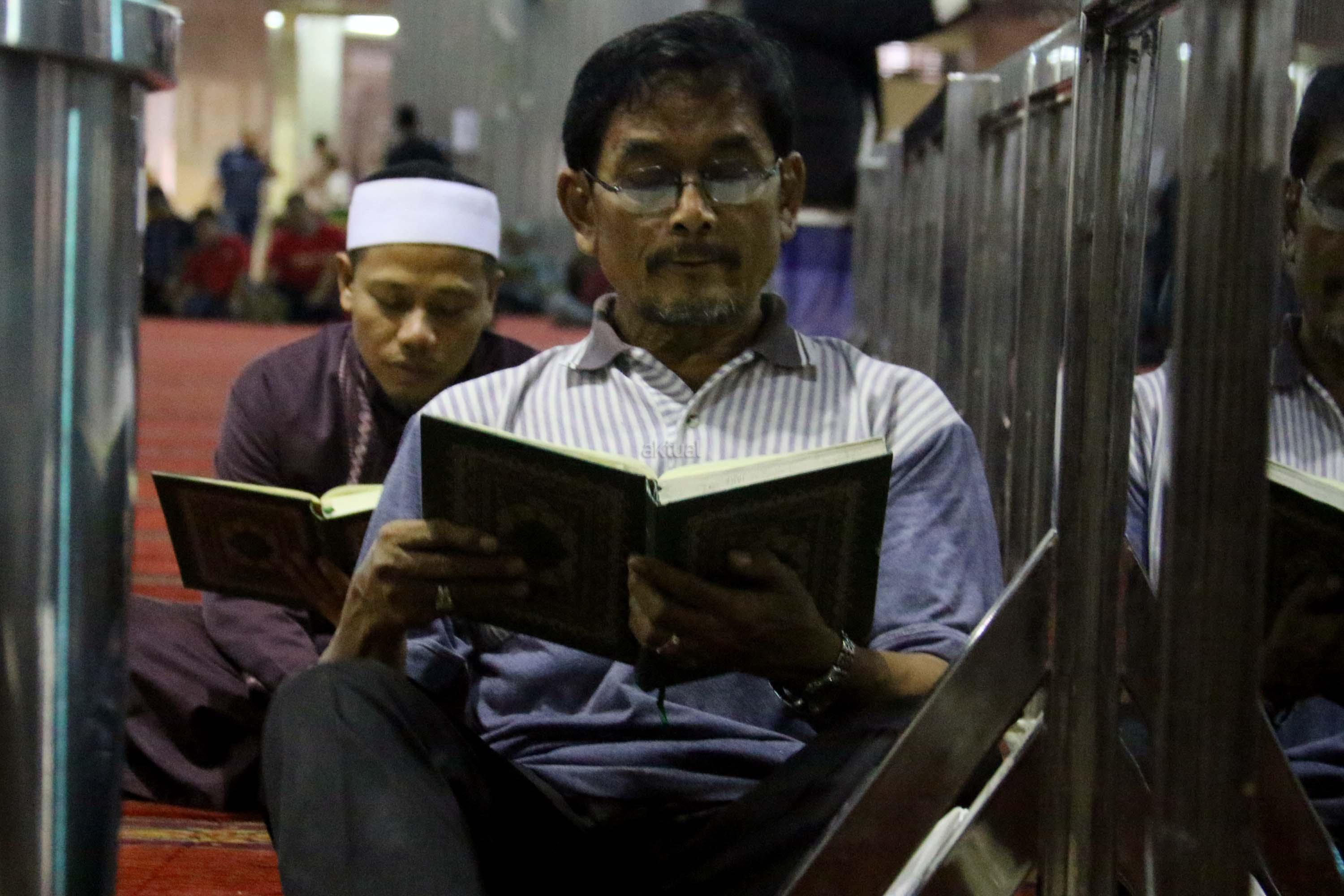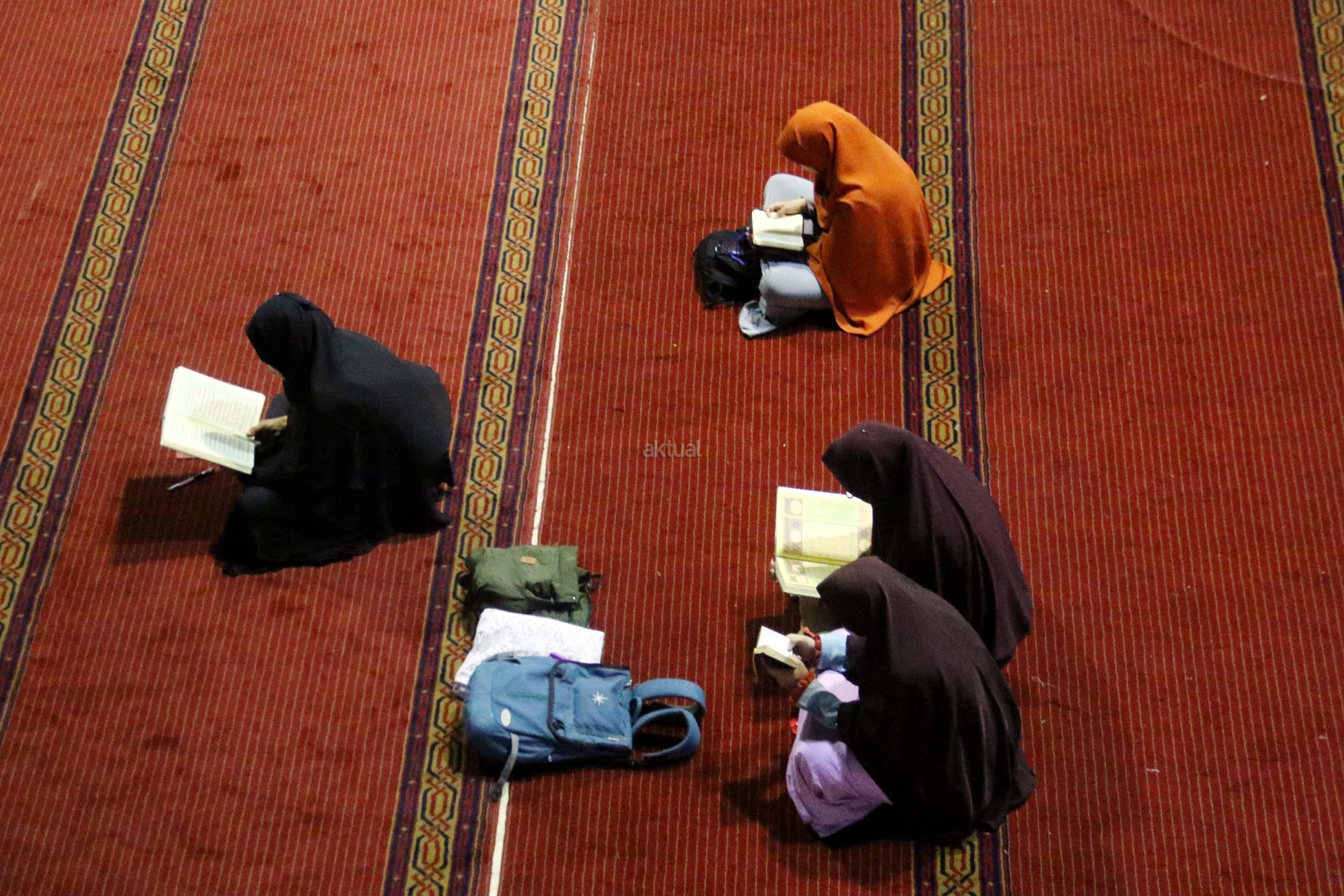 Jamaah masjid membaca Alquran usai shalat Ashar berjamaah di Masjid Istiqlal, Jakarta, Minggu (28/5/2017). Sambil menunggu berbuka puasa, jemaah memilih bertadarus atau membaca kitab suci Alquran. AKTUAL/Munzir