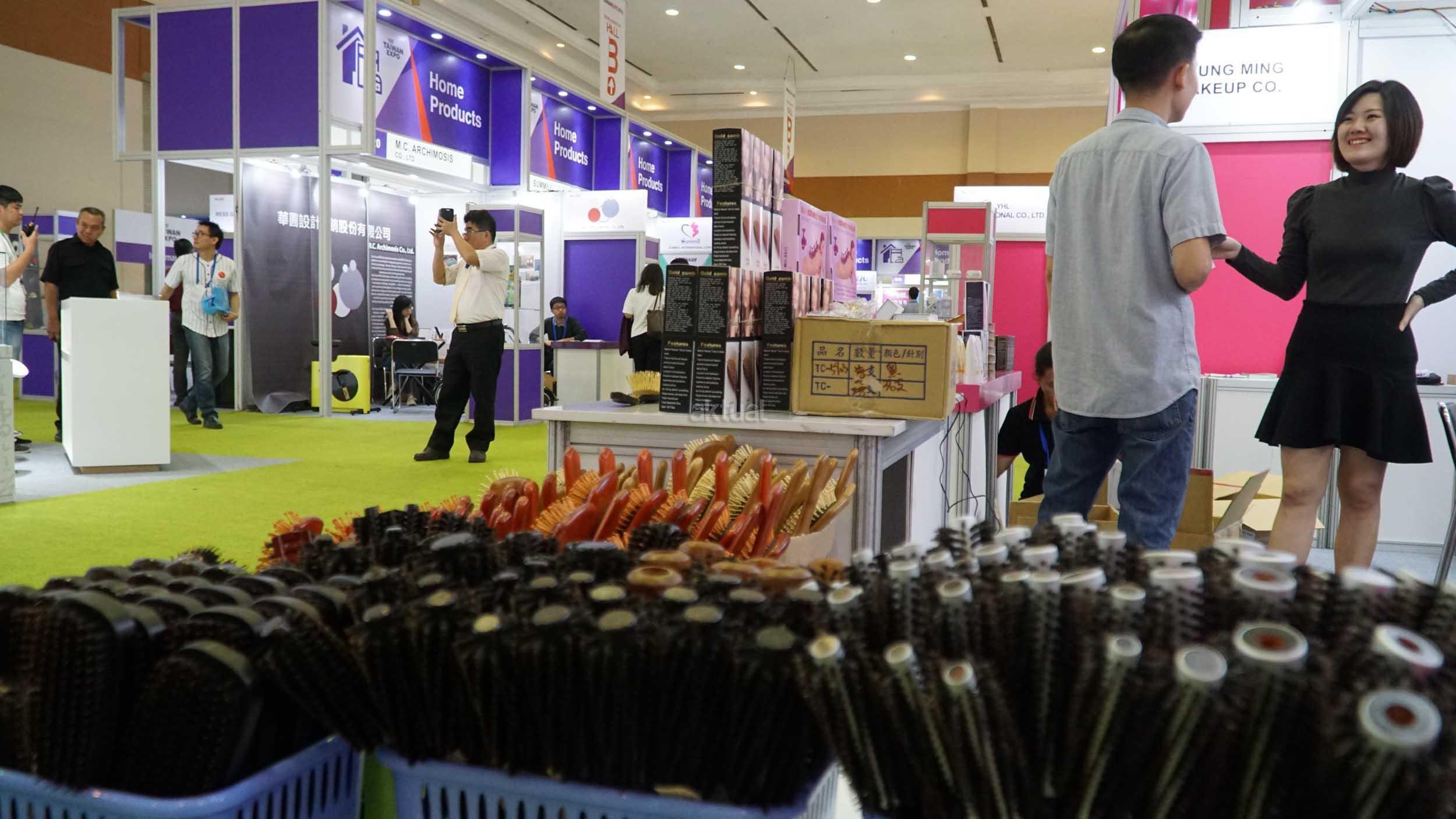 Pengunjung melihat produk yang di pamerkan di salah satu peserta pameran Taiwan Expo 2018 di JCC,Senayan,Jakarta, Kamis (29/3). lebih dari 4.500 produk dan layanan terbaik Taiwan mengikuti pameran yang di jadwalkan hingga 31 Maret 2018 mendatang. Pameran ini tidak hanya menampilkan produk, layanan, dan informasi tetapi juga menciptakan platform untuk Taiwan dan Indonesia dengan kerjasama dan interaksi lebih lanjut. Sebanyak 11 Tematik Pavilions dan 10 area pameran dengan 230 peserta pameran menampilkan enam tema utama, yaitu Aplikasi Cerdas, teknologi Hijau,Layanan Medis, Teknik Pertanian, Hidup sehat dan Pariwisata & Budaya mengikuti kegiatan pameran yang juga diisi pertunjukan paling unik budaya Taiwan Pili Puppet Theater. AKTUAL/Eko S Hilman