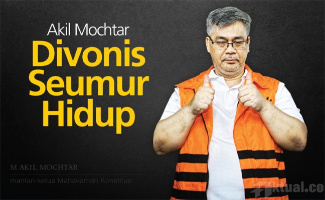 Akil Muhtar divonis pidana seumur hidup oleh Majelis Hakim Pengadilan Tipikor Jakarta dalam kasus suap sengketa pilkada di MK dan dugaan TPPU.